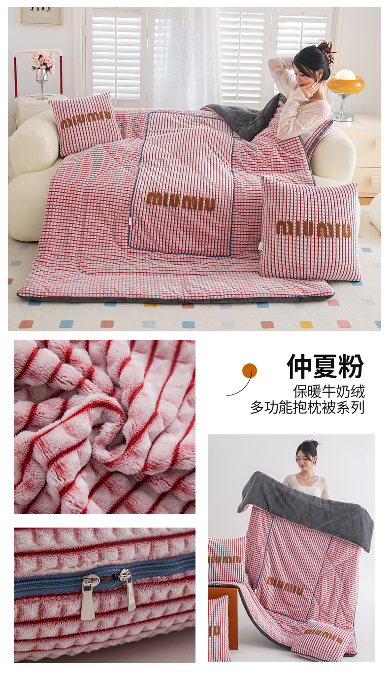 商品名称:吉利家居 2024新款MIu系列牛奶绒抱枕被(小号控价58;大号控价89) MIu-仲夏粉