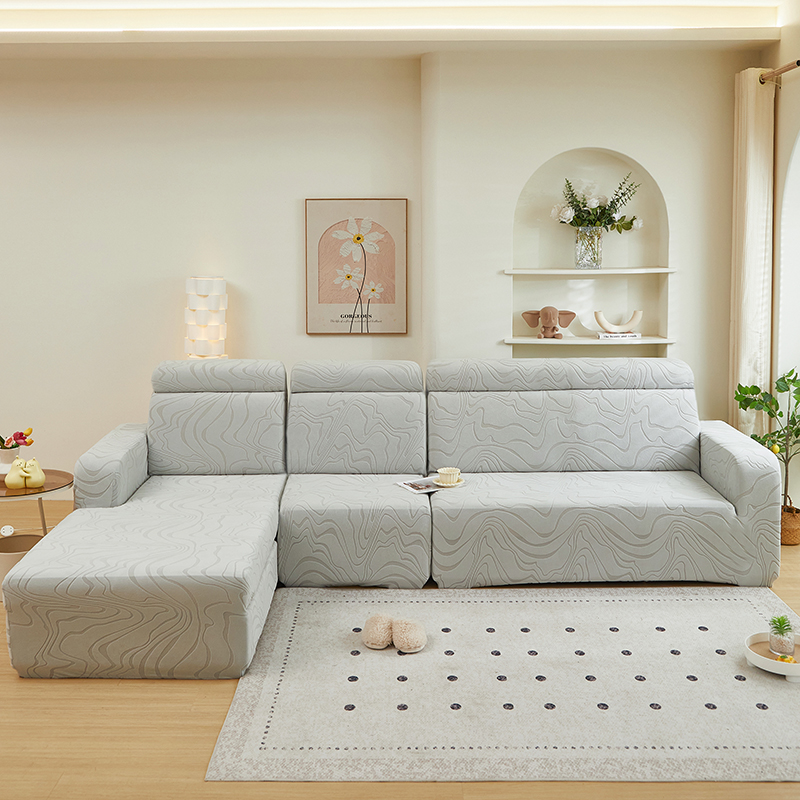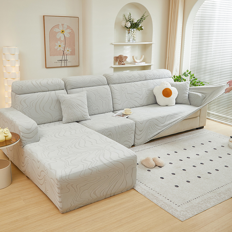 丝绮鹿 2024新款曲意松紧款沙发套(贵妃图) 浅灰