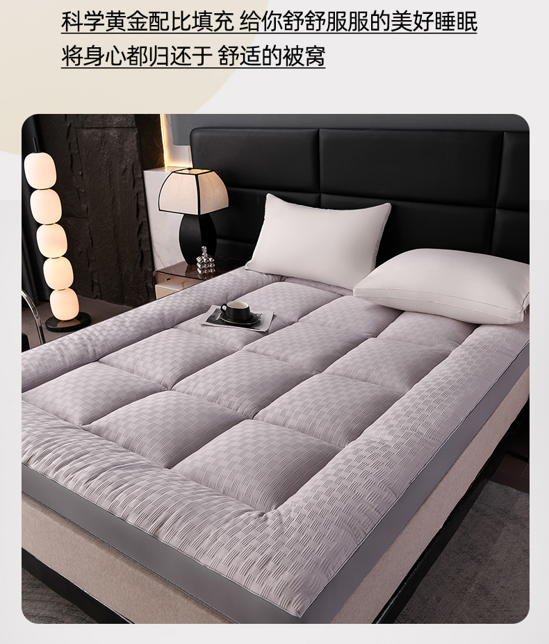 (总)招财狼 2025新款亲肤磨毛床垫,淡雅灰,珍珠白