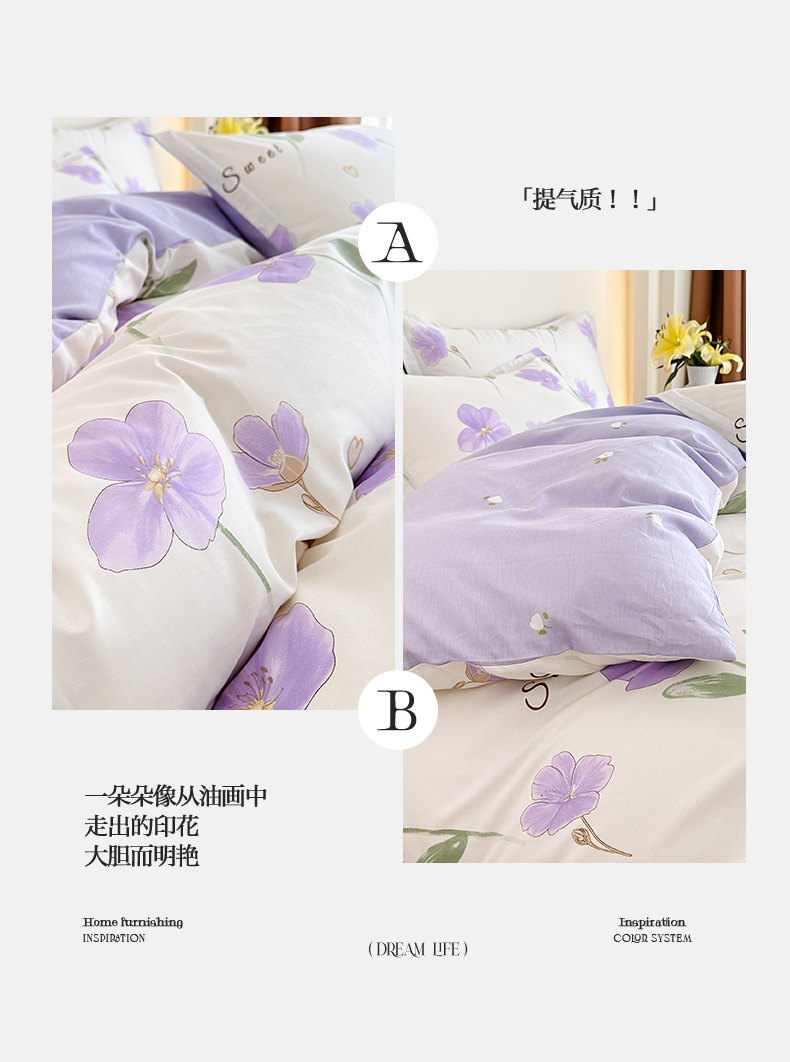 当前位置: 91家纺网 > 商品网购 > 床品套件 > 四件套 > 全棉普通四件套 > 天之爱 2025新款全棉印花四件套 甜美花韵