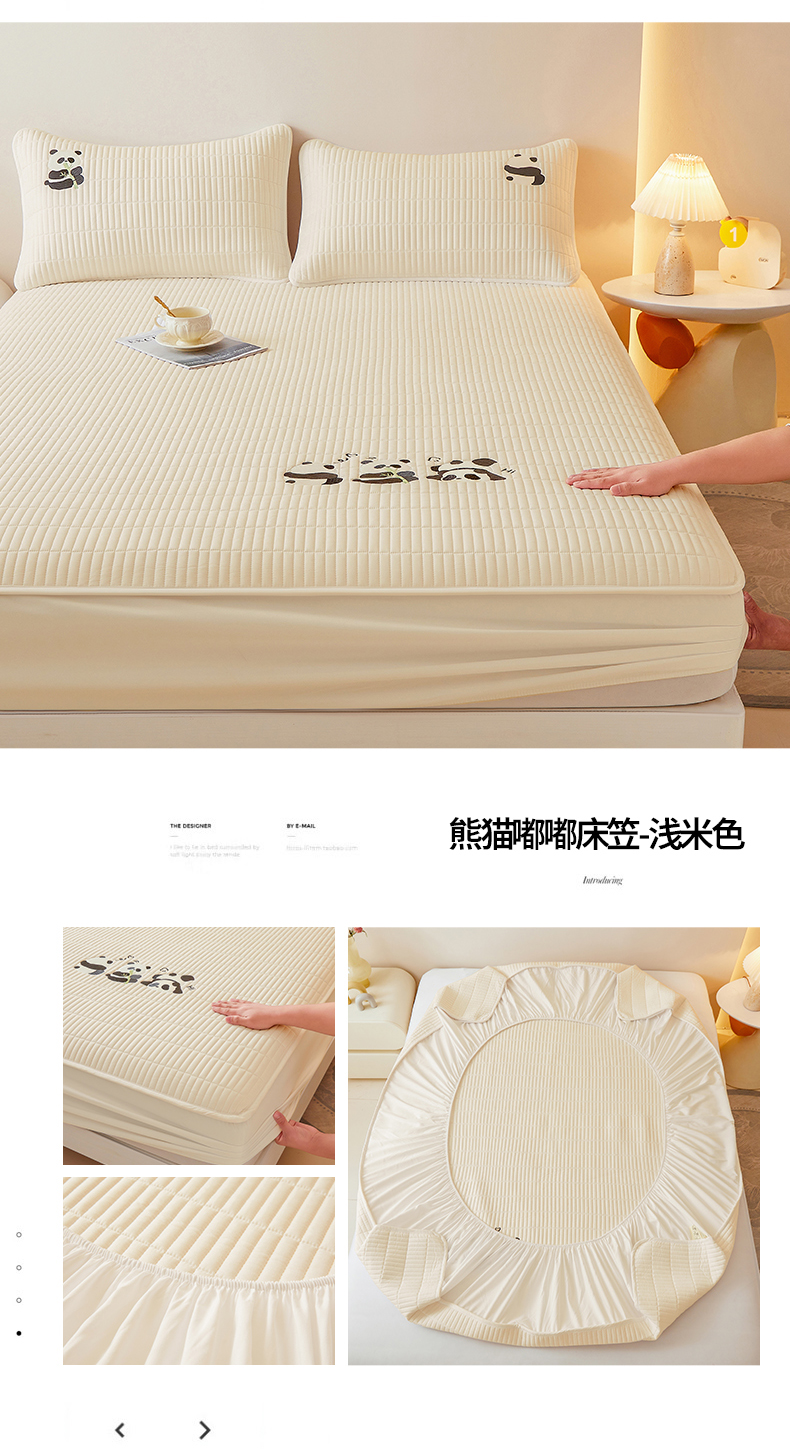 雅萱家纺 2025新款A类亲肤绣花大豆床笠-熊猫嘟嘟 熊猫嘟嘟床笠-浅米色