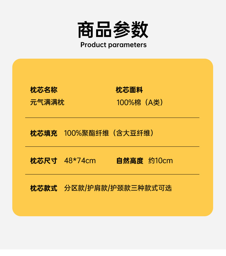 当前位置: 91家纺网 > 商品网购 > 枕头/枕芯/保健枕/颈椎枕 > 普通枕芯 > 境月枕芯坊 2025新款元气满满大豆纤维枕枕头枕芯(专利版仿版必查) 元气满满大豆纤维枕-呵护款48*74cm/只