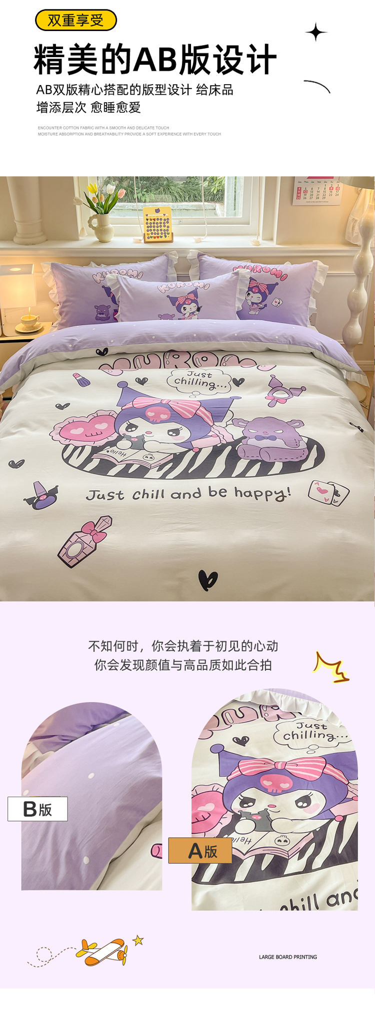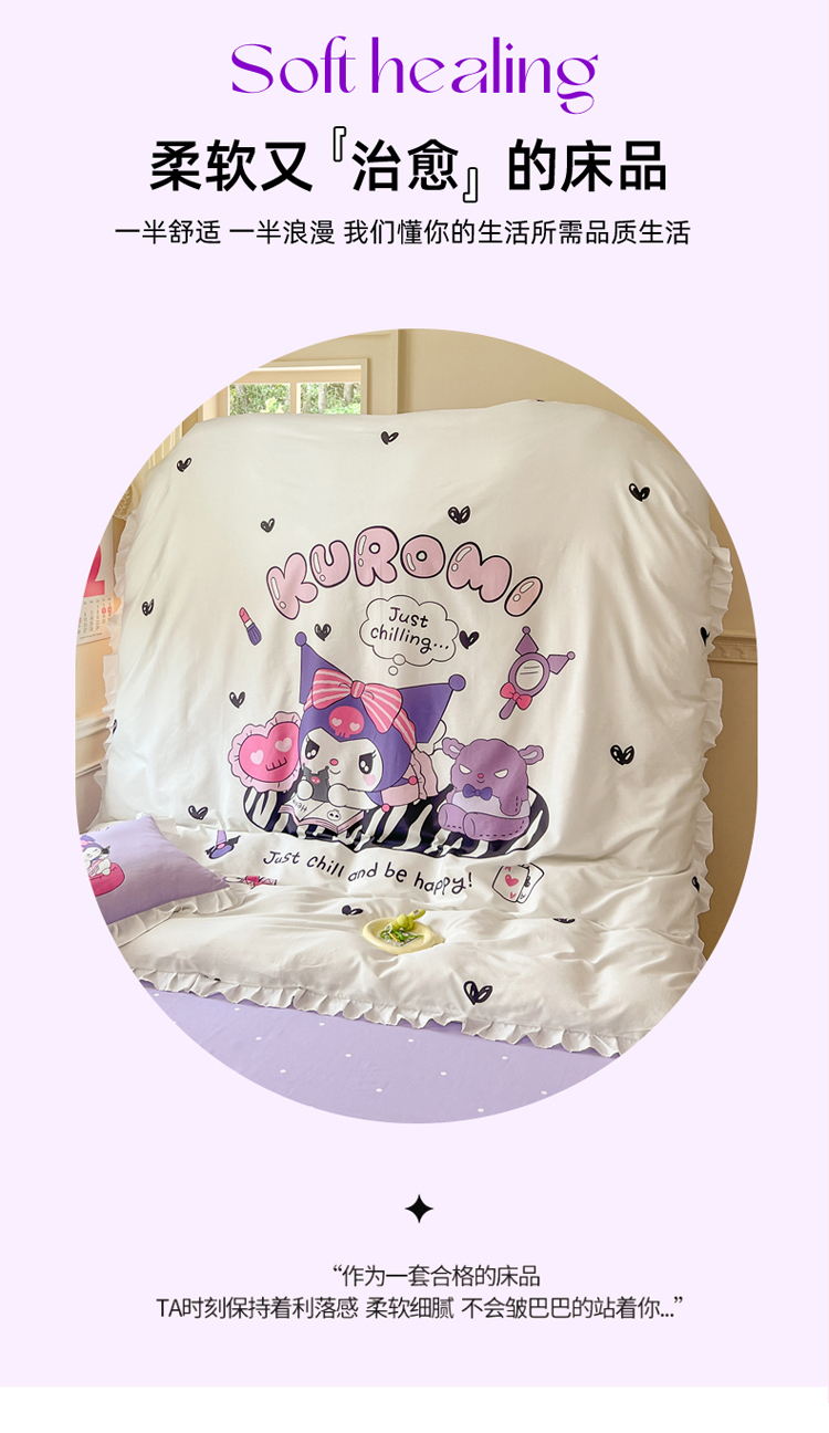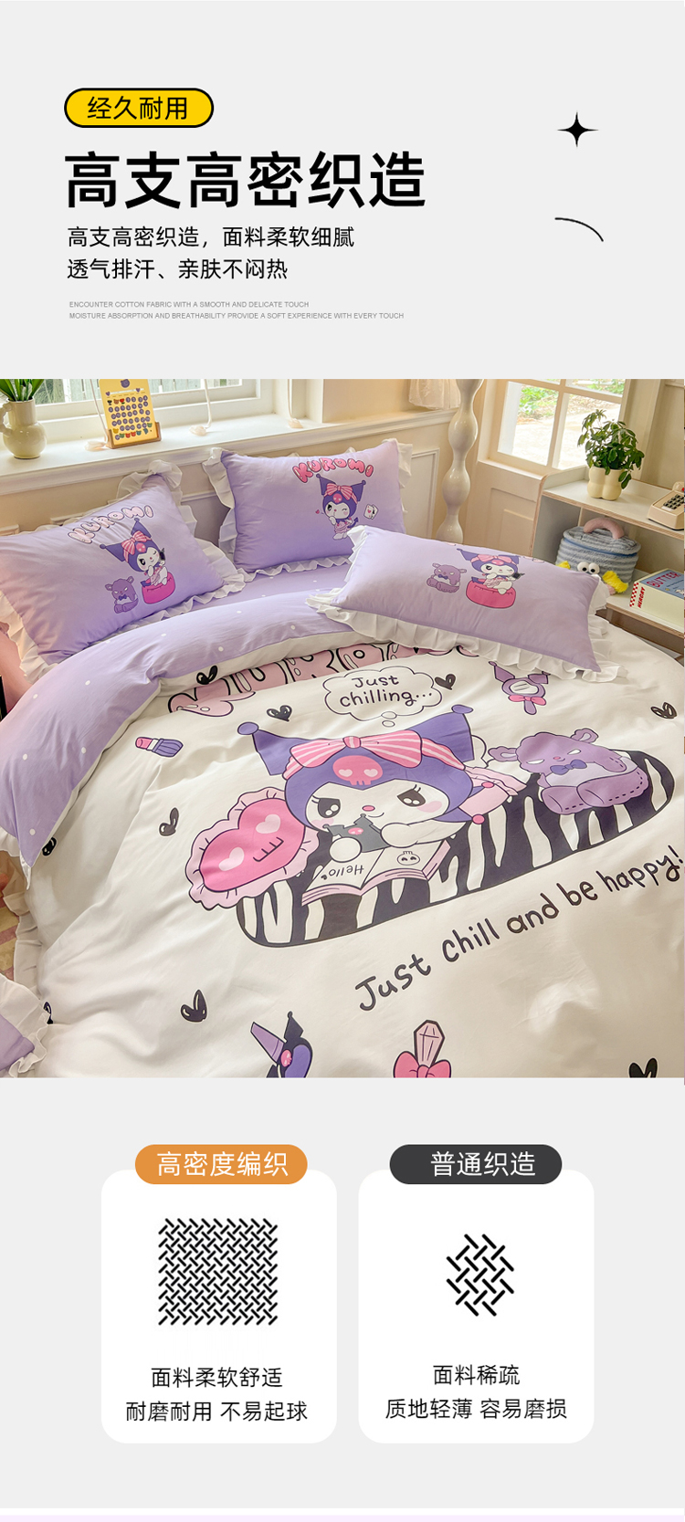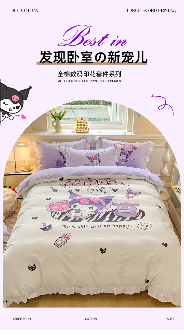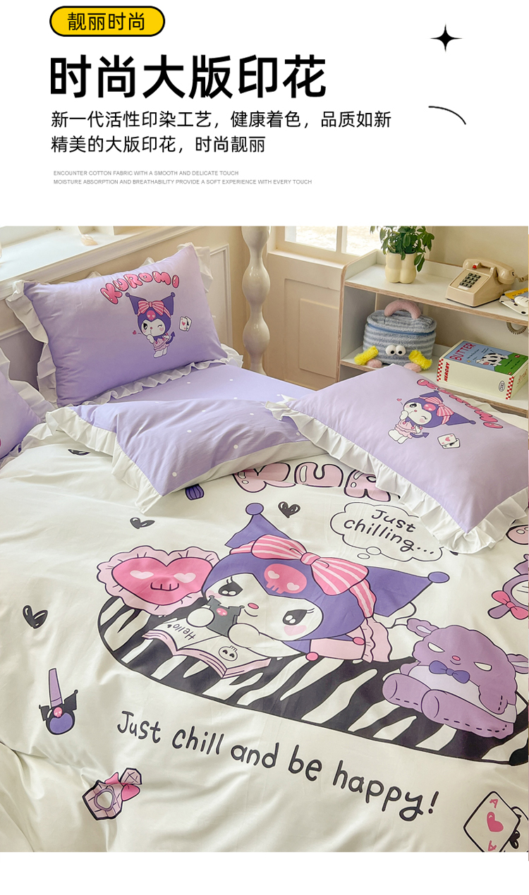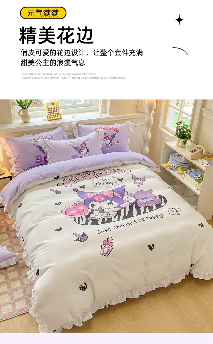 当前位置: 91家纺网 > 商品网购 > 床品套件 > 四件套 > 全棉普通四件套 > 玉元坊 2025年新款三丽鸥系列数码印花纯棉全棉床裙三件套四件套-花边款式 扑克