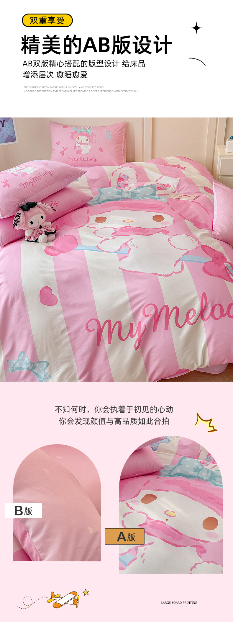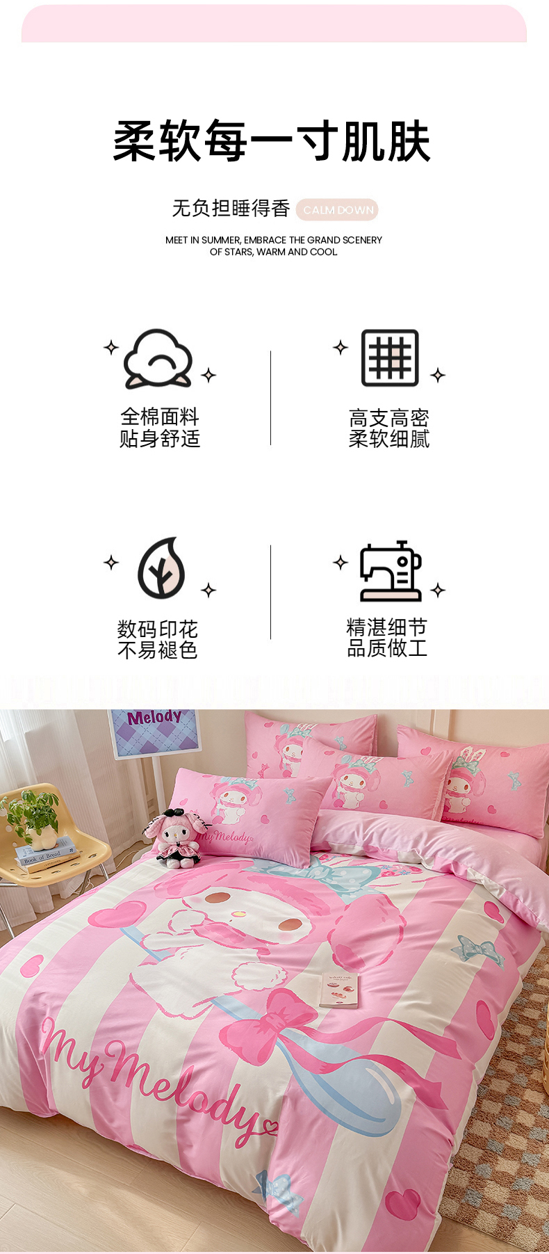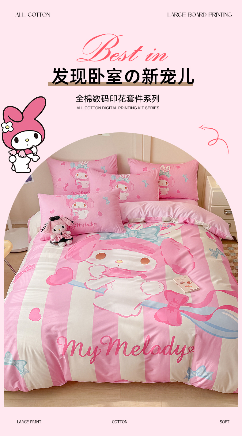 当前位置: 91家纺网 > 商品网购 > 床品套件 > 四件套 > 全棉普通四件套 > 玉元坊 2025年新款三丽鸥系列数码印花纯棉全棉床裙三件套四件套-简约基础款 大版简约-甜心美乐蒂