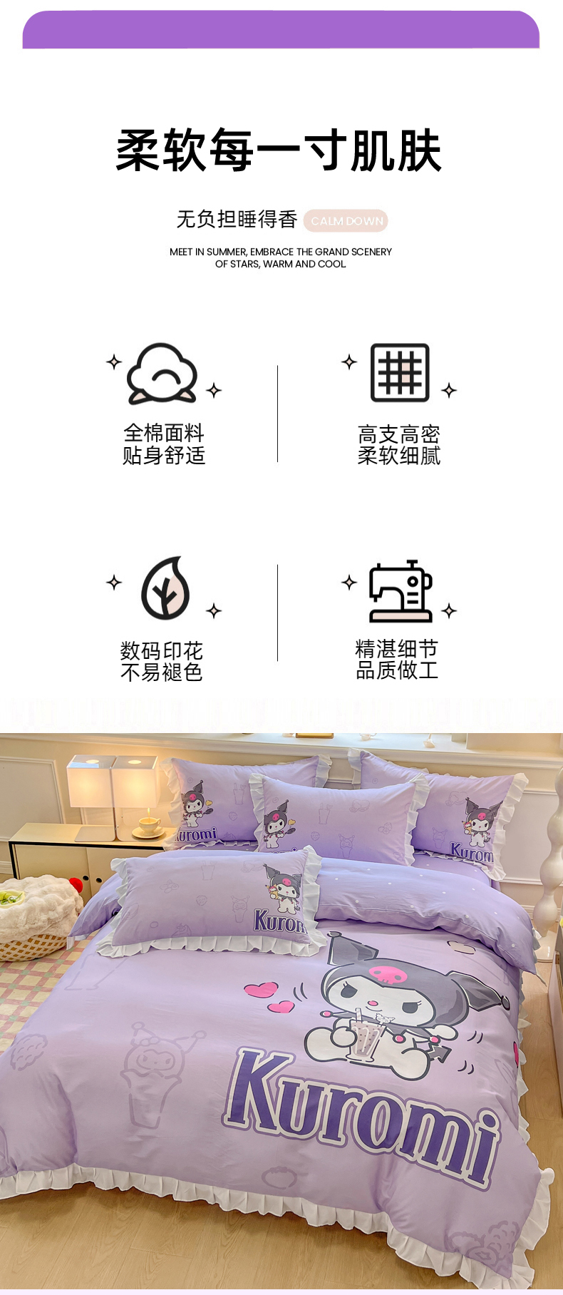 当前位置: 91家纺网 > 商品网购 > 床品套件 > 四件套 > 全棉普通四件套 > 玉元坊 2025年新款三丽鸥系列数码印花纯棉全棉床裙三件套四件套-简约基础款 饮料