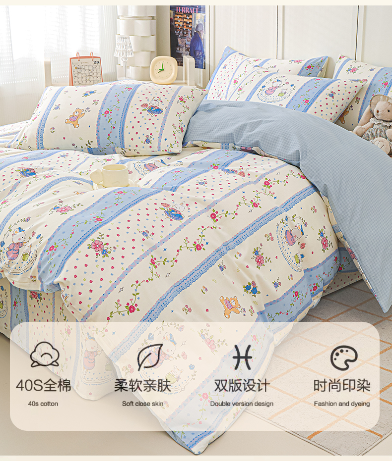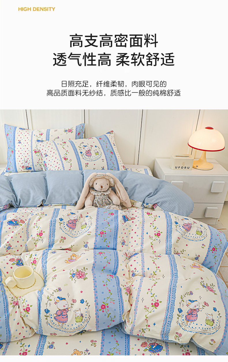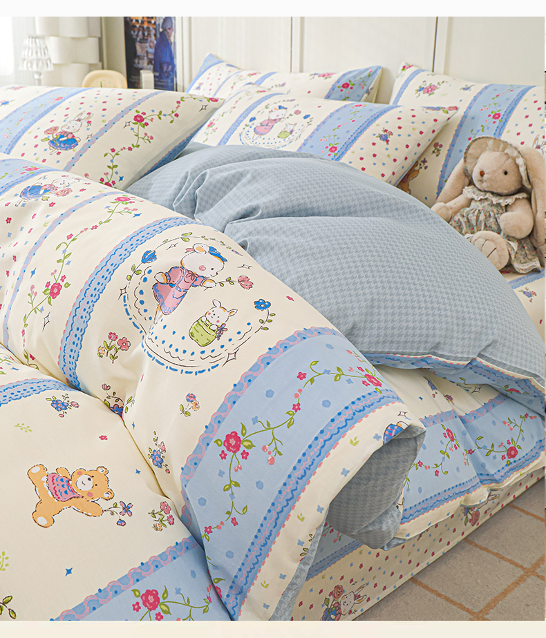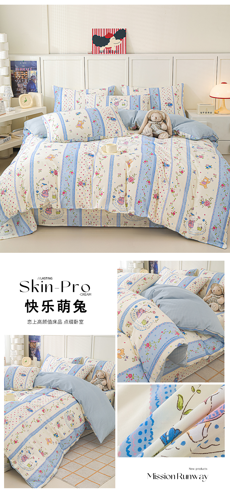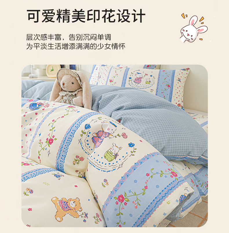当前位置: 91家纺网 > 商品网购 > 床品套件 > 四件套 > 全棉普通四件套 > 金鑫汇家纺 2025新款全棉印花四件套 快乐萌兔