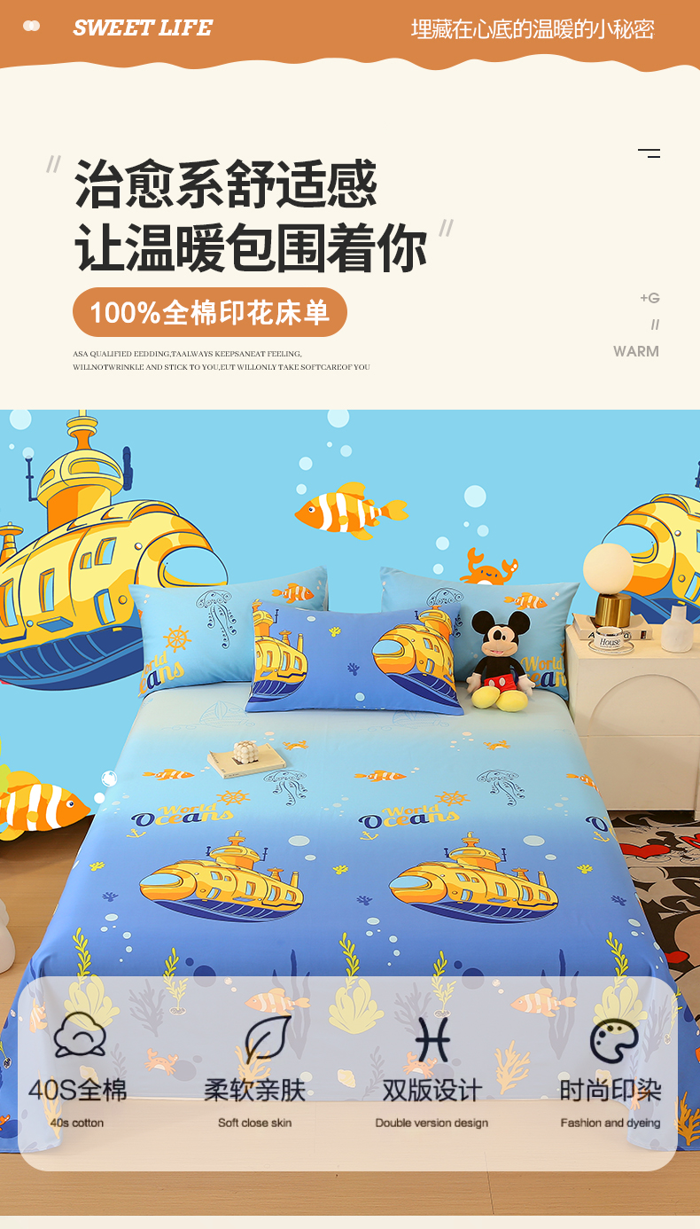 商品名称:金鑫汇家纺 2025新款超好卖全棉单床单 海底探秘