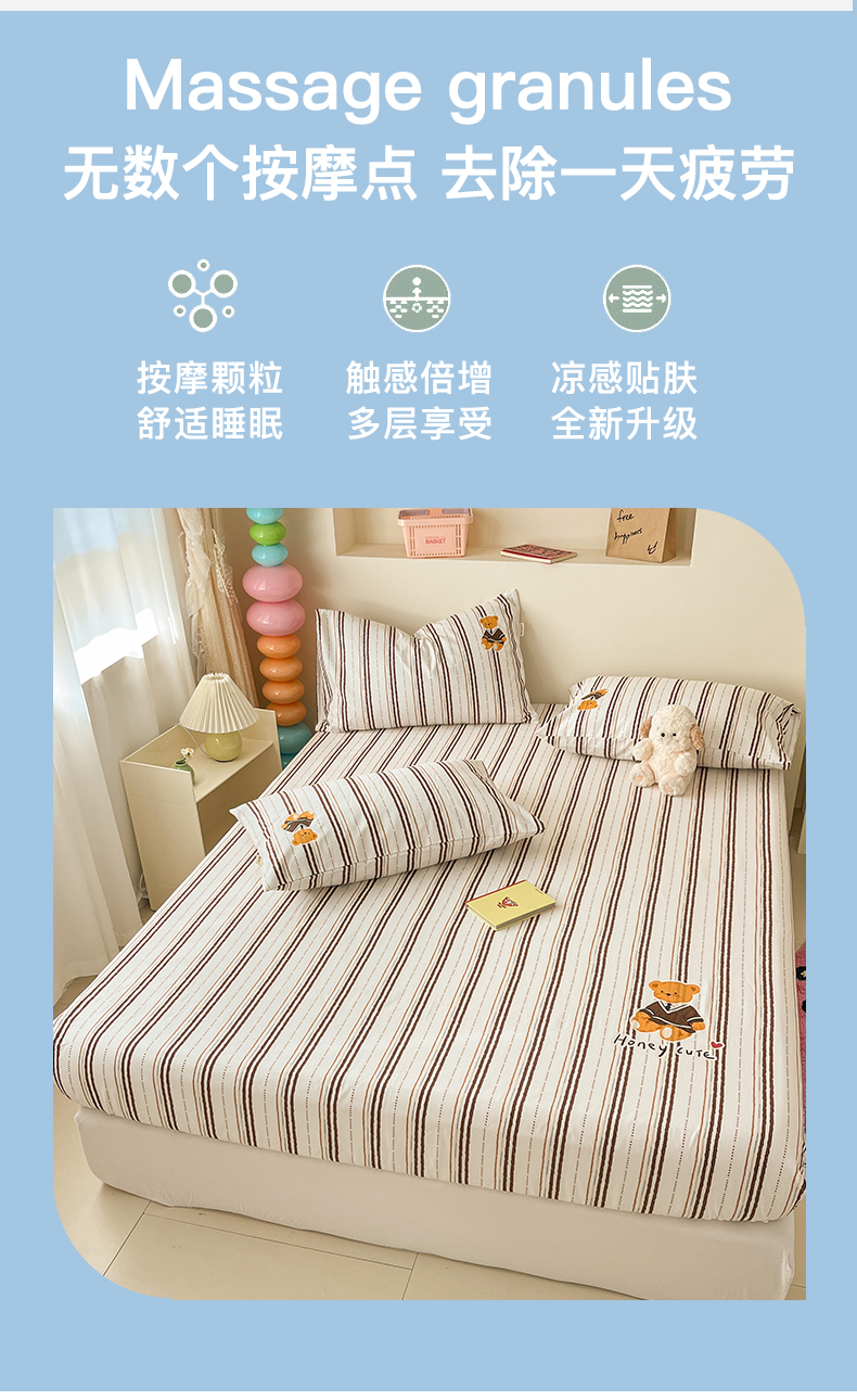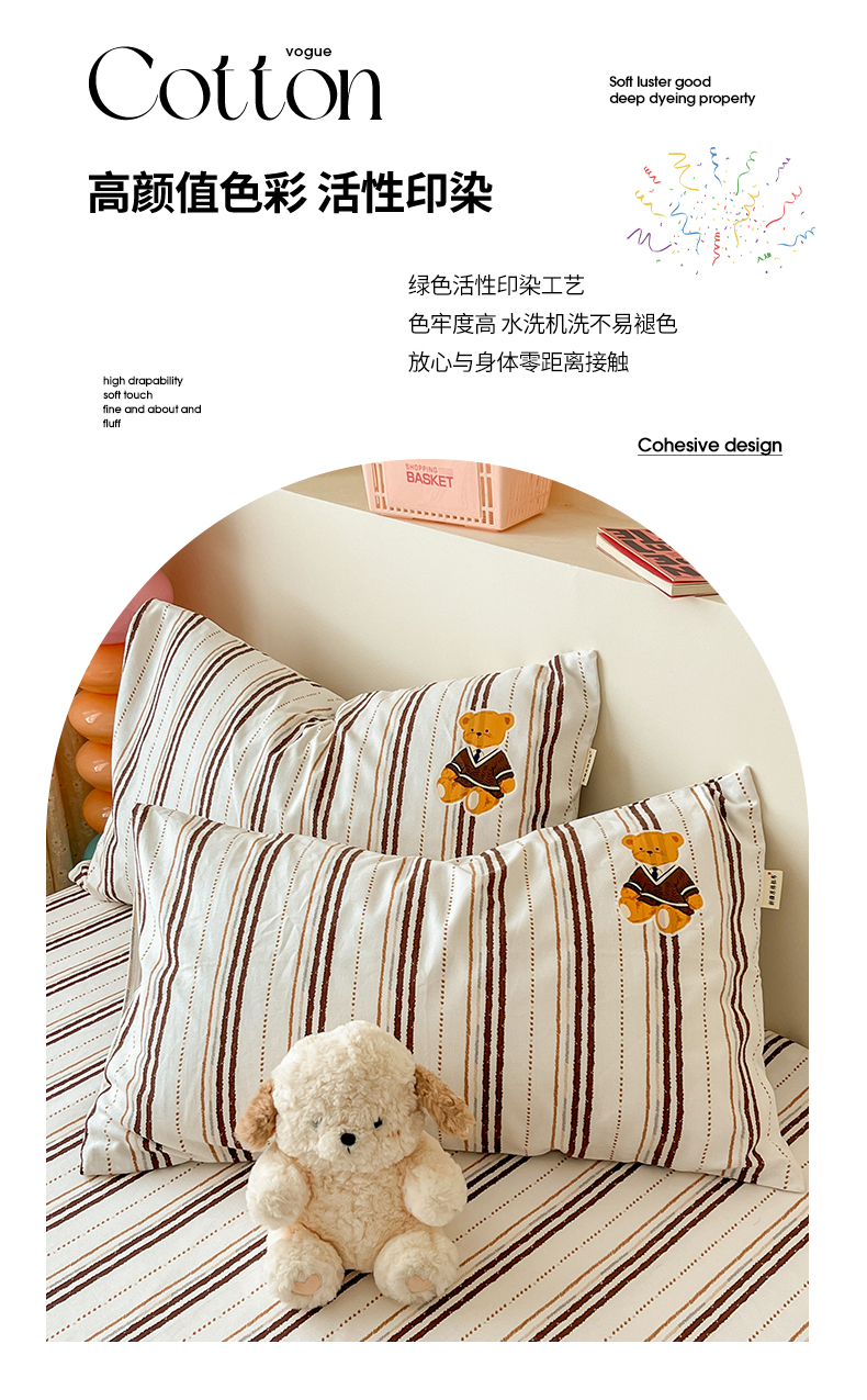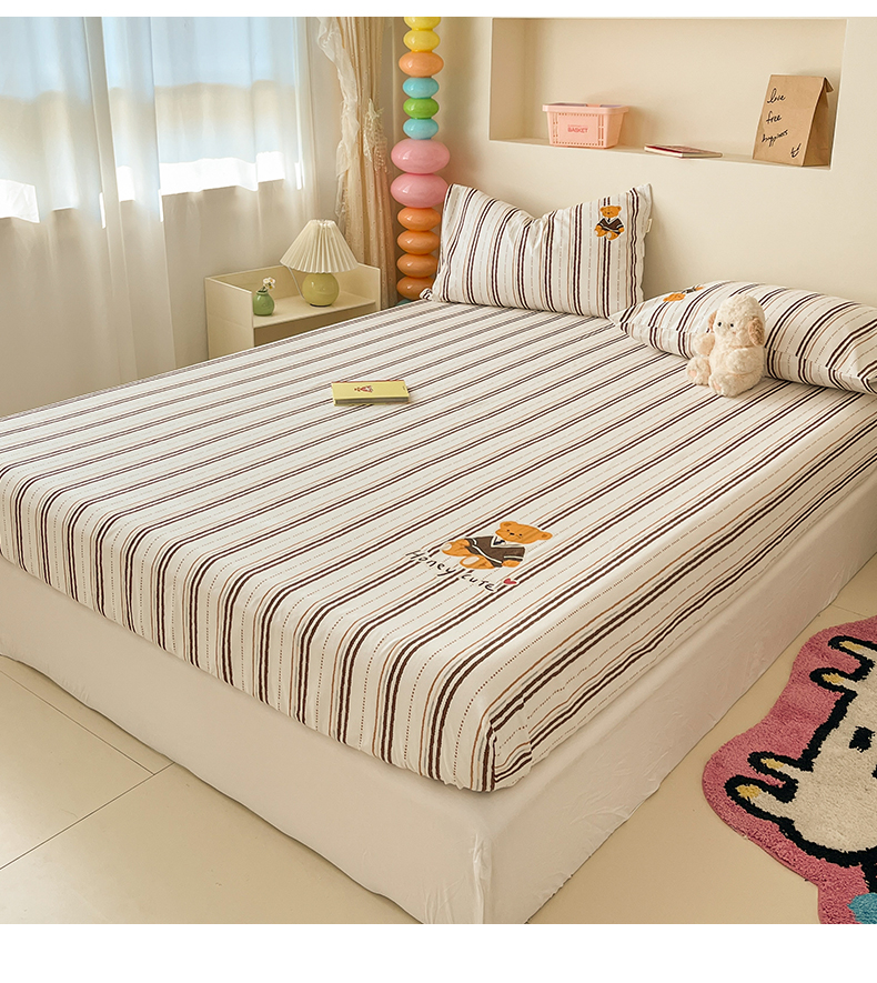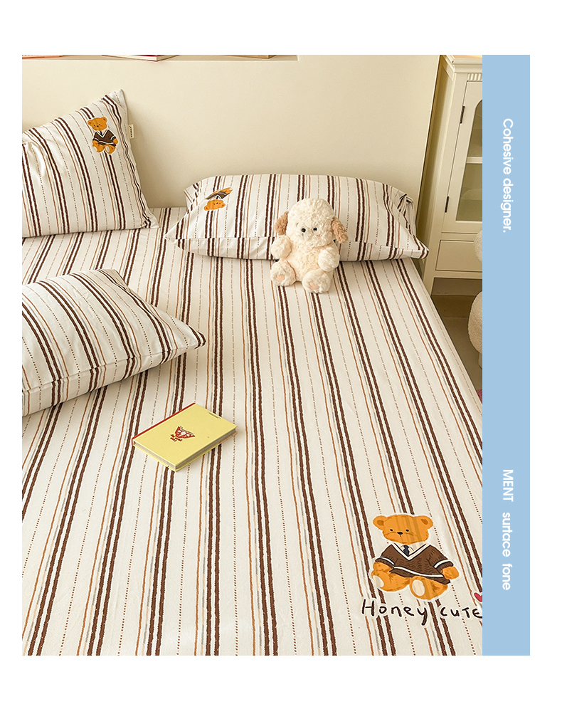 卧趣家纺 2025新款全棉烫画老粗布单品系列-床笠 甜心熊-棕