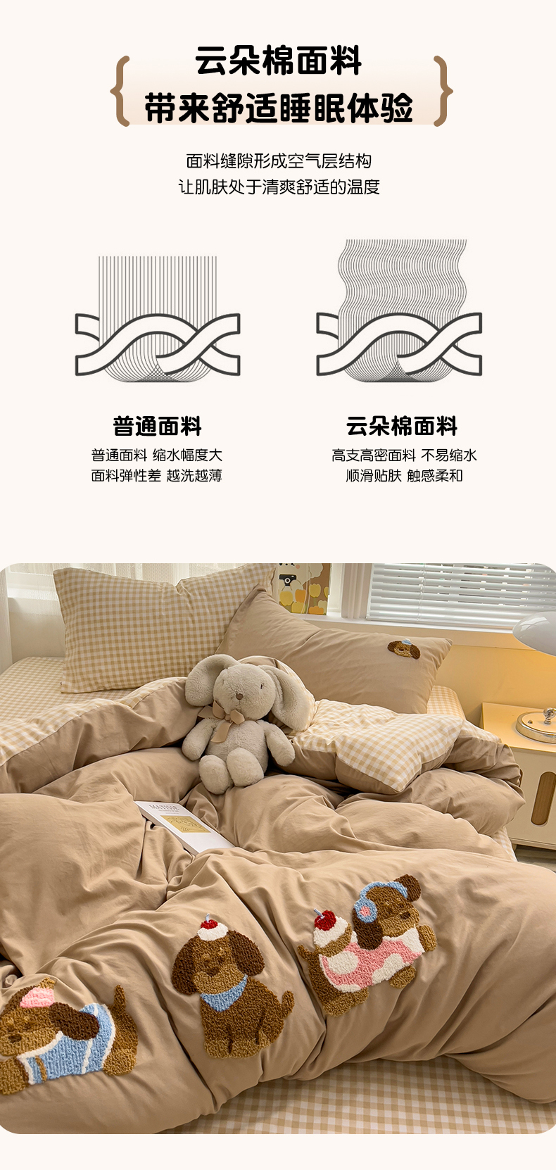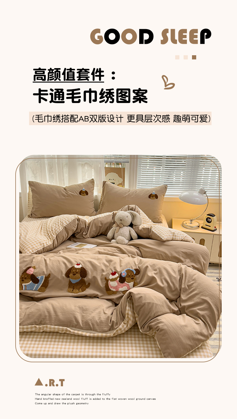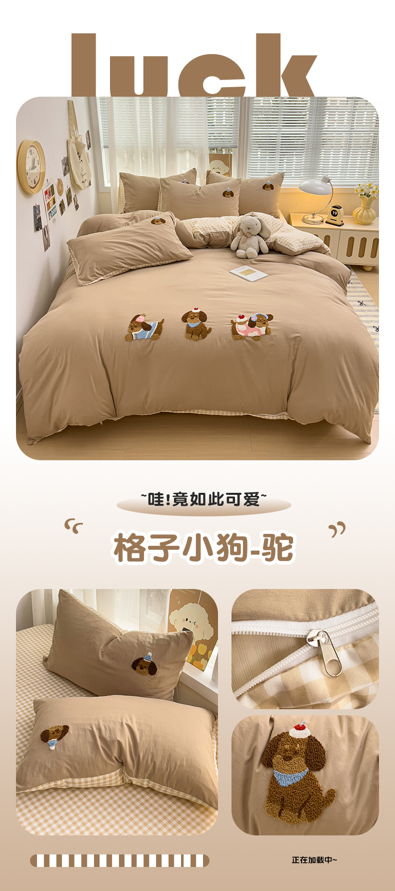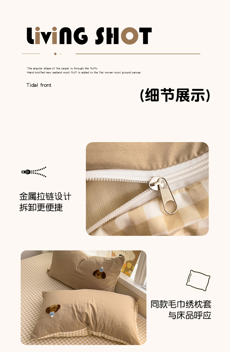 当前位置: 91家纺网 > 商品网购 > 床品套件 > 四件套 > 其它四件套 > 梦之岛 2025云朵棉ins腊肠狗可爱毛巾绣四件套 格子小狗-驼