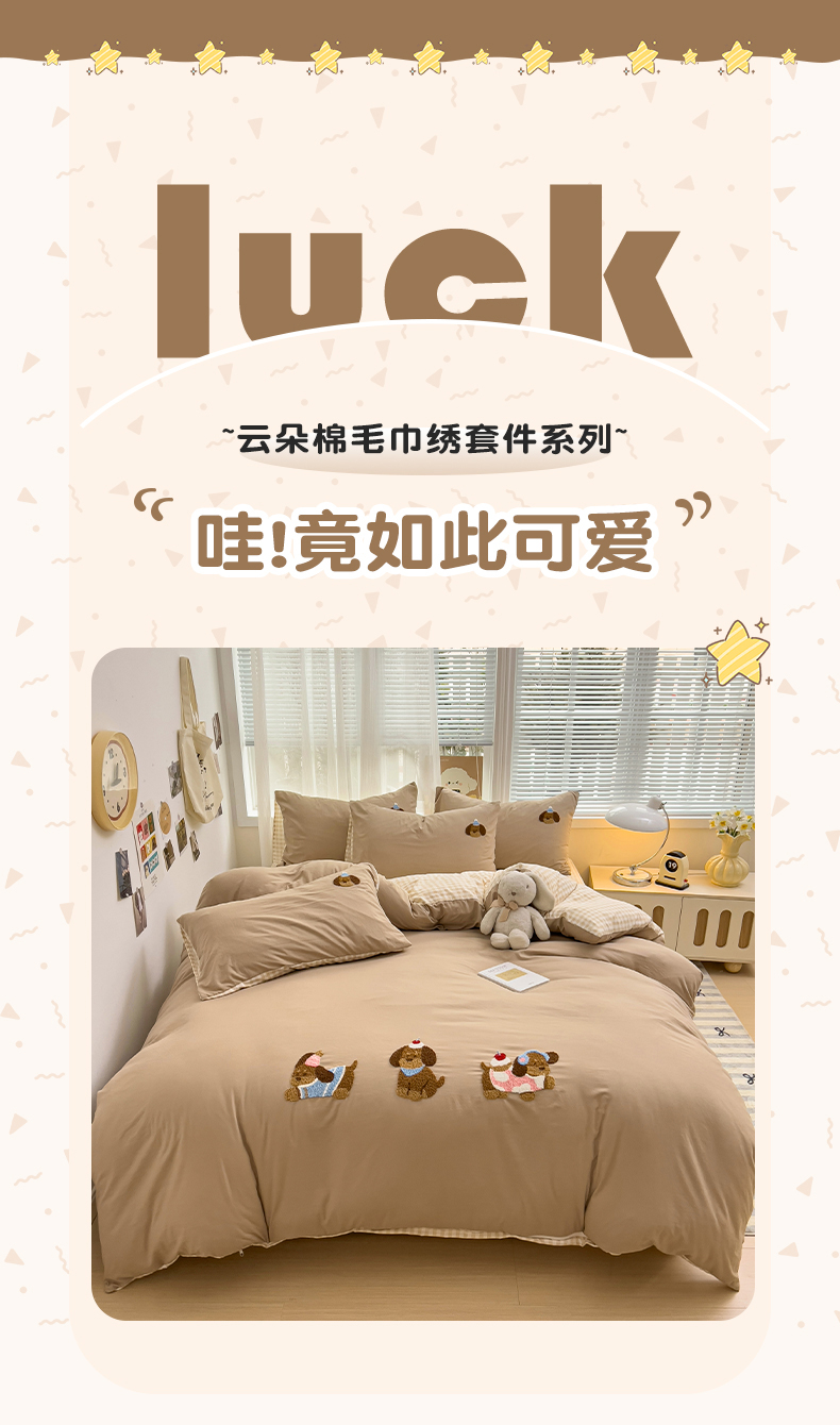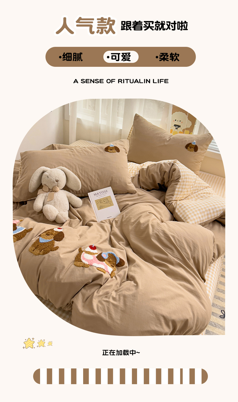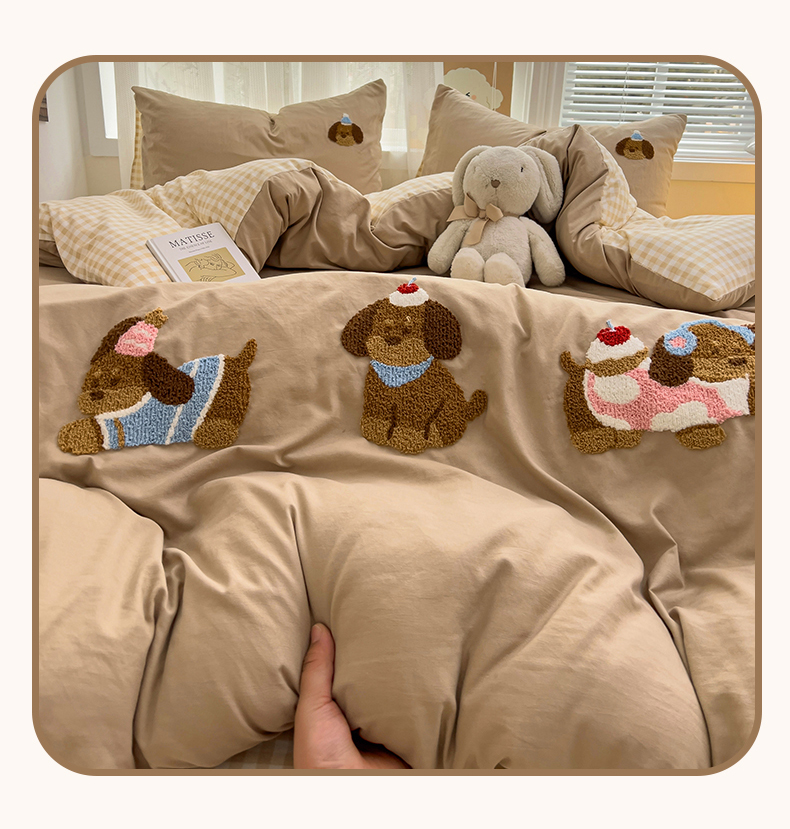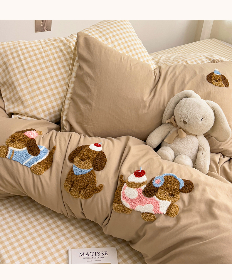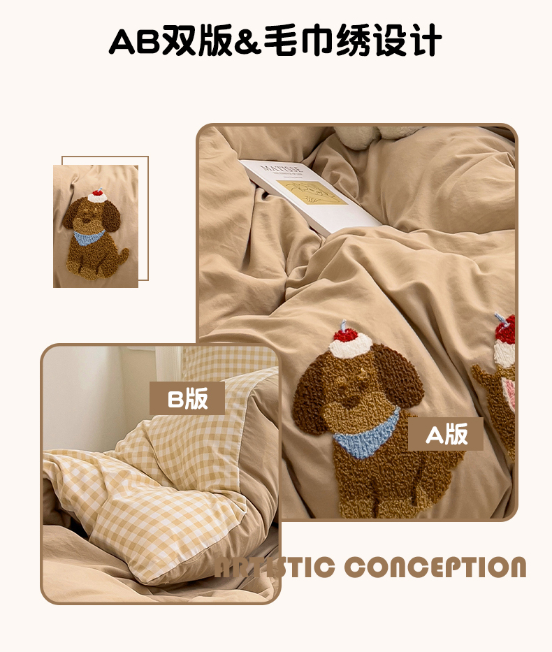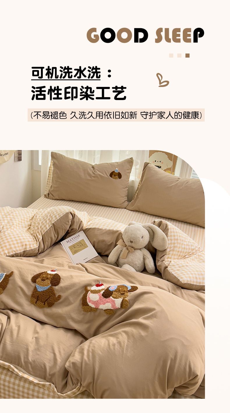 当前位置: 91家纺网 > 商品网购 > 床品套件 > 四件套 > 其它四件套 > 梦之岛 2025云朵棉ins腊肠狗可爱毛巾绣四件套 格子小狗-驼