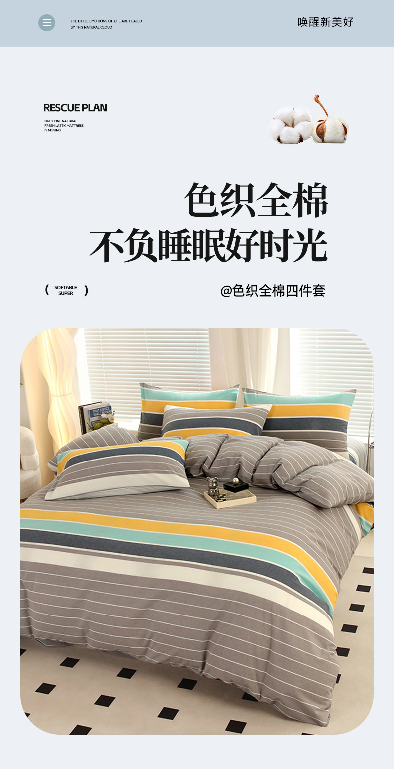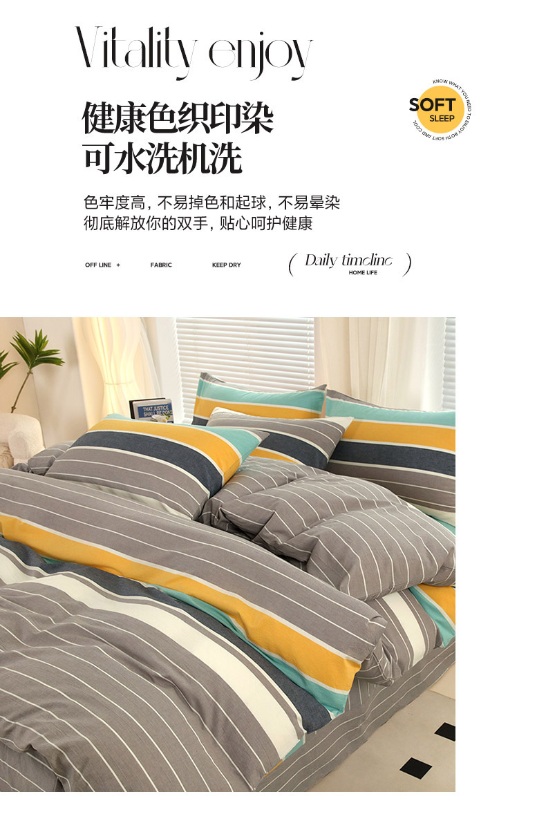 商品名称:金纱玉纺家纺 2024新款全棉水洗棉四件套记忆色彩-灰