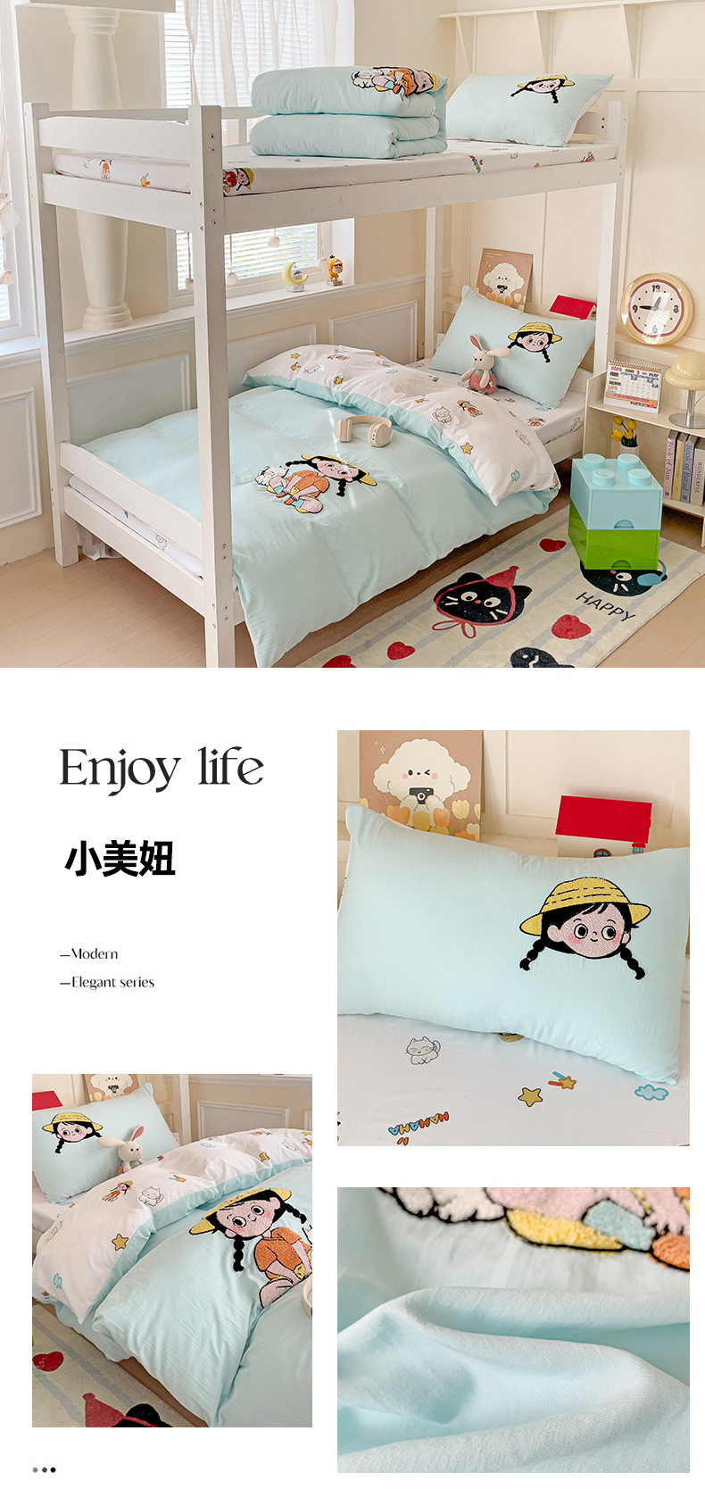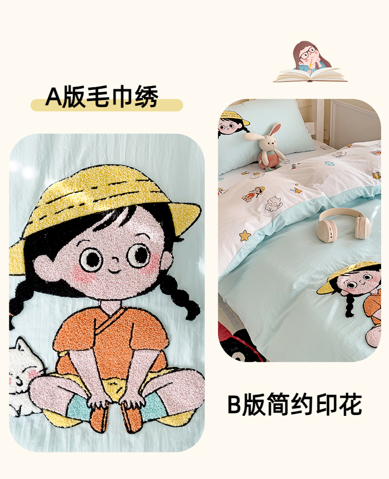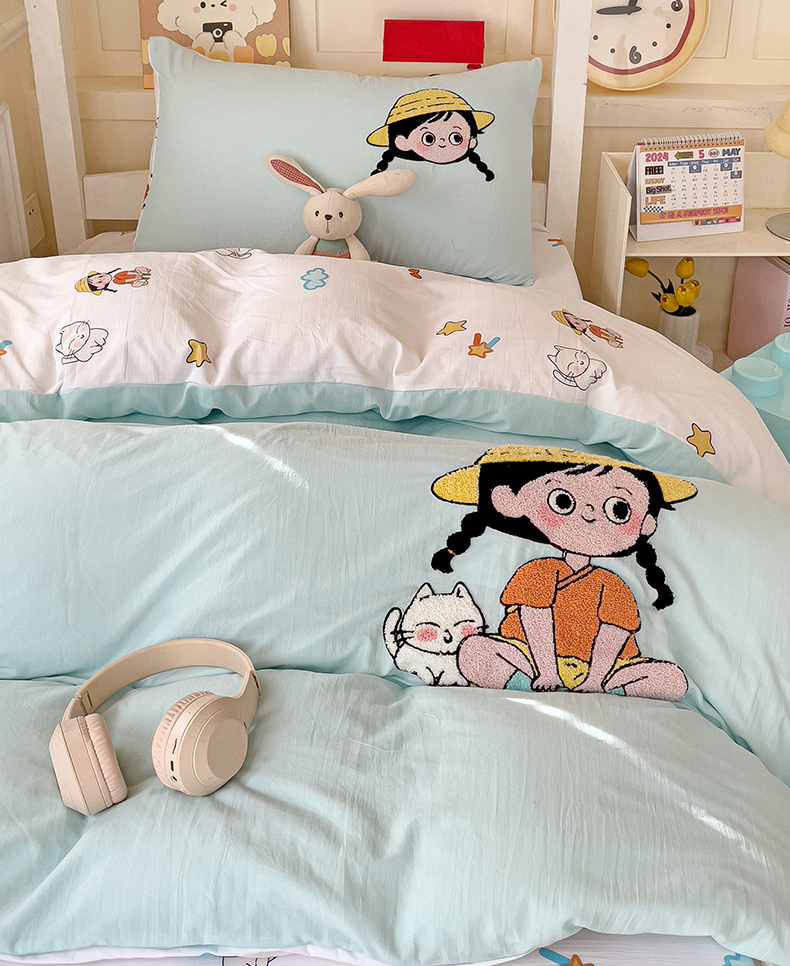 当前位置: 91家纺网 > 商品网购 > 床品套件 > 四件套 > 毛巾绣四件套 > 凯洛奇 2025新款1卡通水洗棉印+绣毛巾绣四件套(学生床)【提供买家秀】 小美妞