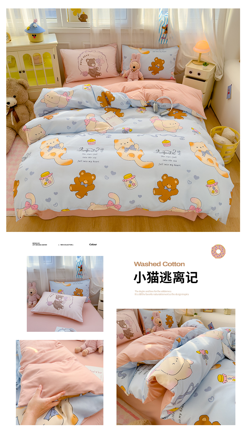 当前位置: 91家纺网 > 商品网购 > 床品套件 > 四件套 > 水洗棉四件套 > 宏源家纺 2025新款A类大版枕套水洗云朵棉四件套 小猫逃离记