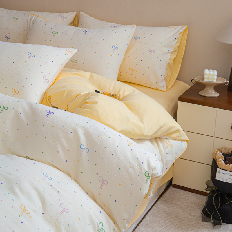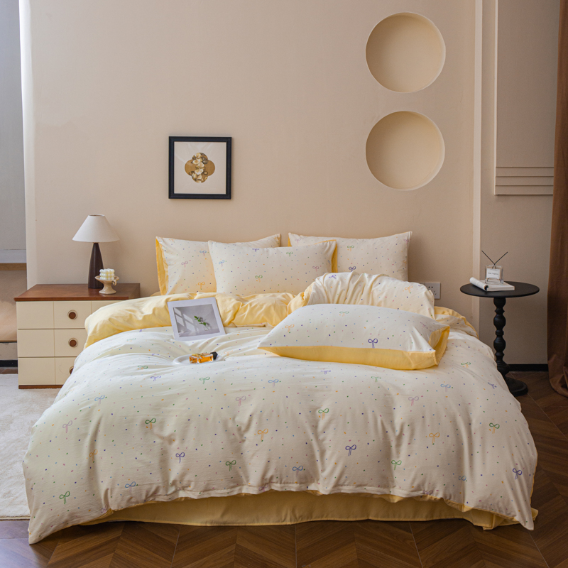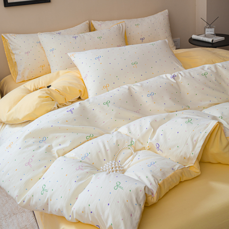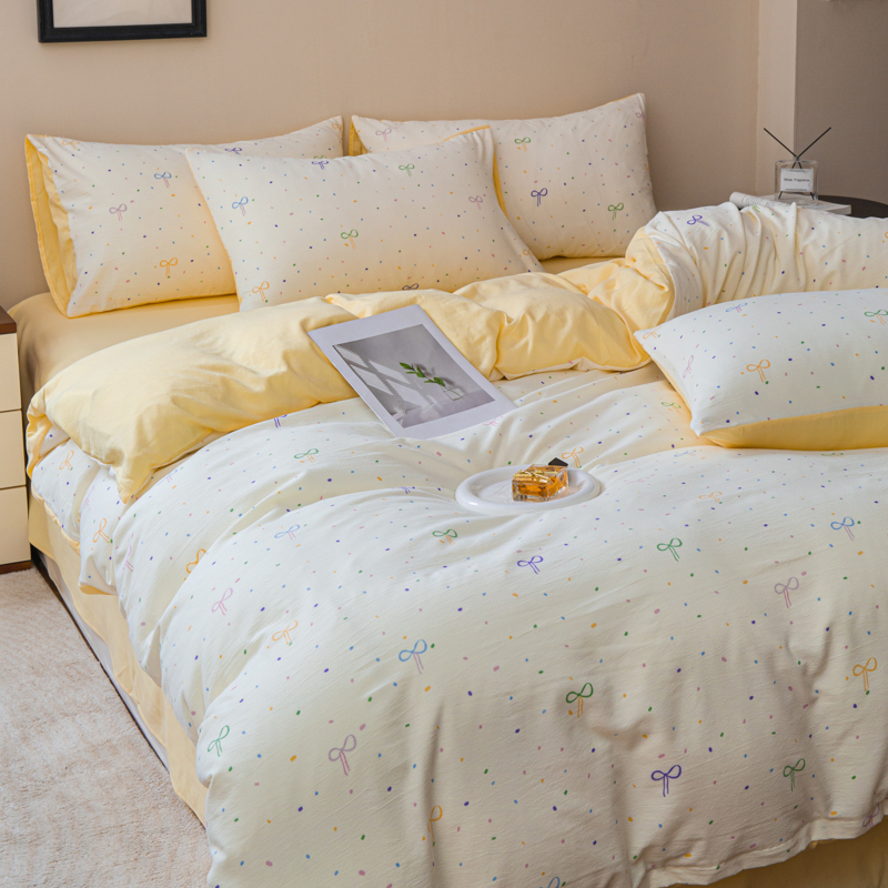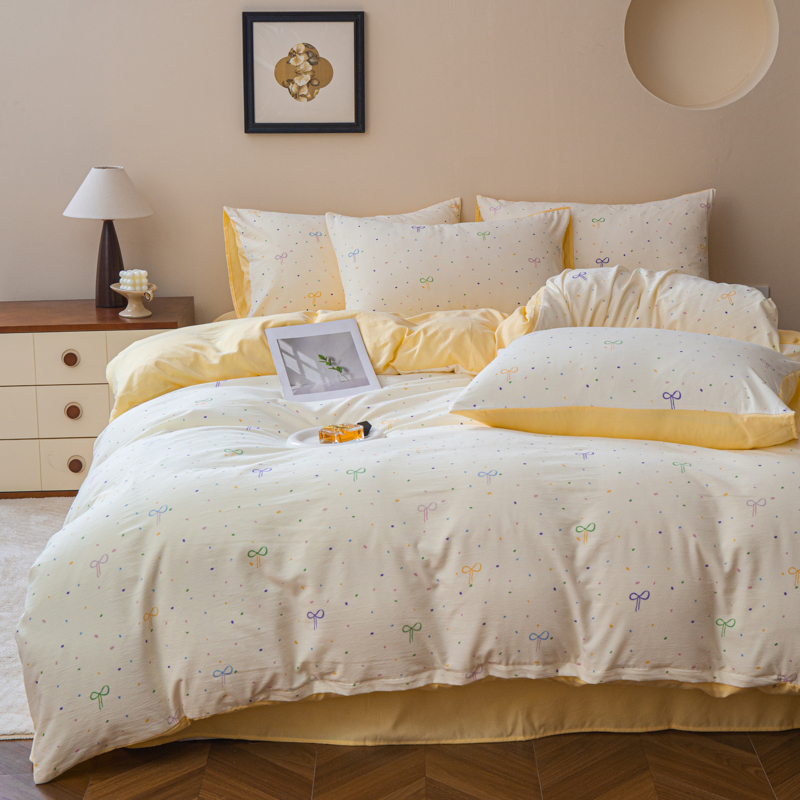商品名称:斯卡诺家纺 2025新款针织天竺棉水洗棉四件套被套学生宿舍三件套床单款 小幸运