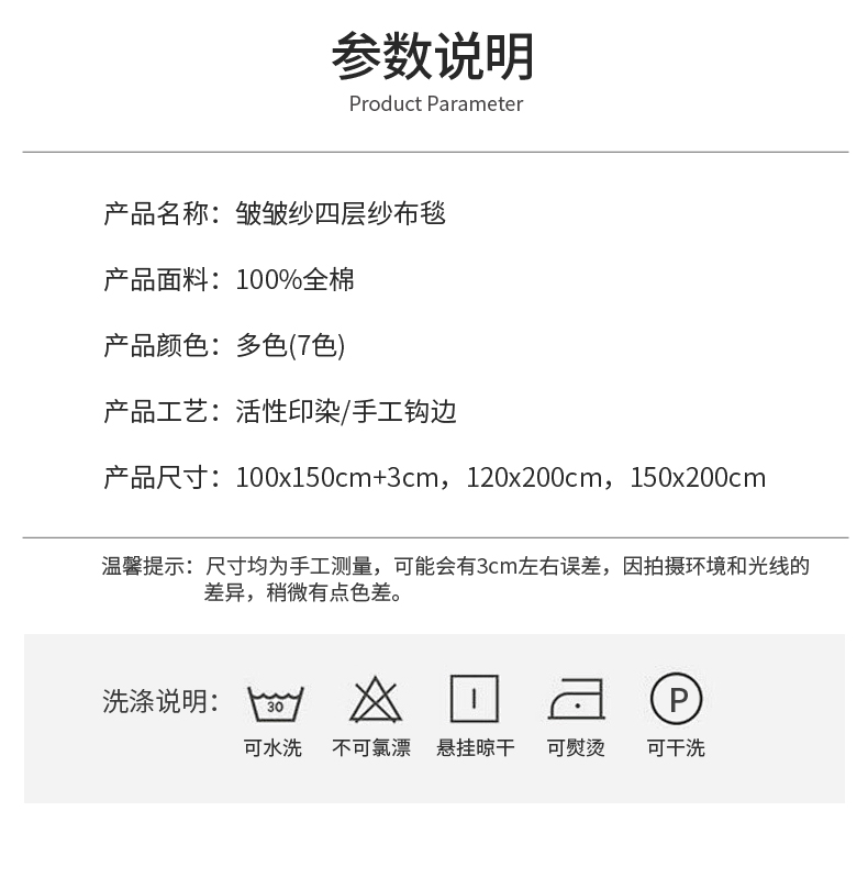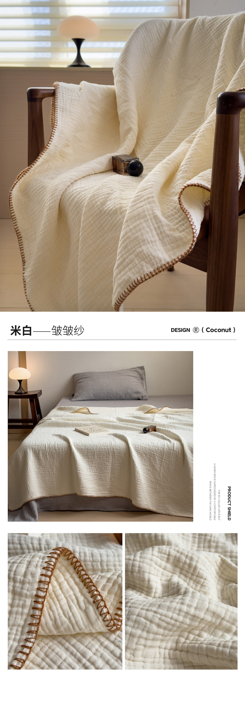 商品名称:席世家四层纱布毯 米白