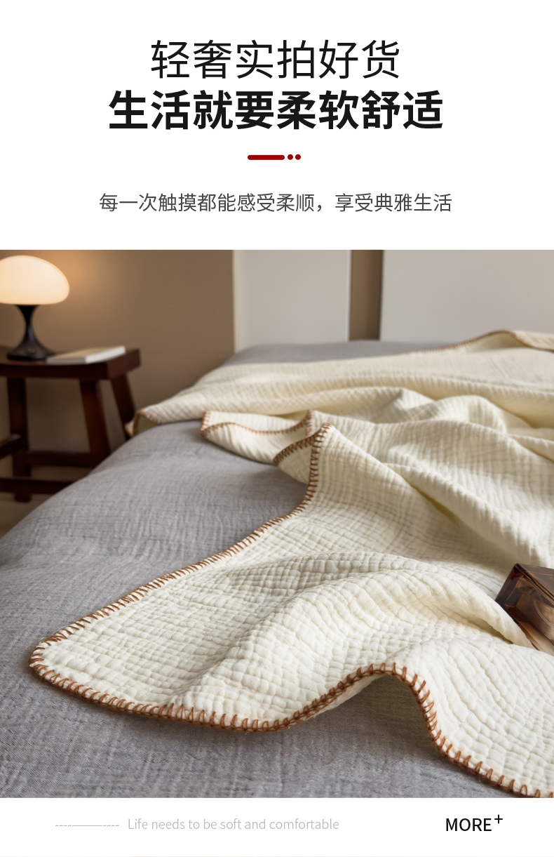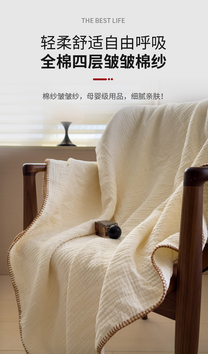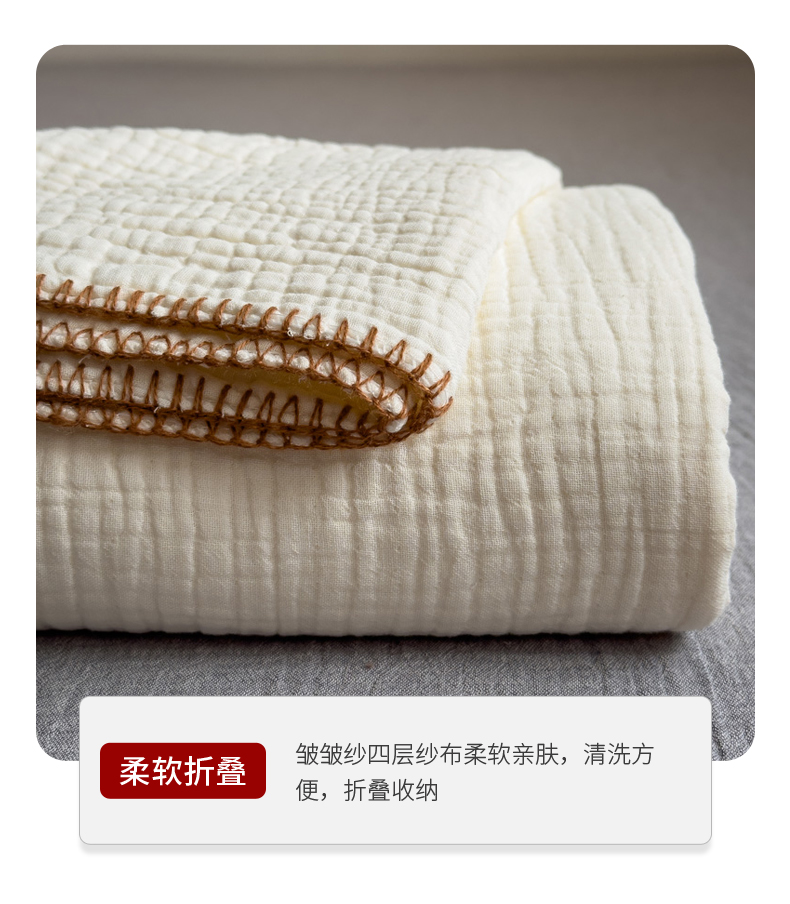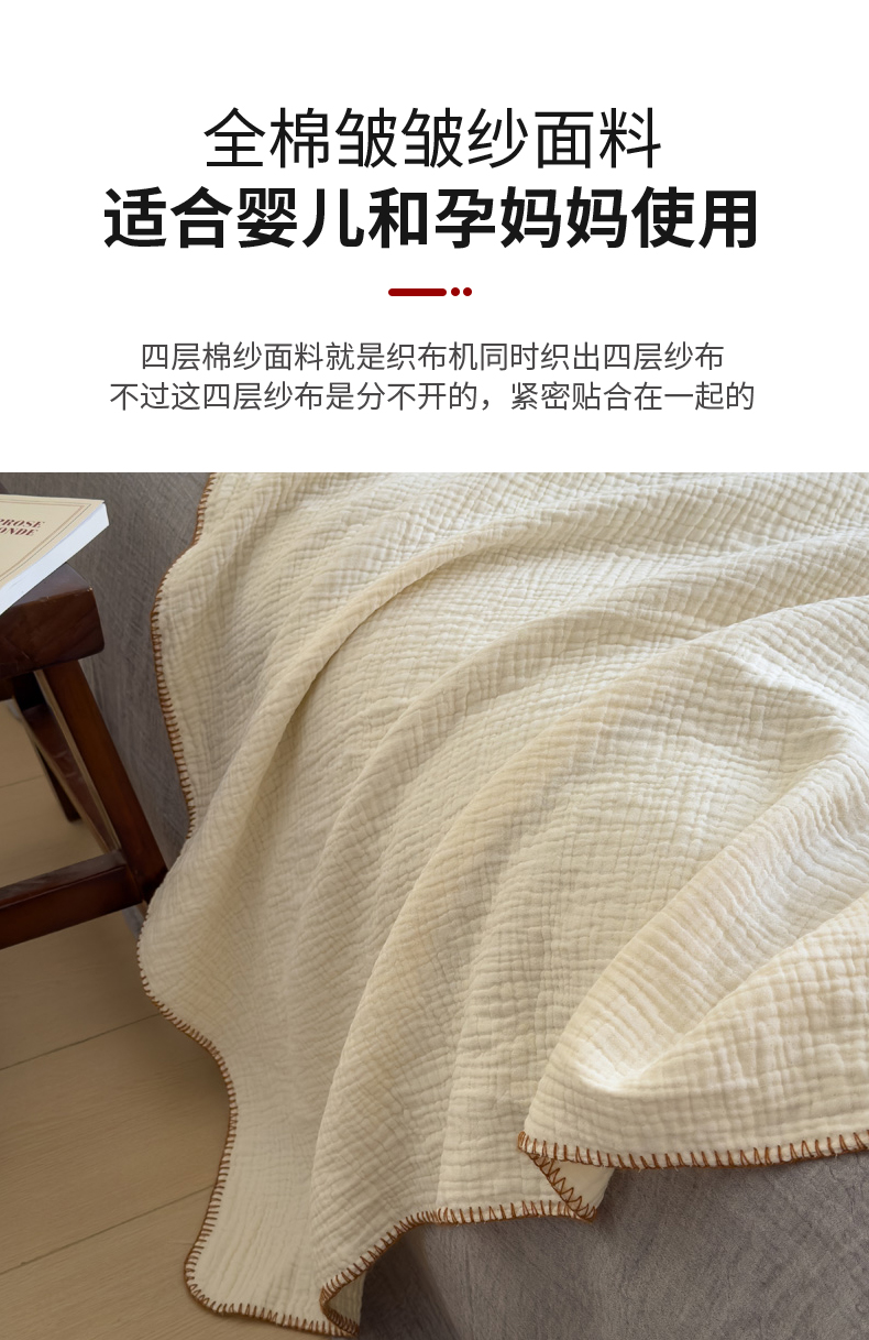 席世家四层纱布毯 米白