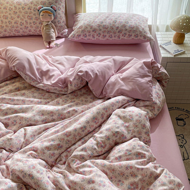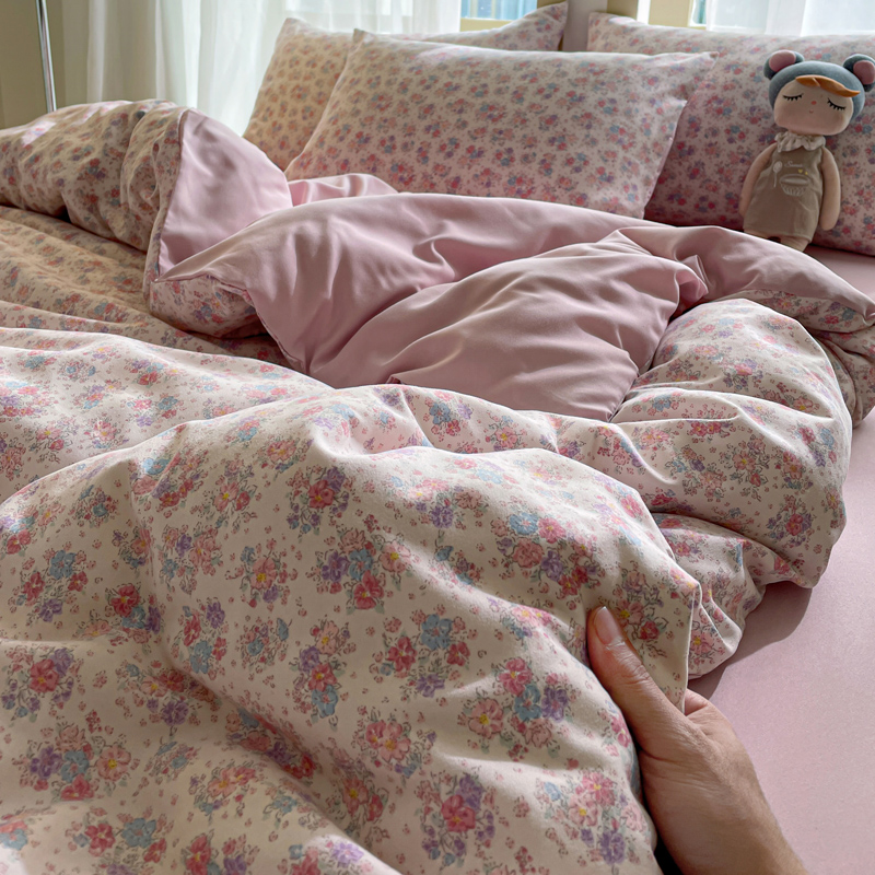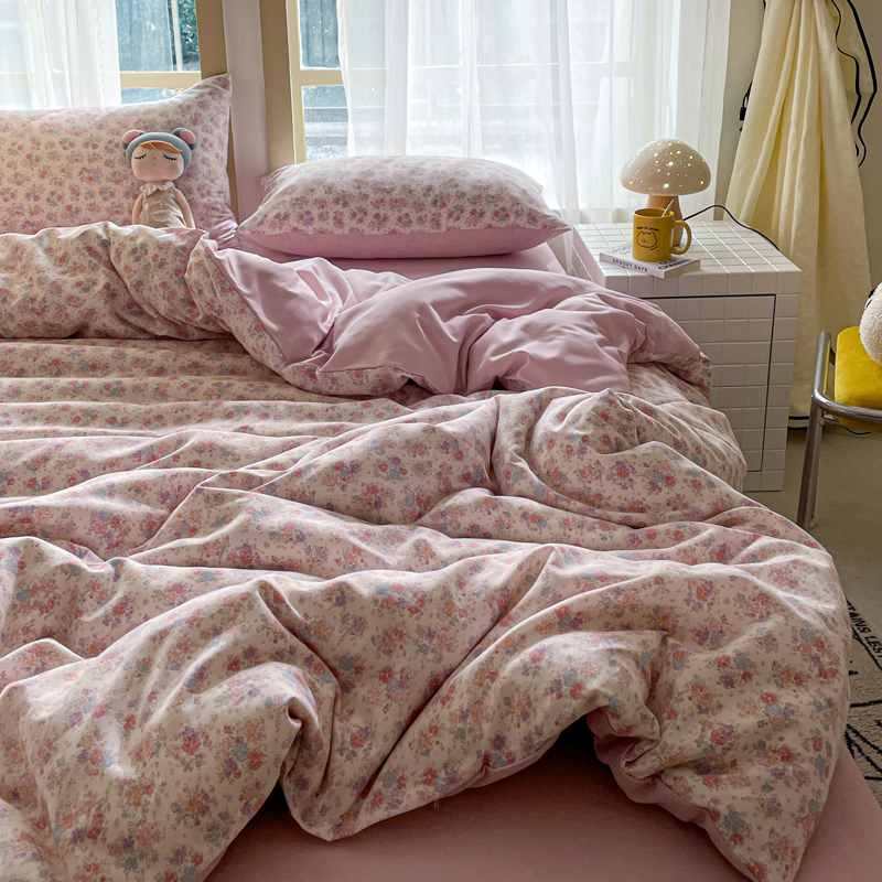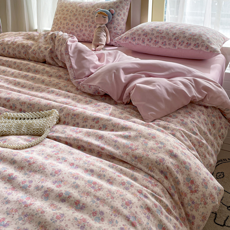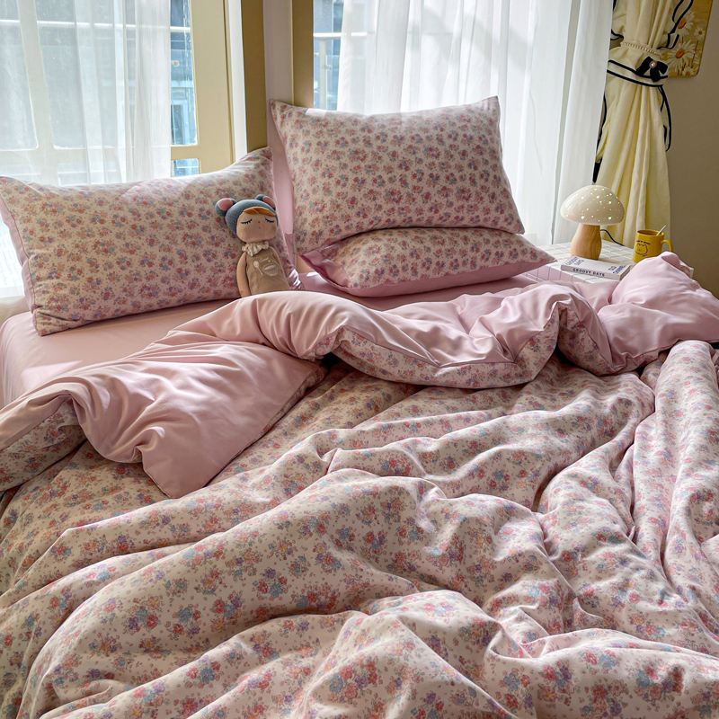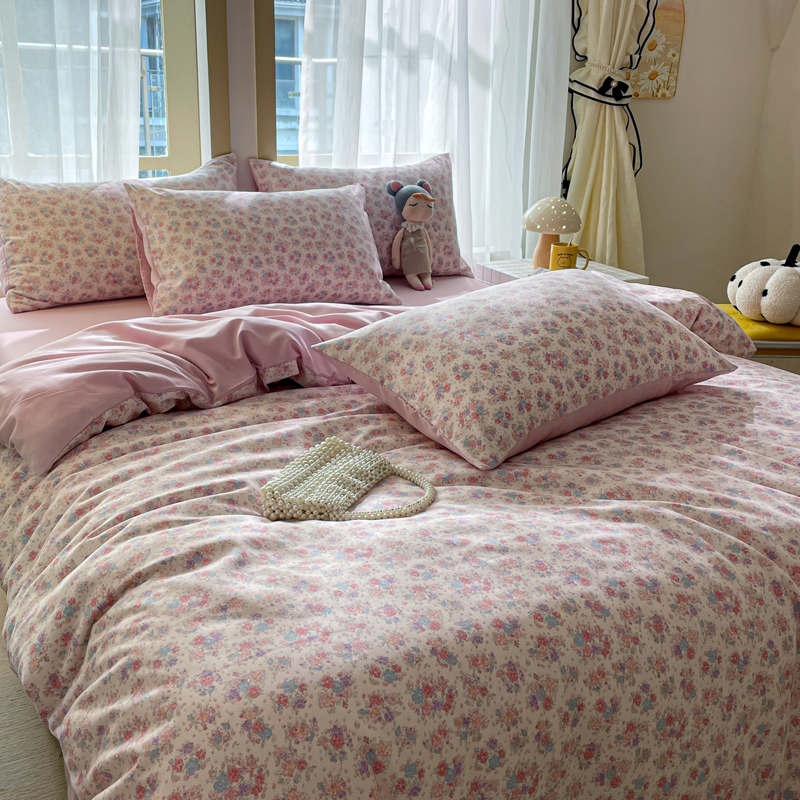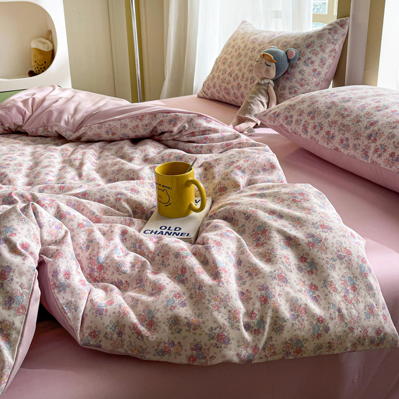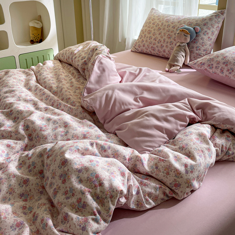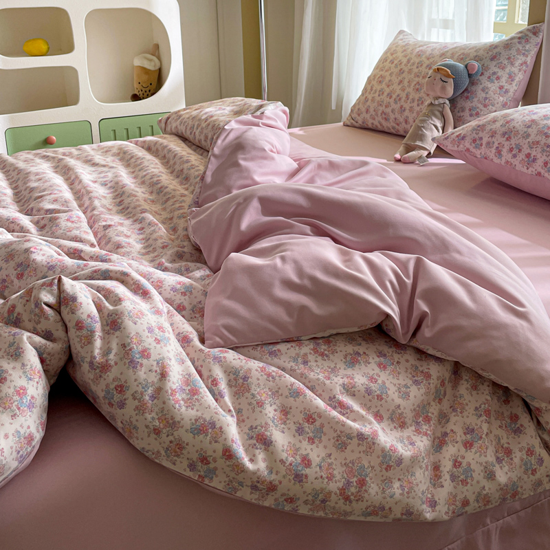 仟网汇 2025新款针织双层纱AB版四件套 粉娜