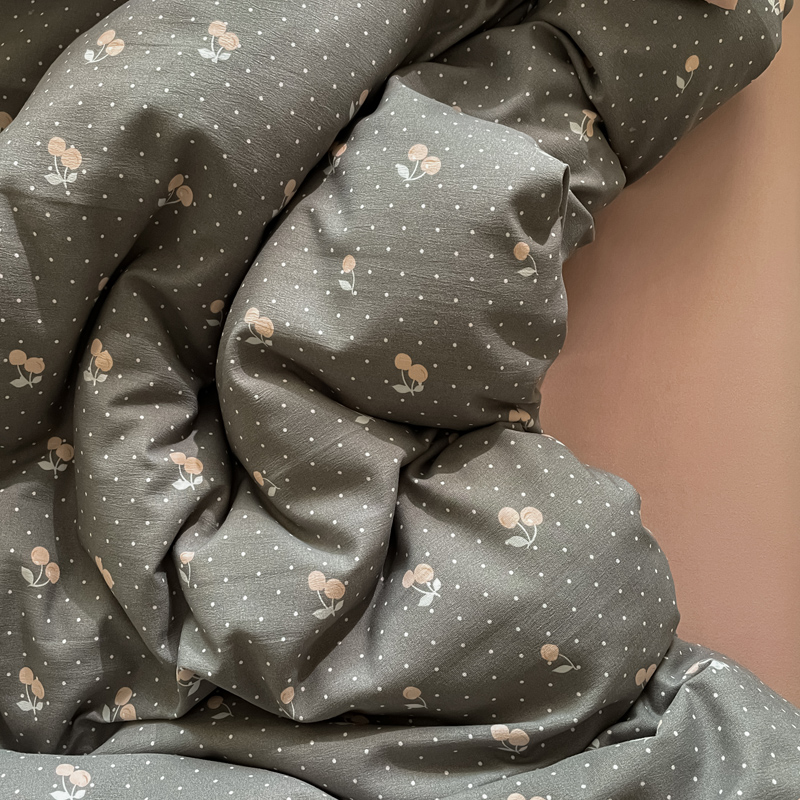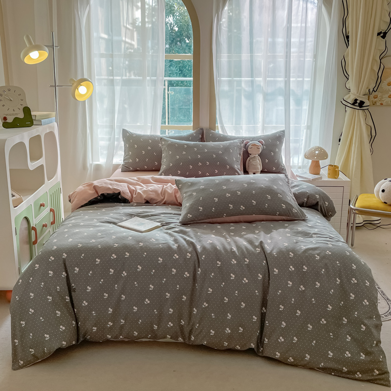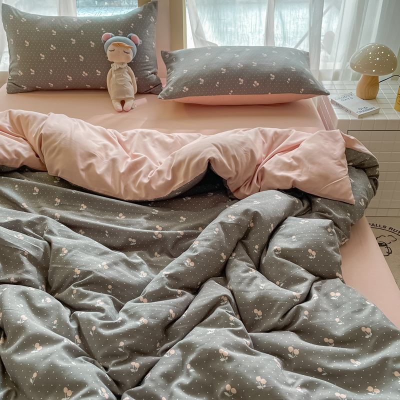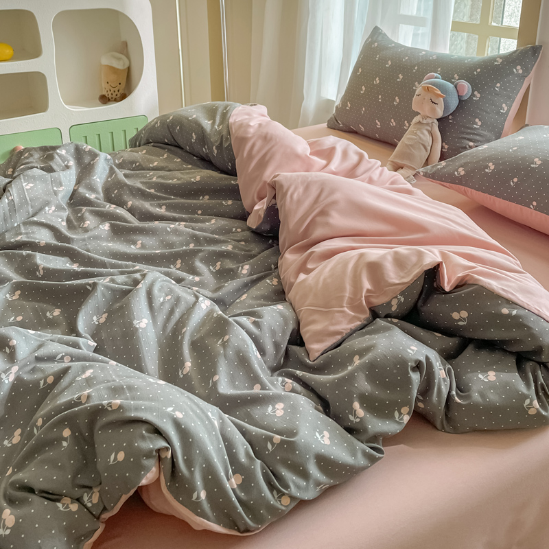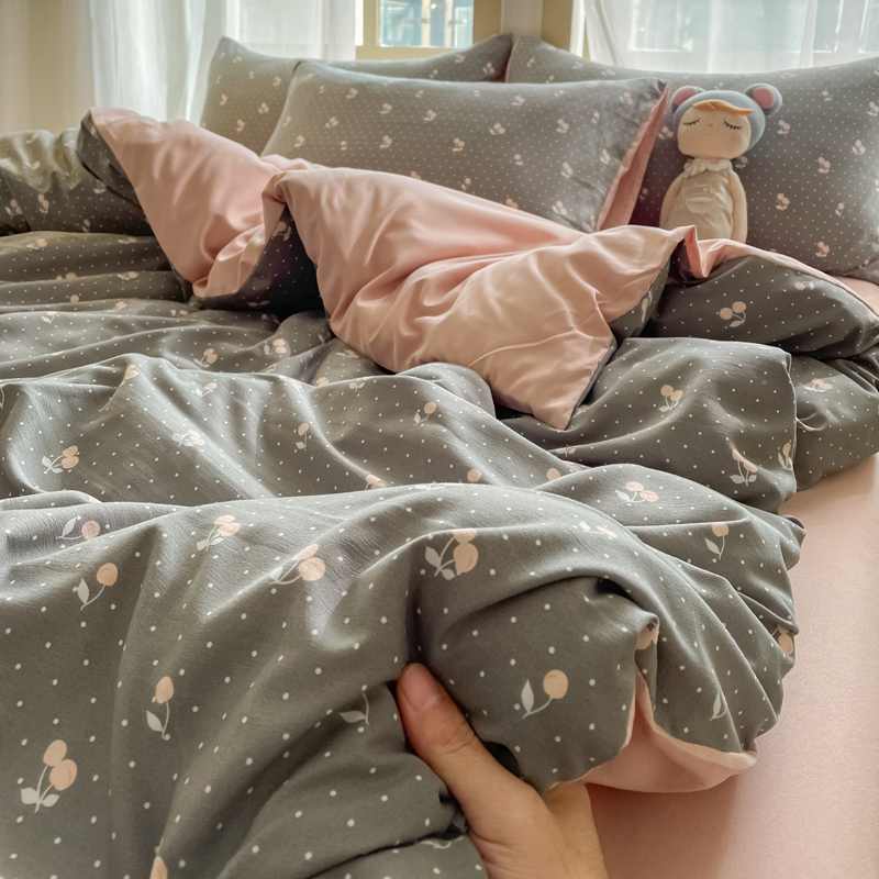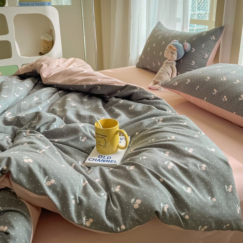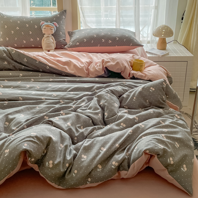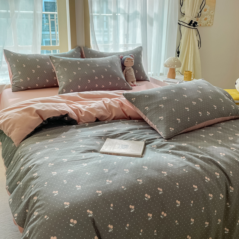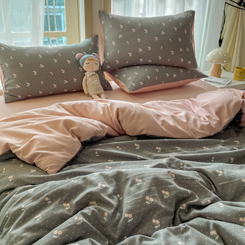 仟网汇 2025新款针织双层纱AB版四件套 樱桃点点