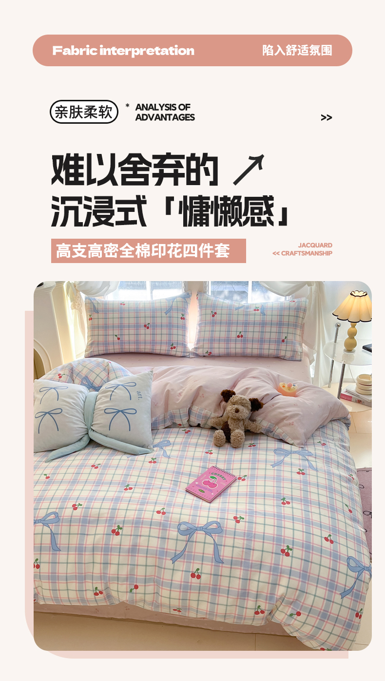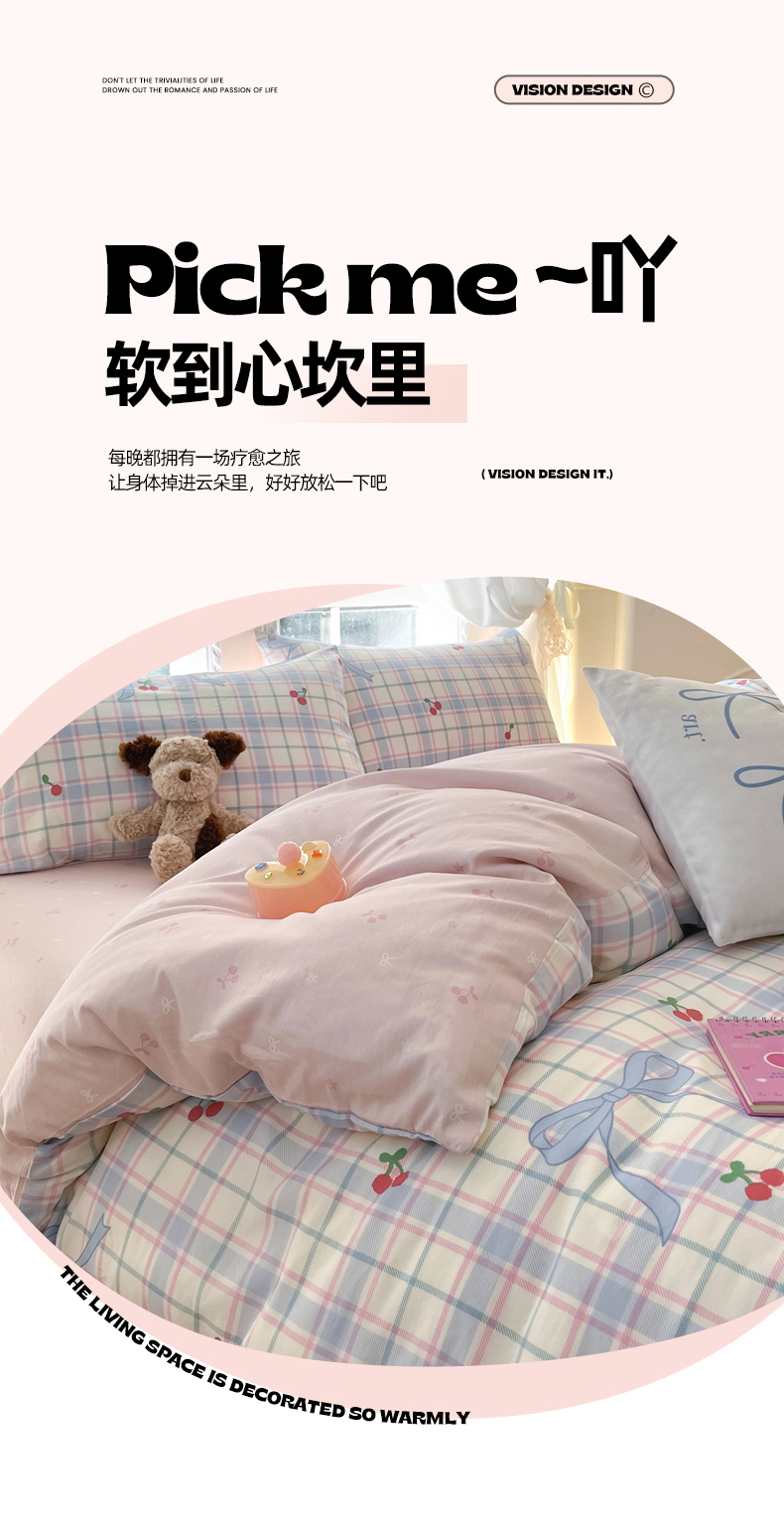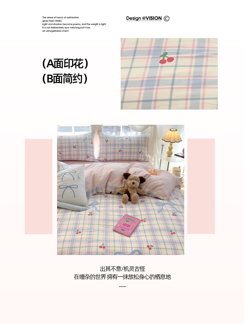 当前位置: 91家纺网 > 商品网购 > 床品套件 > 四件套 > 全棉普通四件套 > Sweet dreams甜梦 2025新款全棉印花卡通小清新四件套 蝴蝶结樱桃