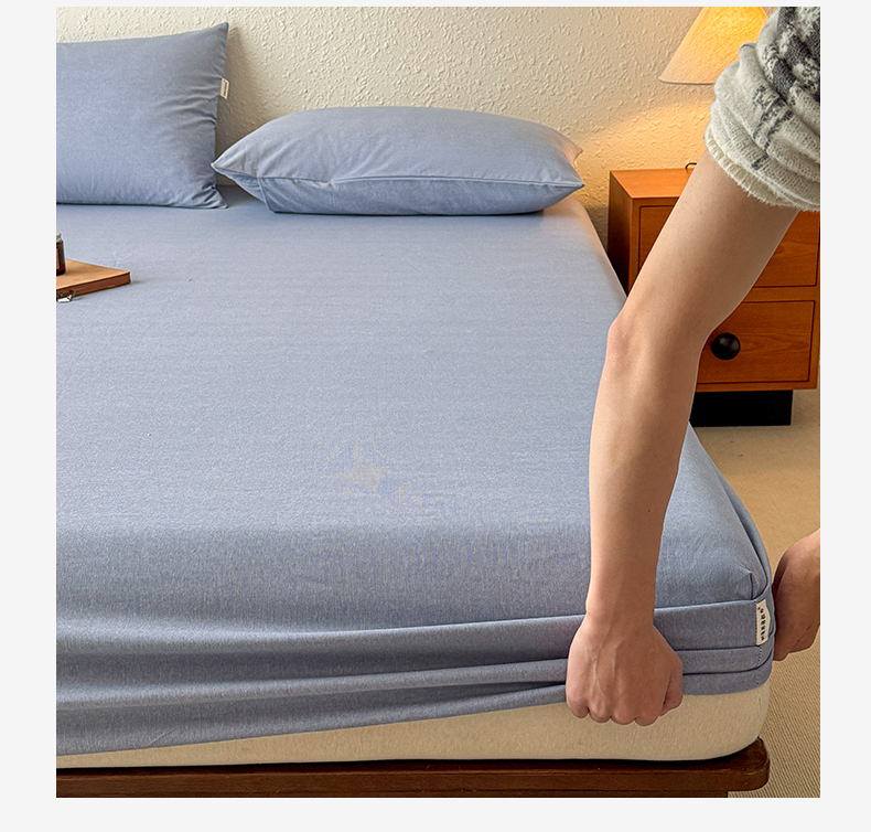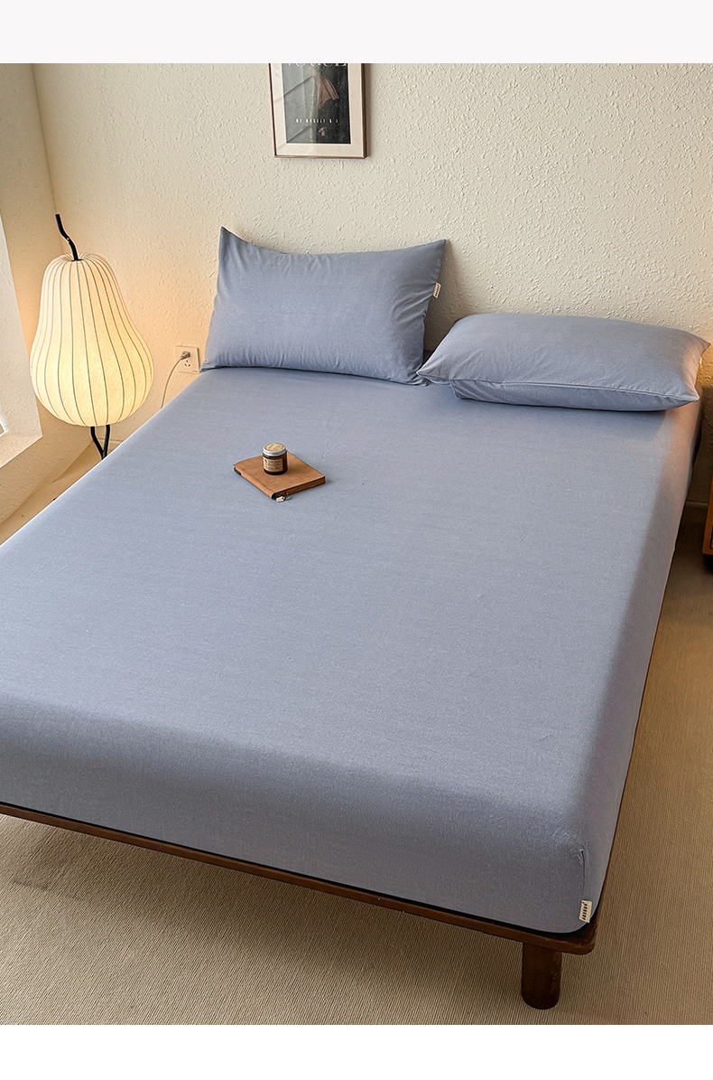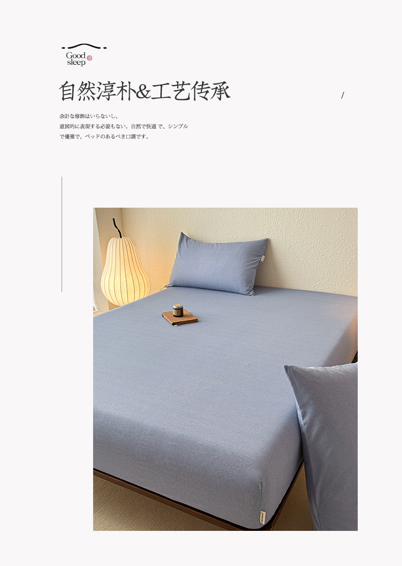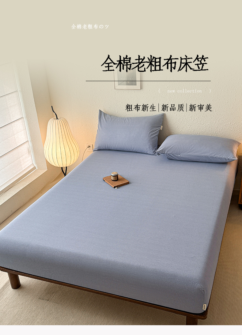 卧趣家纺 2025新品全棉纯色老粗布单品床笠系列 月白兰