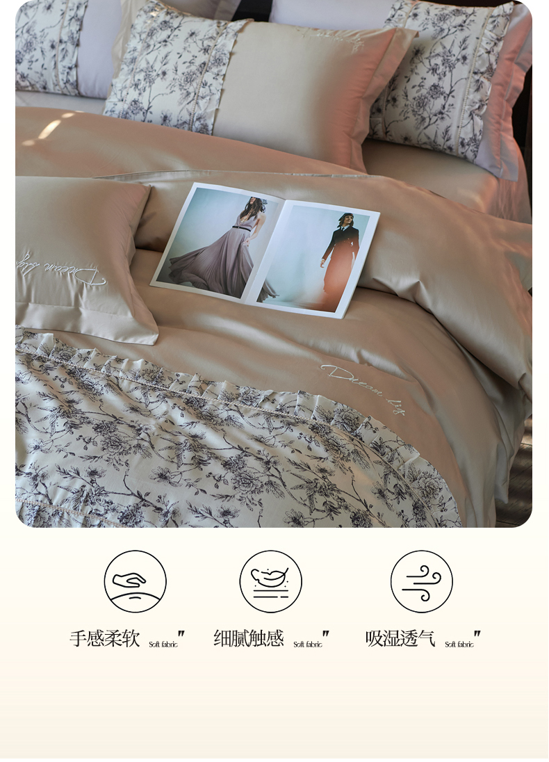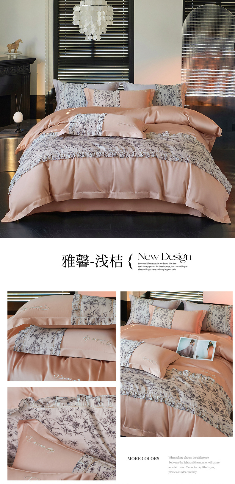 (总)淼铭家纺 2025新款莱赛尔夏被四件套-黛莉丝系列,黛丽丝-粉,黛莉丝-金,黛莉丝-青,黛莉丝-紫