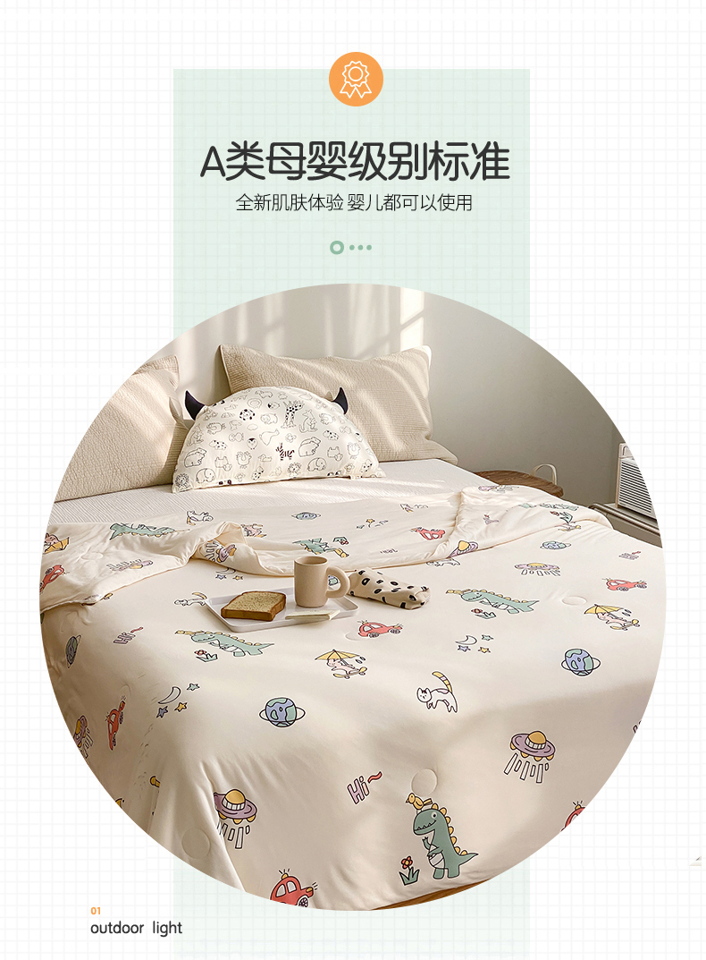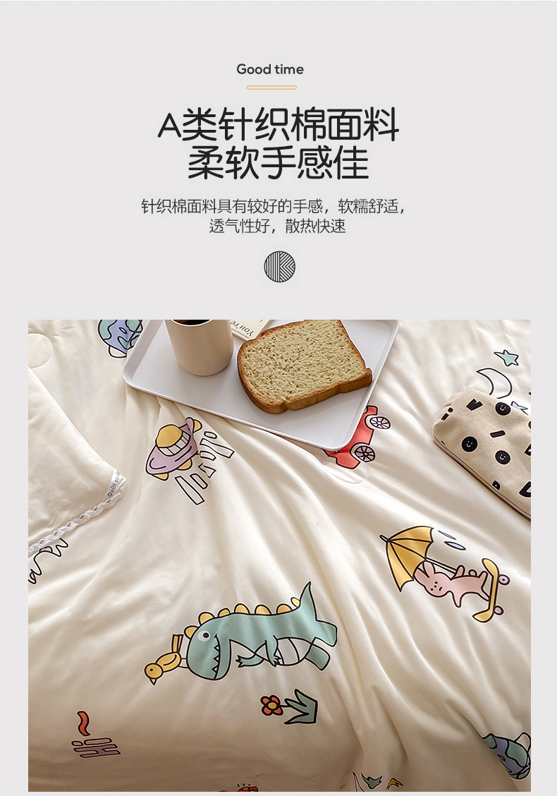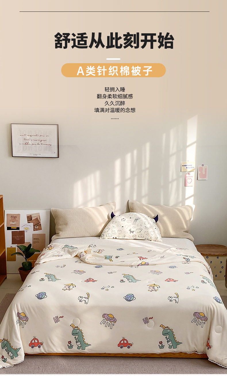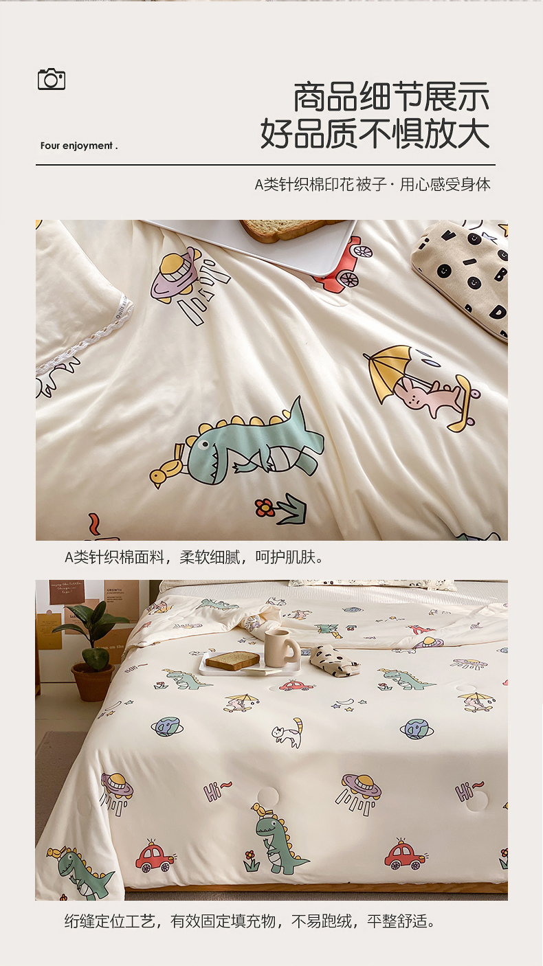 • 91家纺网 家纺一手货源 找家纺 心卓婴童馆 2025新款A类针织棉被芯—影棚图 恐龙宝贝