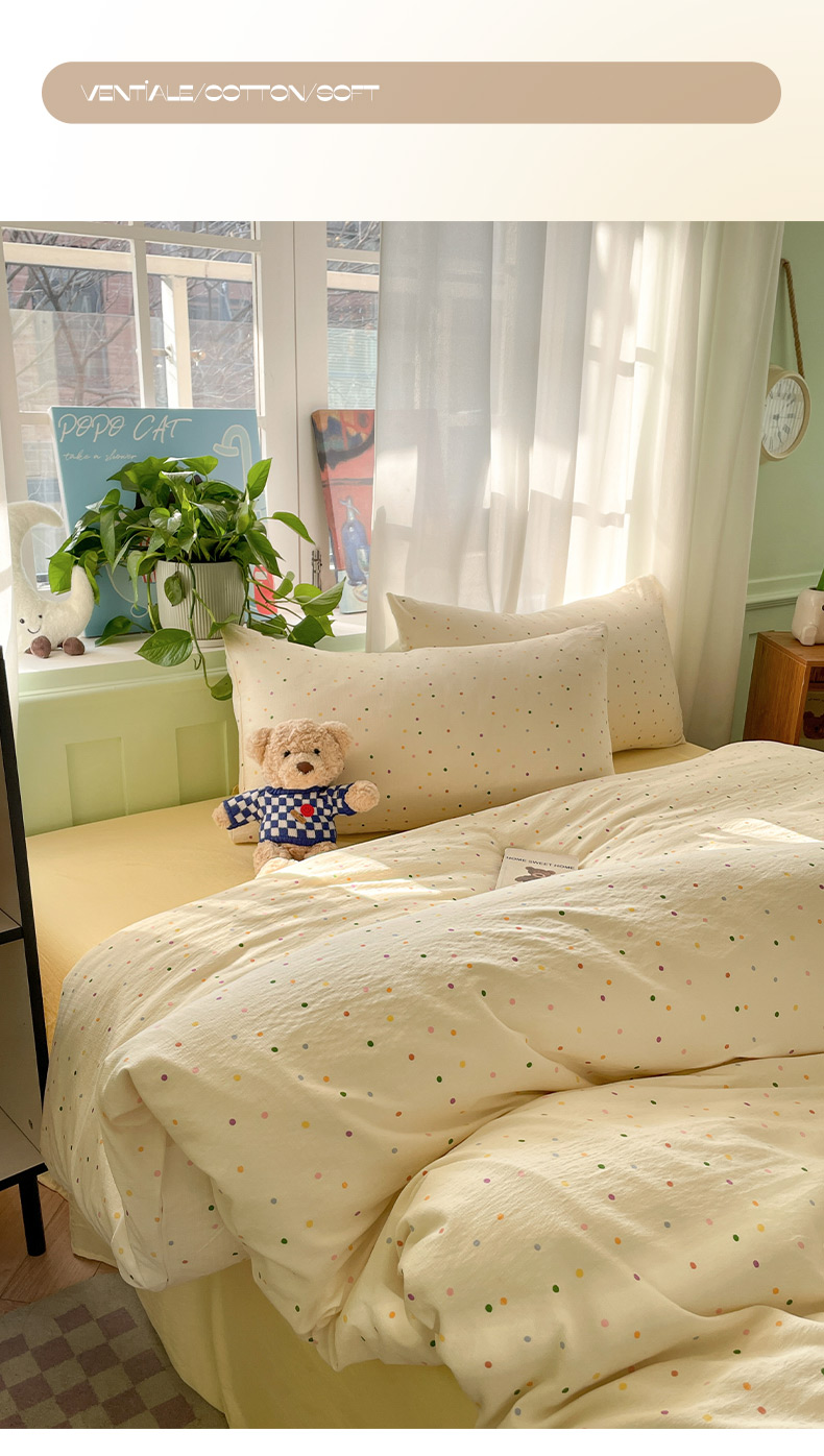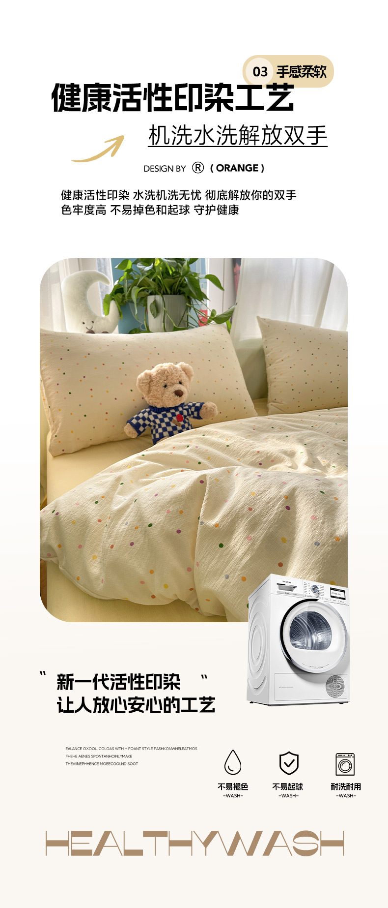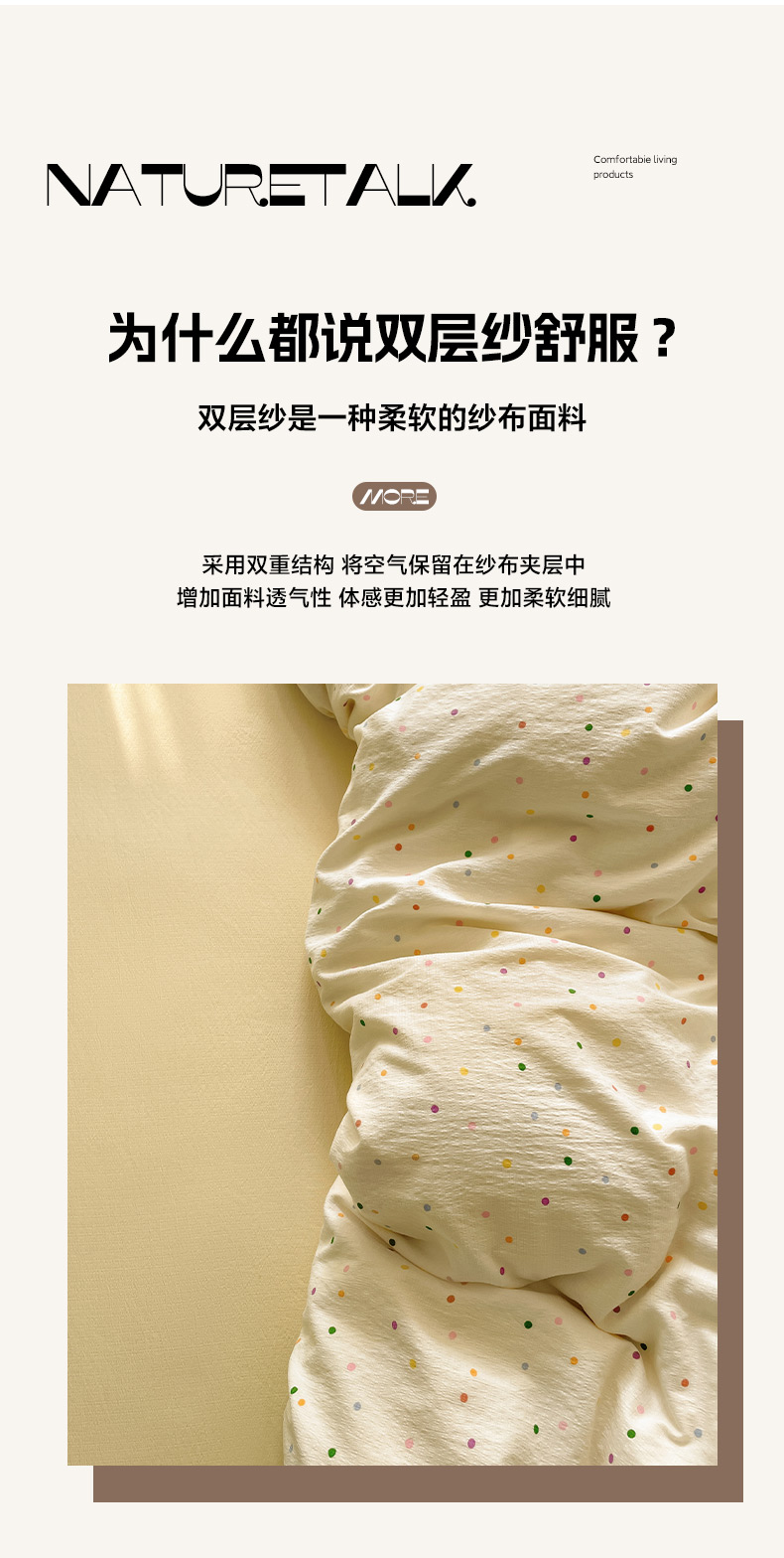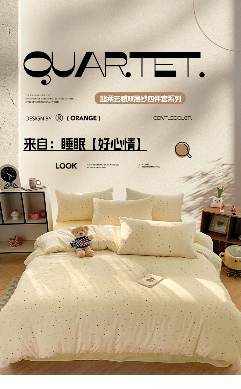 当前位置: 91家纺网 > 商品网购 > 床品套件 > 四件套 > 双层纱四件套 > 优承佳生活馆 2025新款有氧超柔云感双层纱三件套四件套单被套 场景二 彩色波点
