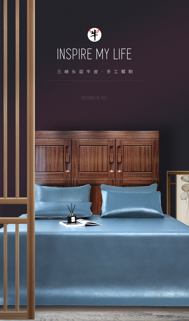 商品名称:阿牛席业 2025新款牛皮凉席系列 深蓝色彩-加厚纯彩