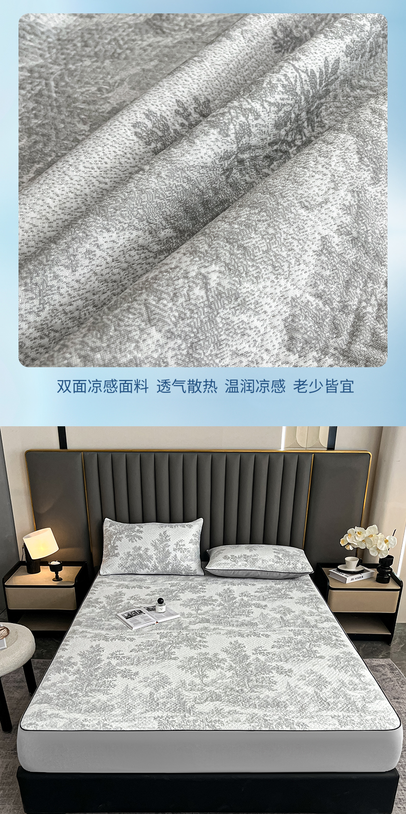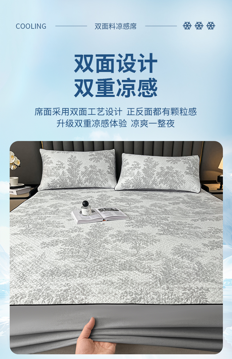 商品名称:阿牛席业2025新款凉感软席系列-F-凉感双面软席床笠 秘境-森林灰