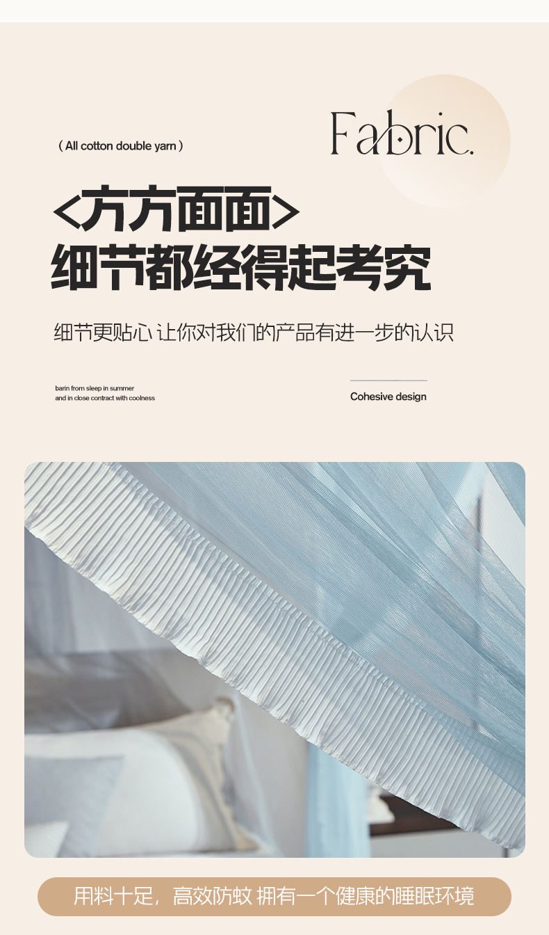 (总)夏彩 2025新款浪漫唯美T+U床笠式坐床外穿防摔蚊帐-88610,886610冰海蓝,886610极光白,886610浅粉玉,886610浅水蓝,886610蔷薇粉,886610杏仁黄,886610雅士灰