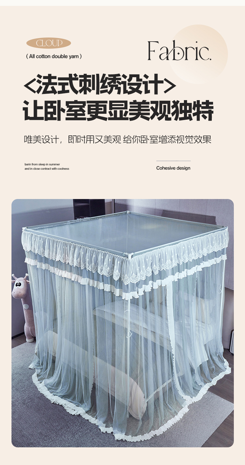 (总)夏彩 2025新款棉麻雪纺绣花防遮光铁艺烤漆学生蚊帐-88627,珍珠扣,88627-蓝灰,88627-蓝绿,88627-暖灰,88627-浅粉玉,88627-清新绿,88627-香槟,88628-茶杏色,88628-青术灰,88628-清新绿,88628-云水蓝