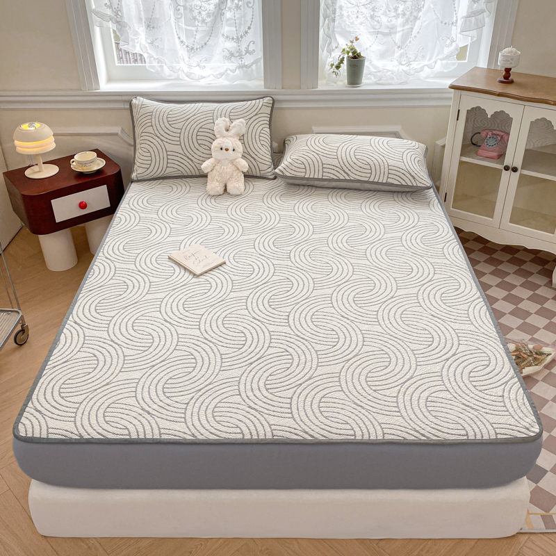 • 91家纺网 家纺一手货源 找家纺 迪梦思家纺  2025新款针织棉提花防水床笠 环带纹-星灰
