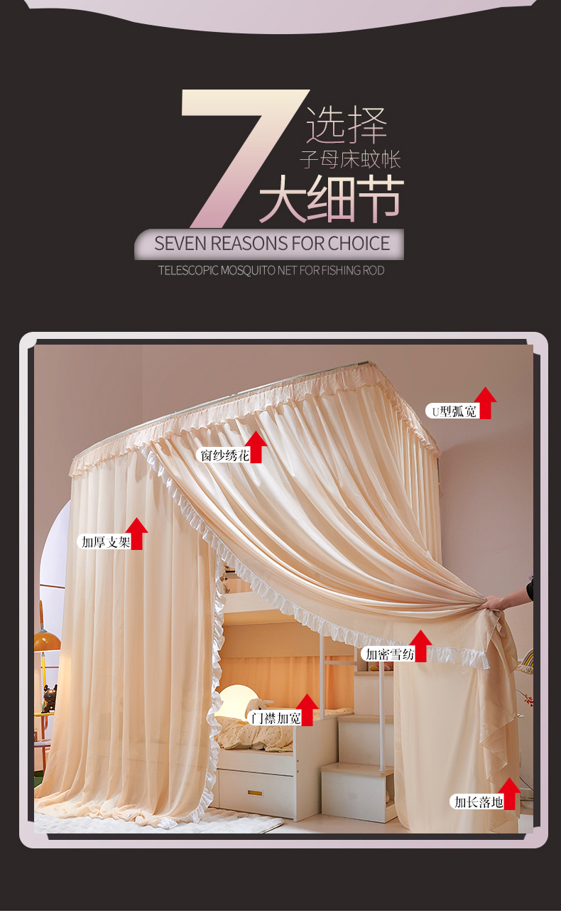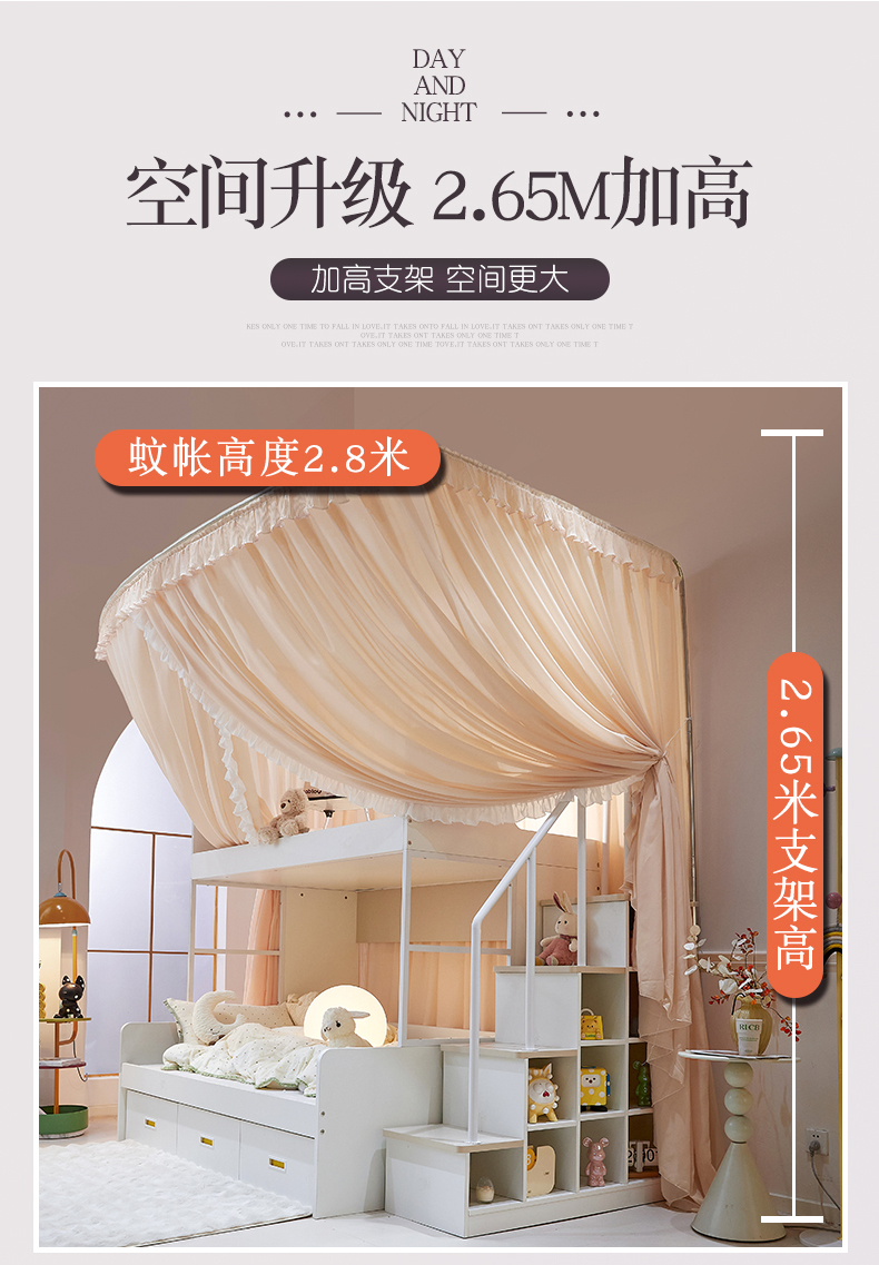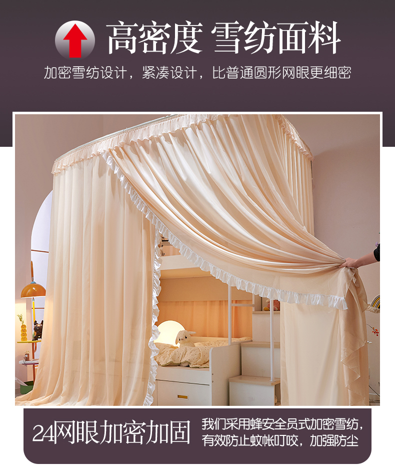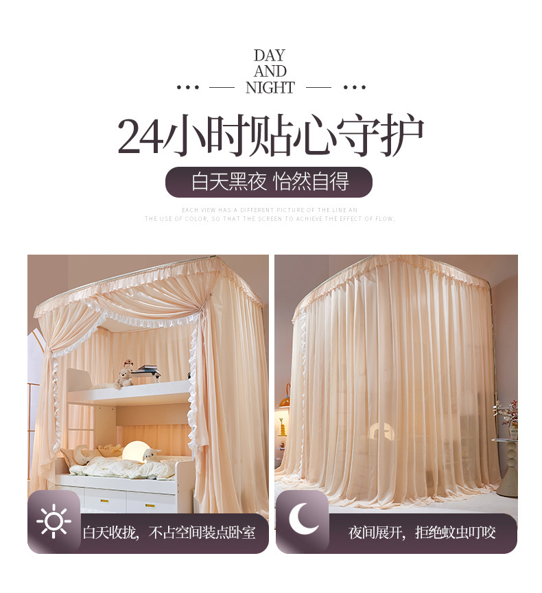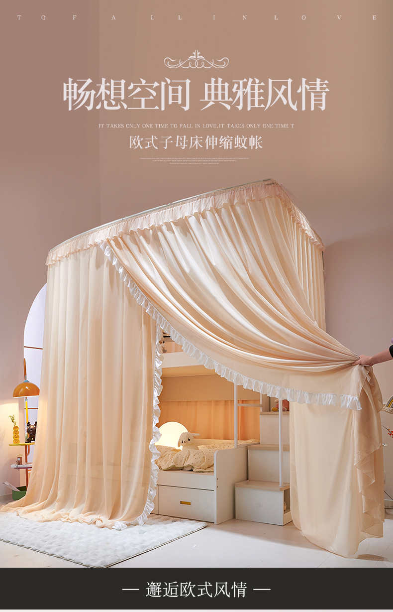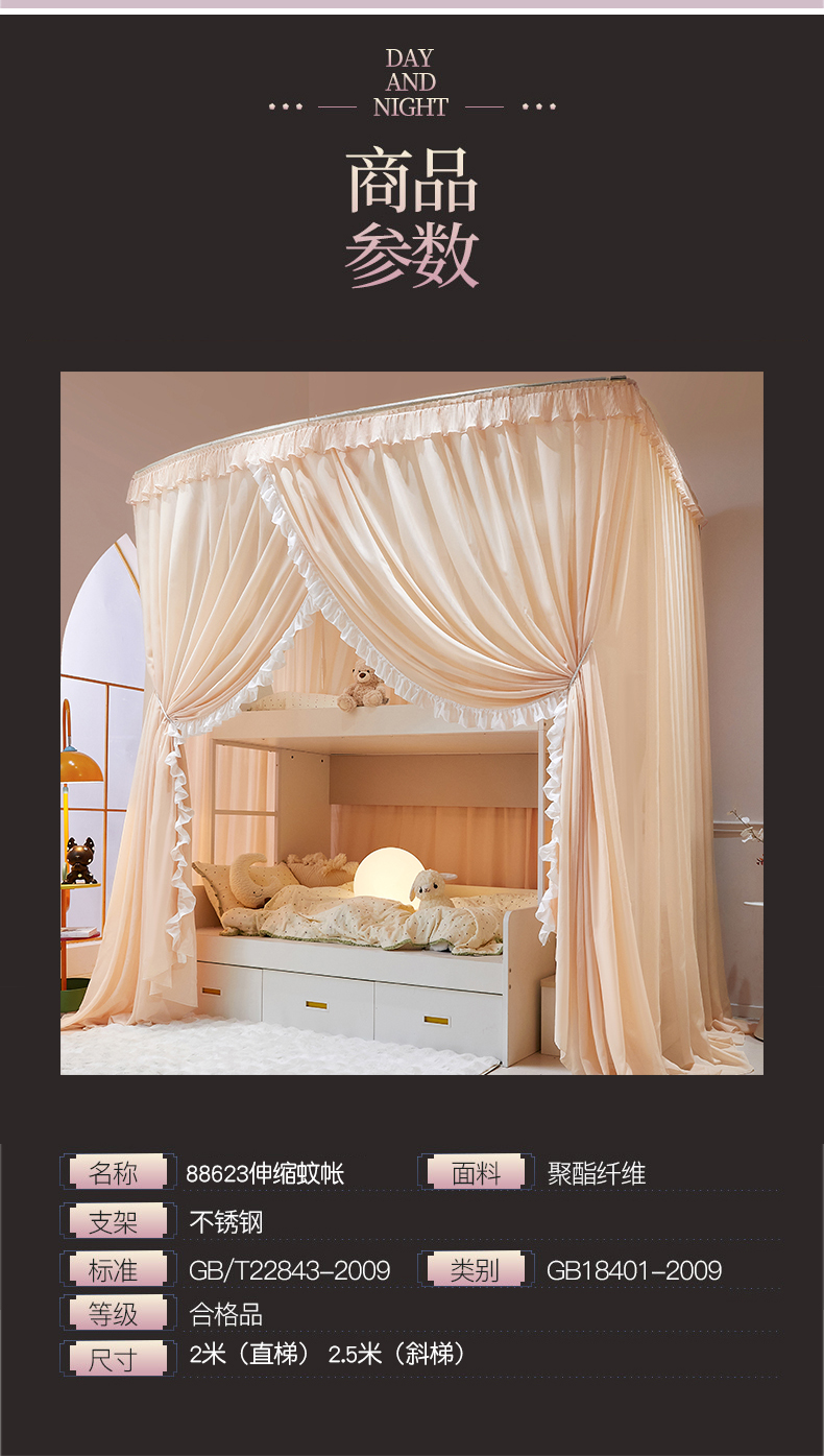 商品名称:夏彩 2025新款雪纺子母一体式伸缩蚊帐-88623 88623-魅力杏
