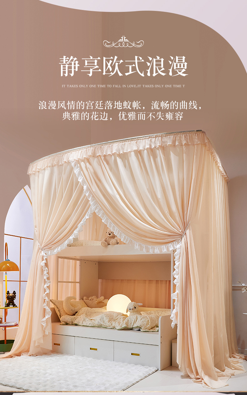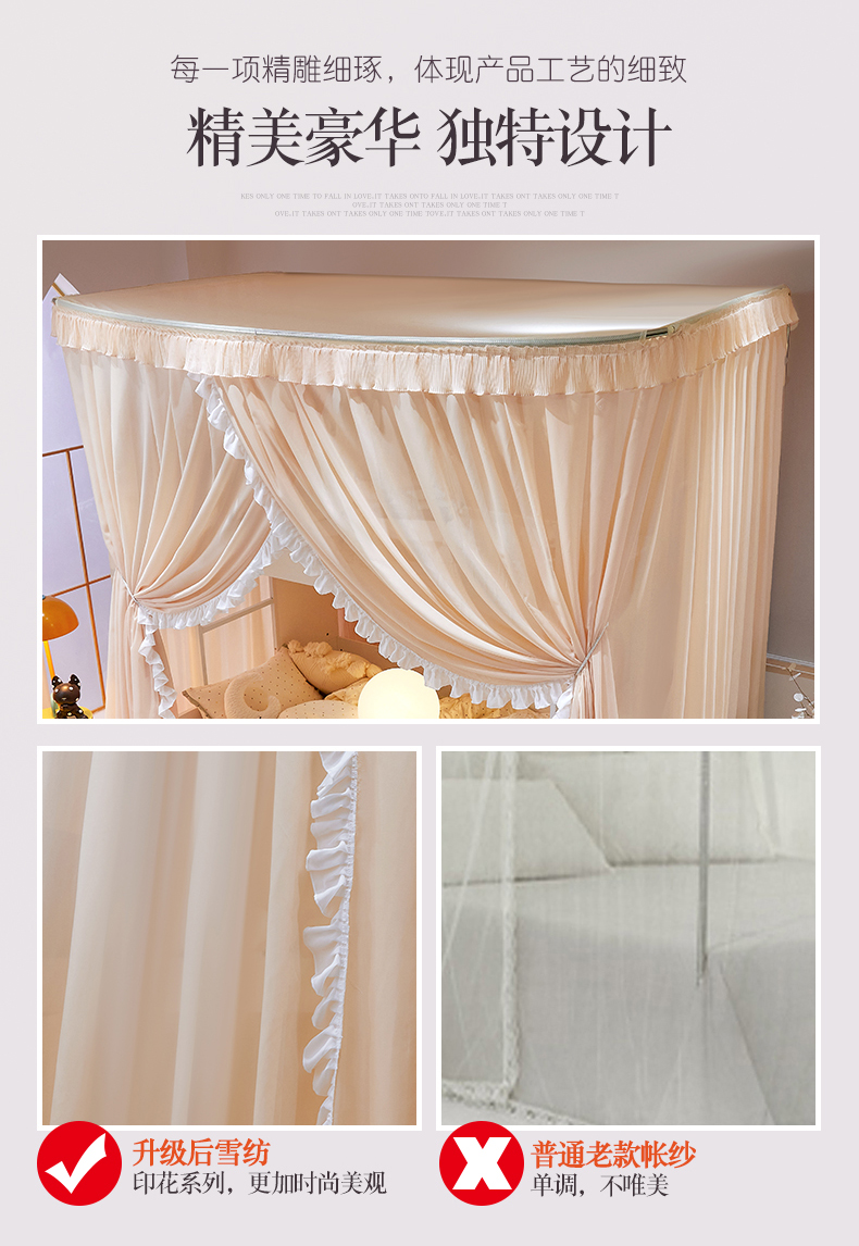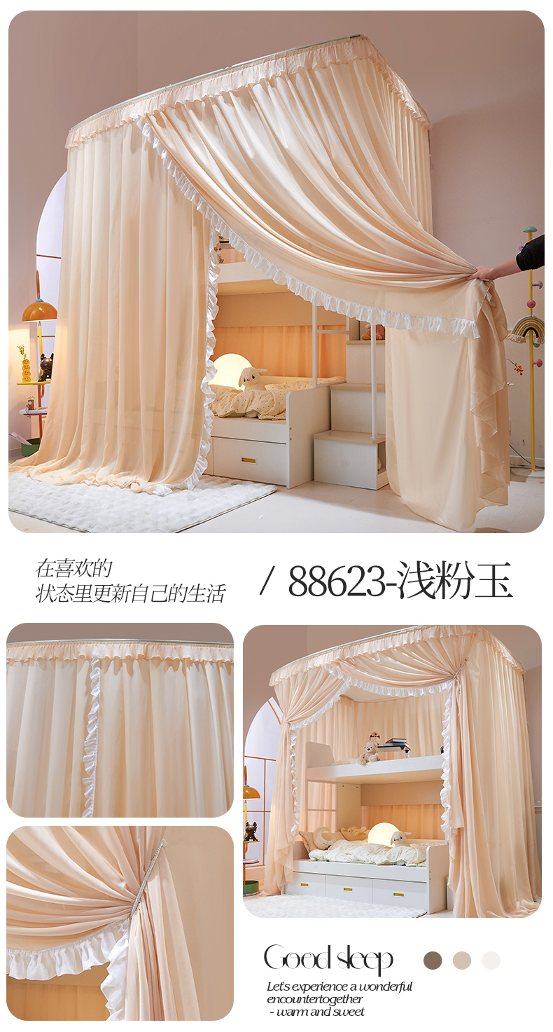 (总)夏彩 2025新款蕾丝U型防摔坐床蚊帐-88630,绿雅灰,藕玉色,香槟色