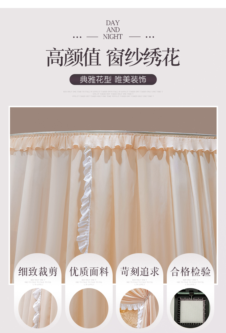(总)夏彩 2025新款雪纺绣花加柔加密外撑式25烤漆铁艺加粗支架宫廷蚊帐-88612,88612白色,88612卡其,88612蓝,88612蓝灰,88612抹茶绿,88612虾粉,88612杏色,88612玉色