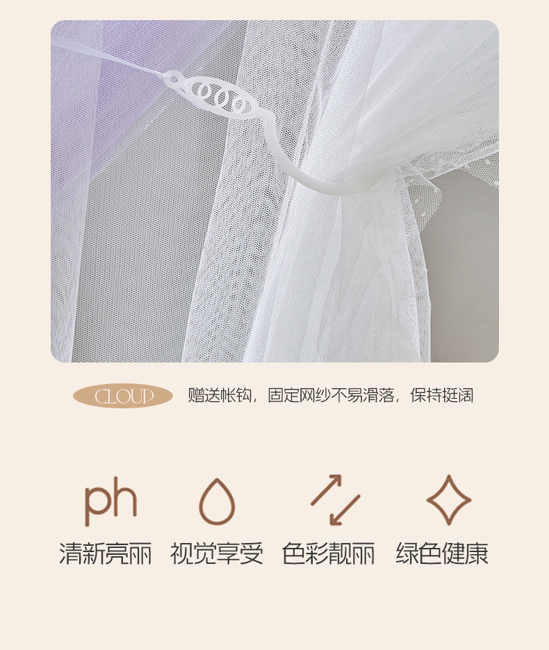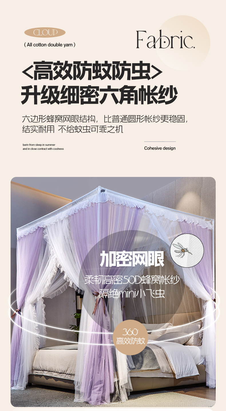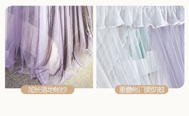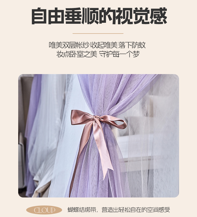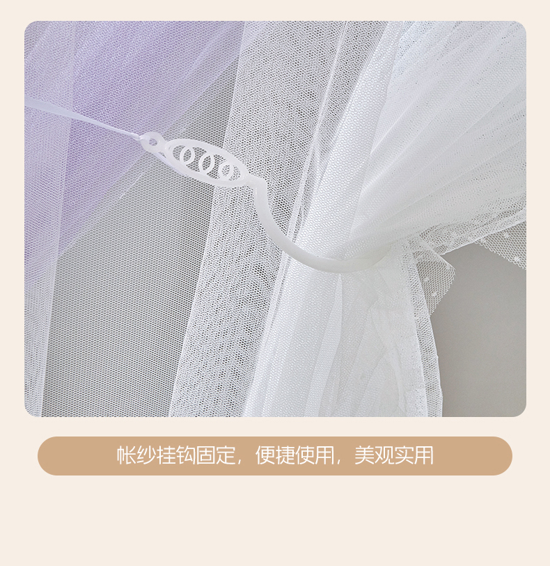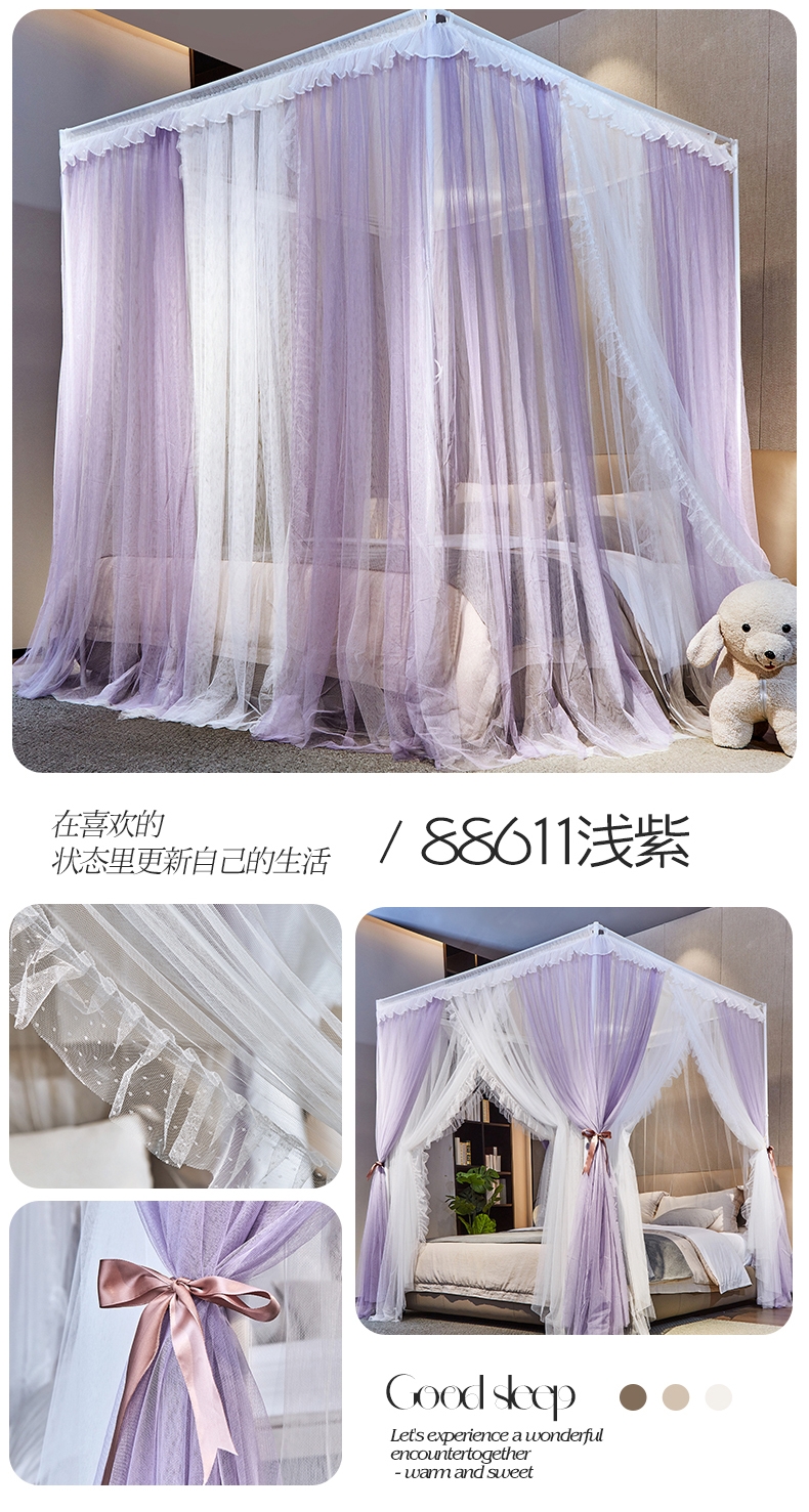 商品名称:夏彩 2025新款雪纺双层加柔加密外撑式25烤漆加粗宫廷蚊帐支架-88611 88611浅紫