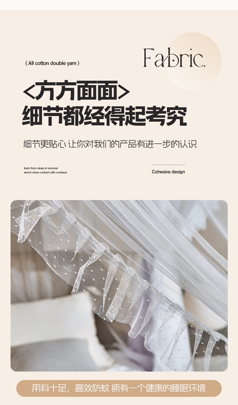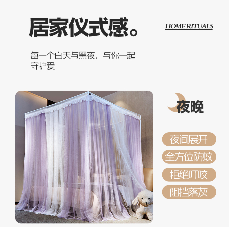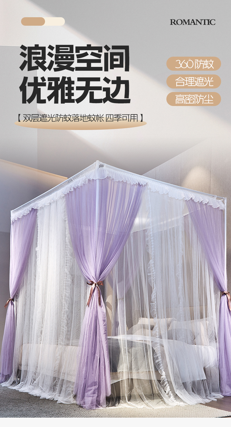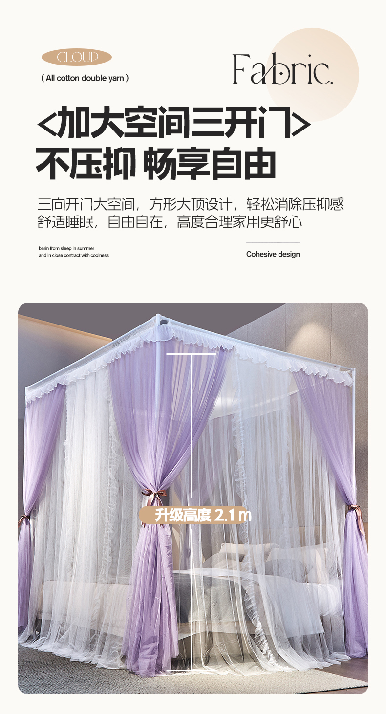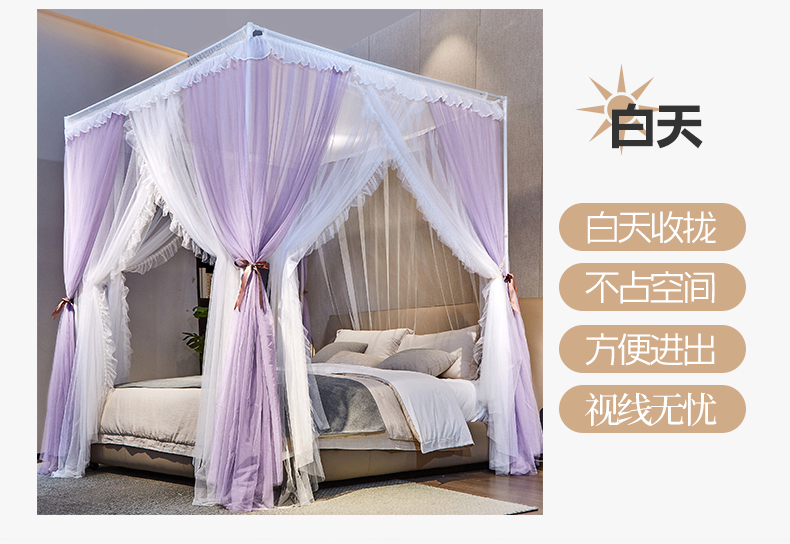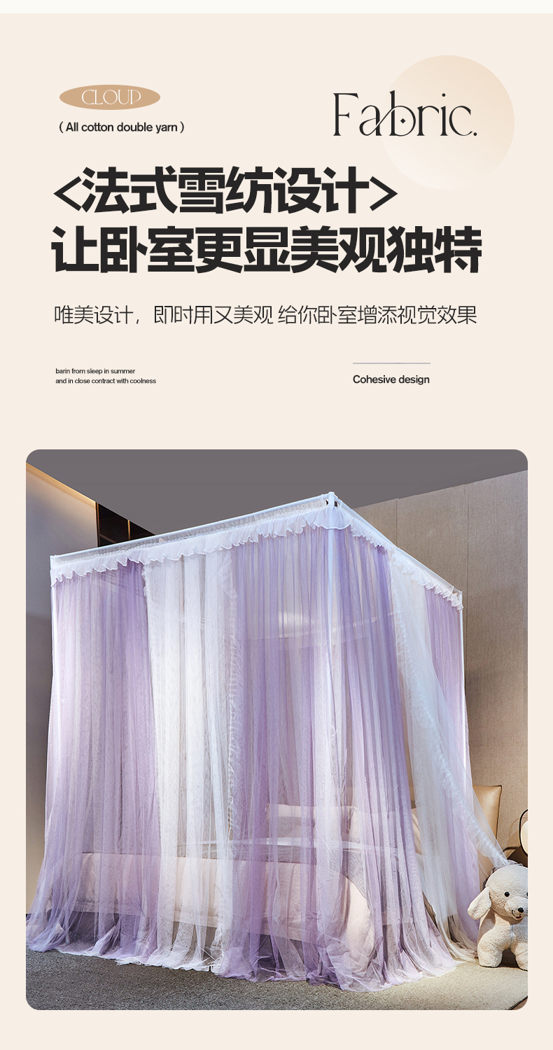 商品名称:夏彩 2025新款雪纺双层加柔加密外撑式25烤漆加粗宫廷蚊帐支架-88611 88611浅紫