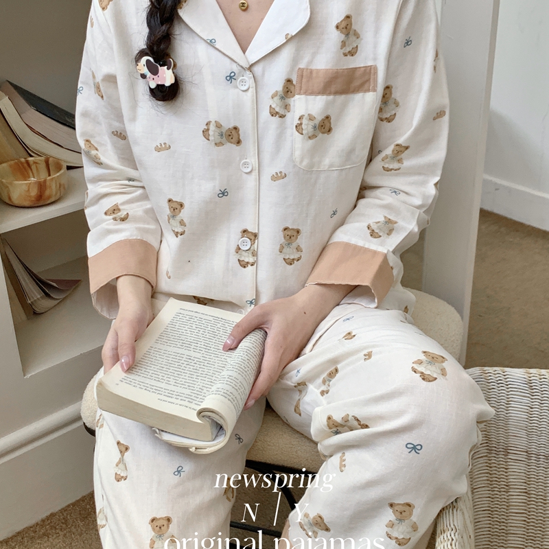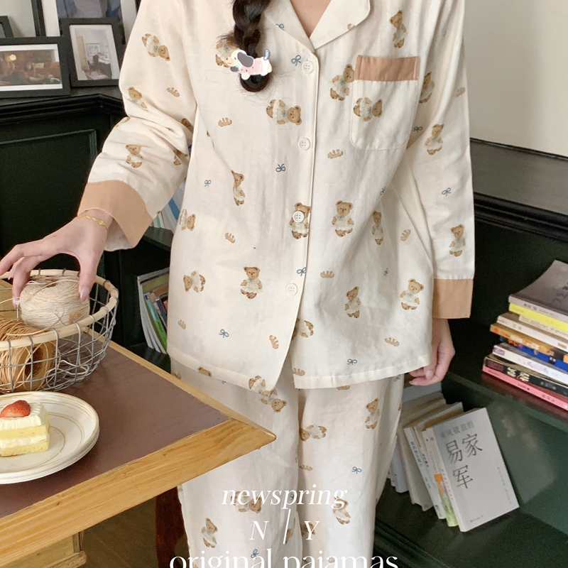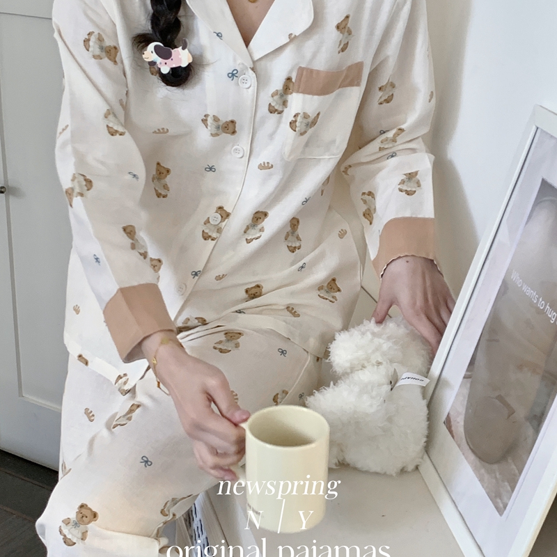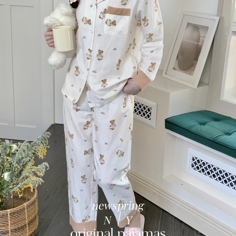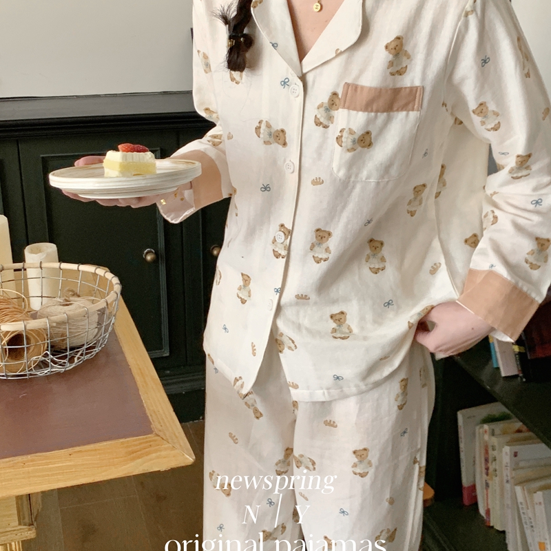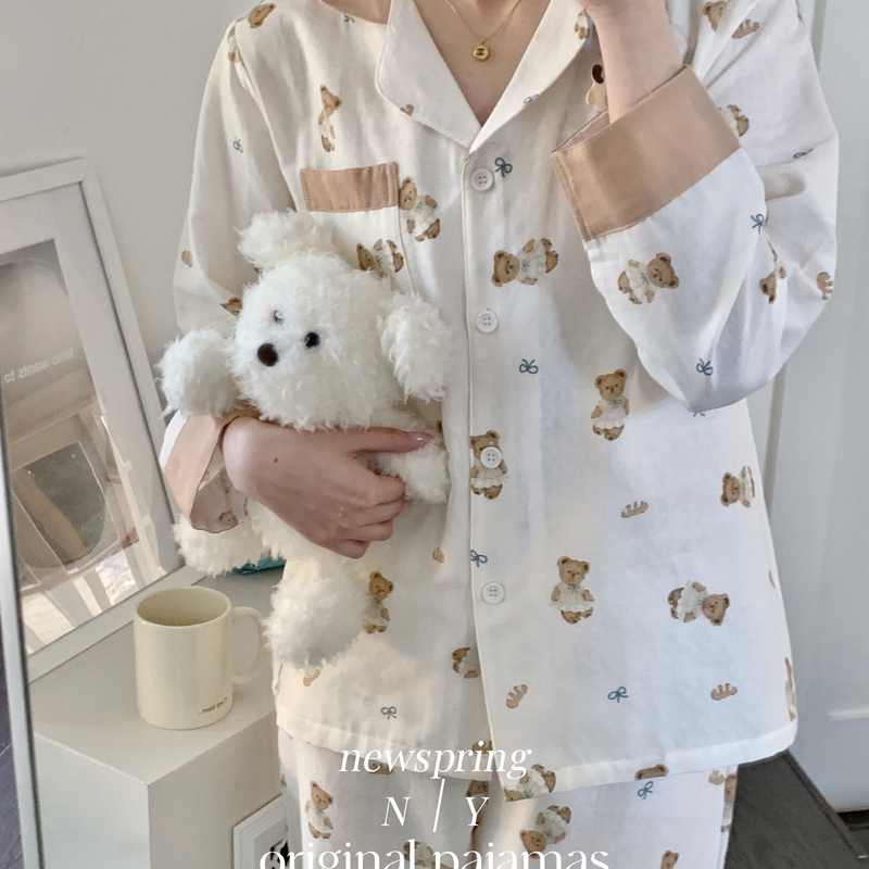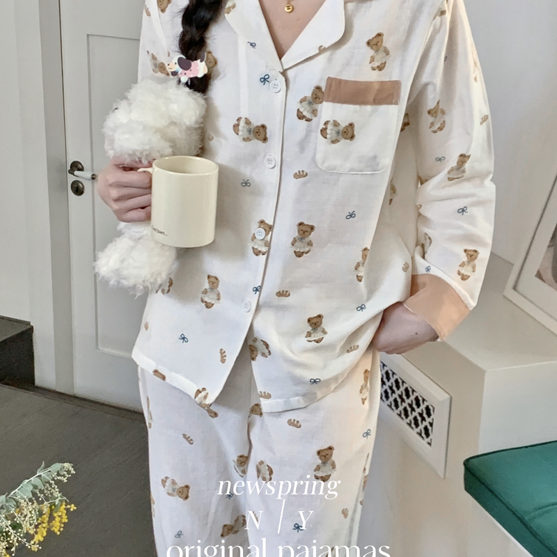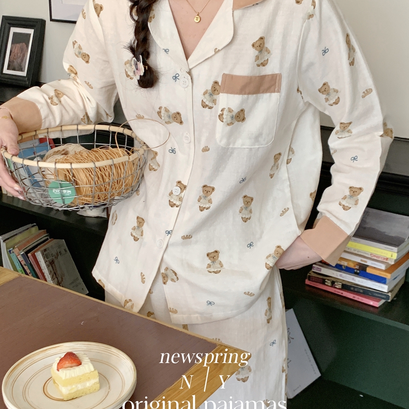 (总)纽约生活 2025新款绉布圆领开扣长袖长裤(会员-5),波比熊,黑碎花猫咪,蝴蝶结粉熊,花花狗,蓝碎花,塞纳花房