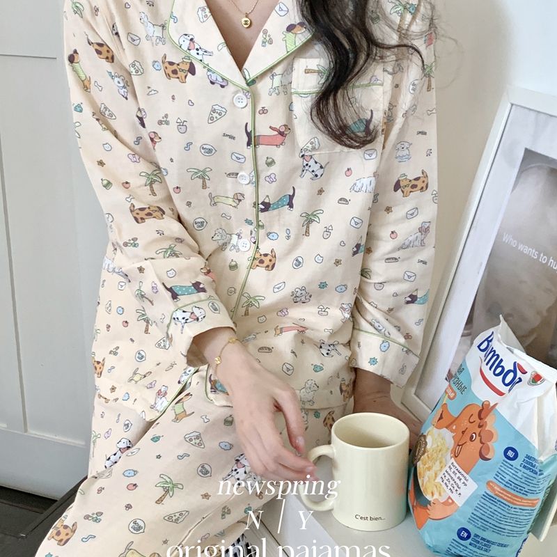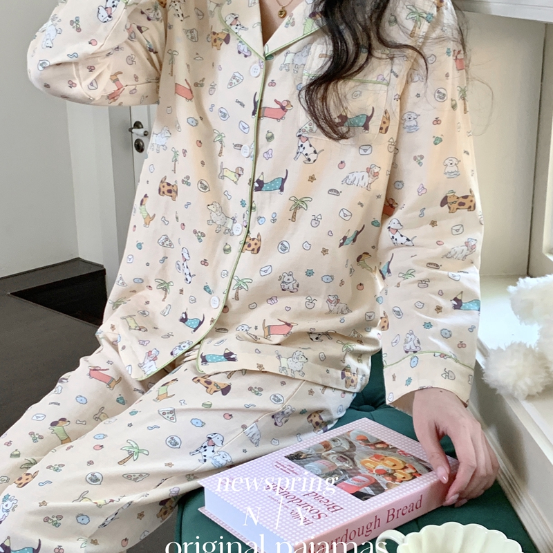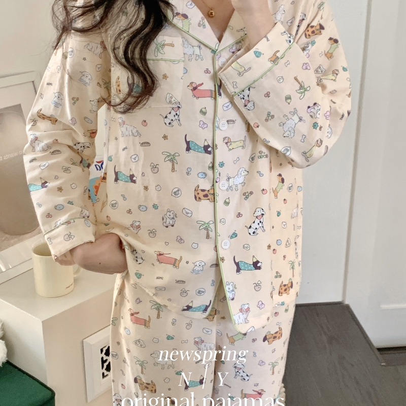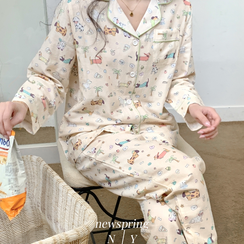 2025新款精梳有氧双层纱家居服 搞怪波点小狗