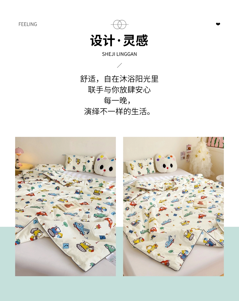 十九色 2025新款全棉13372ins儿童夏被 挖掘机