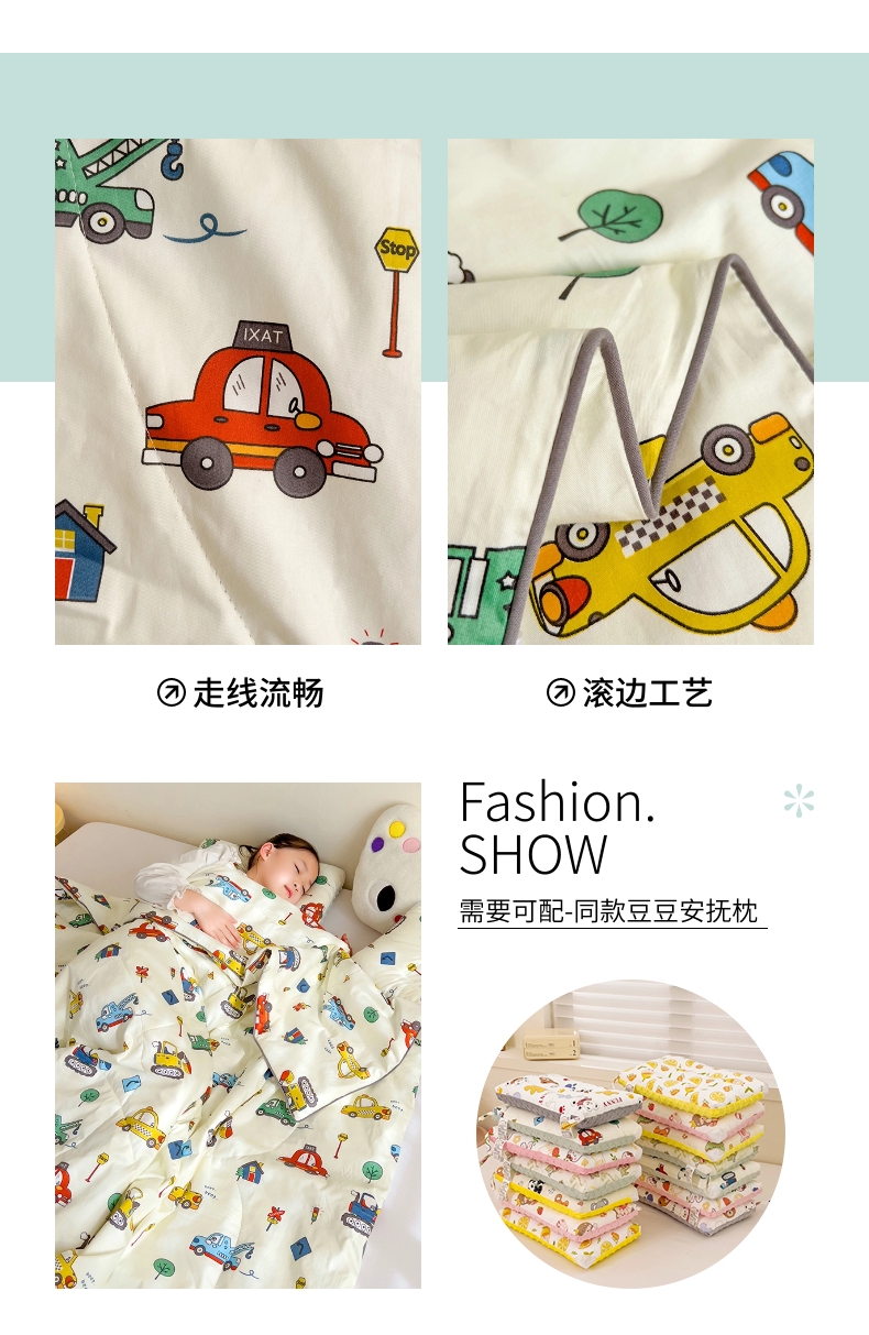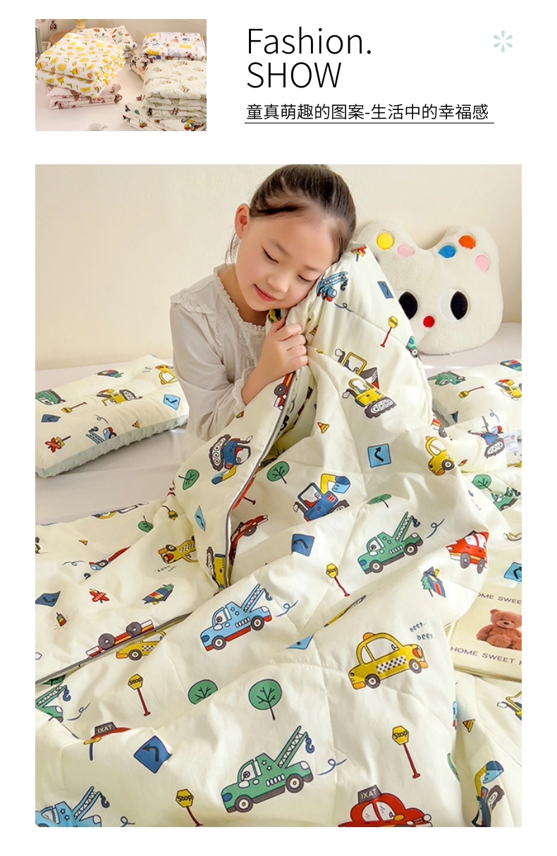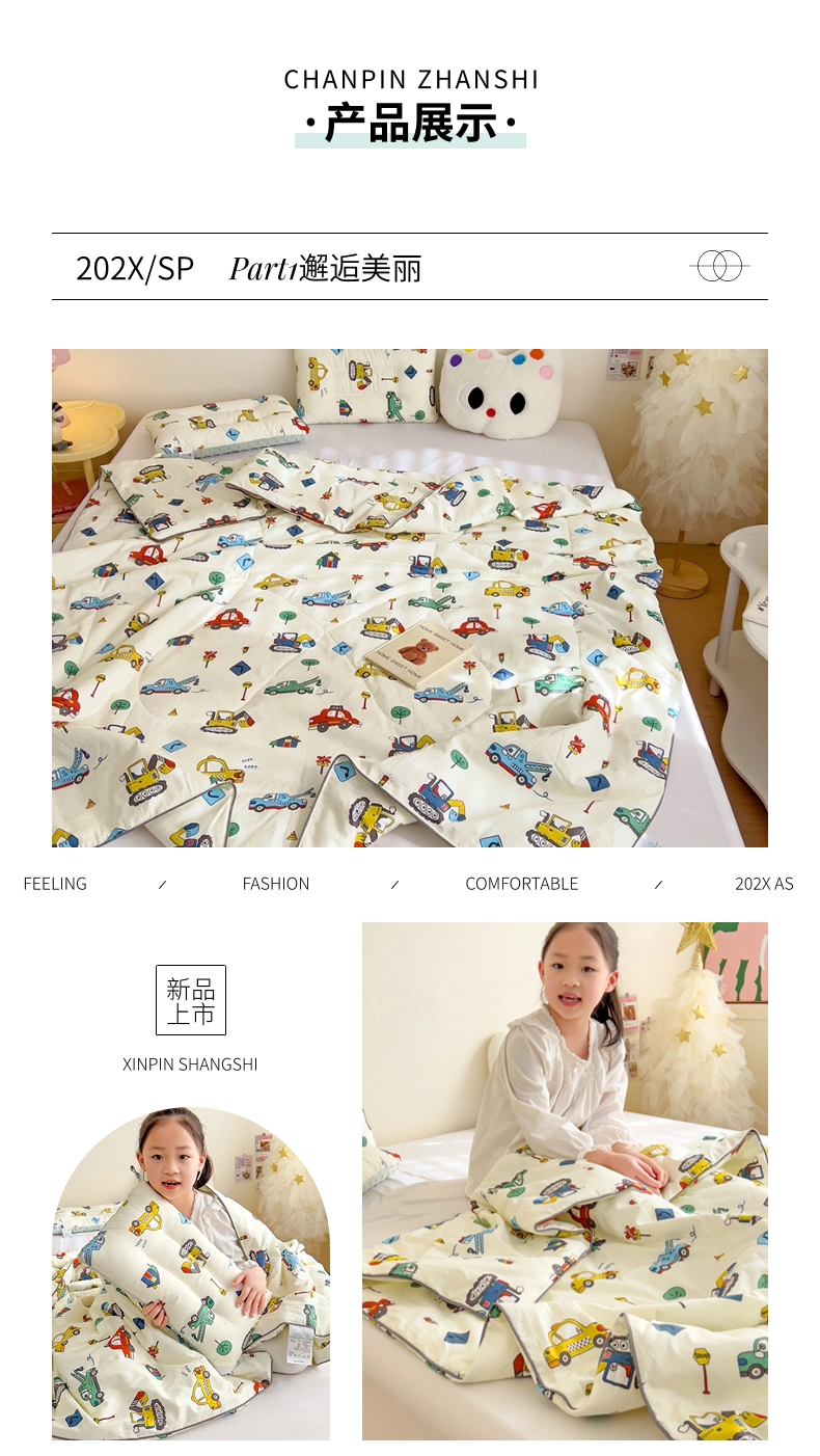 商品名称:十九色 2025新款全棉13372ins儿童夏被 挖掘机