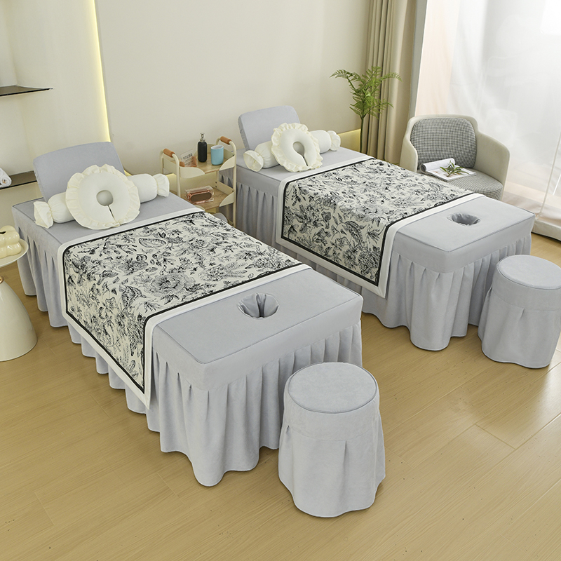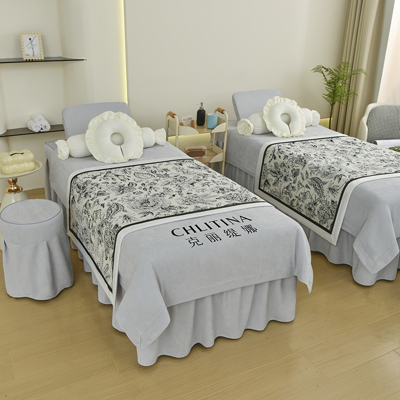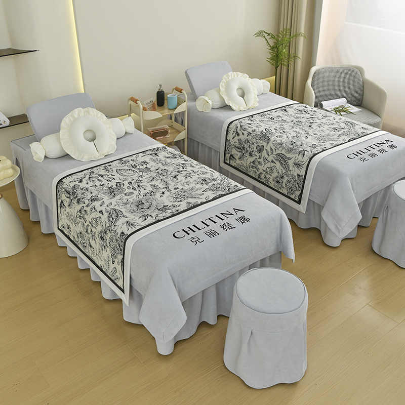 当前位置: 91家纺网 > 商品网购 > 床品套件 > 四件套 > 贡缎全棉四件套 > 不打烊家纺 2025新款贡棉美 容床罩印花款-花千城(支持logo定制) 花千城灰色