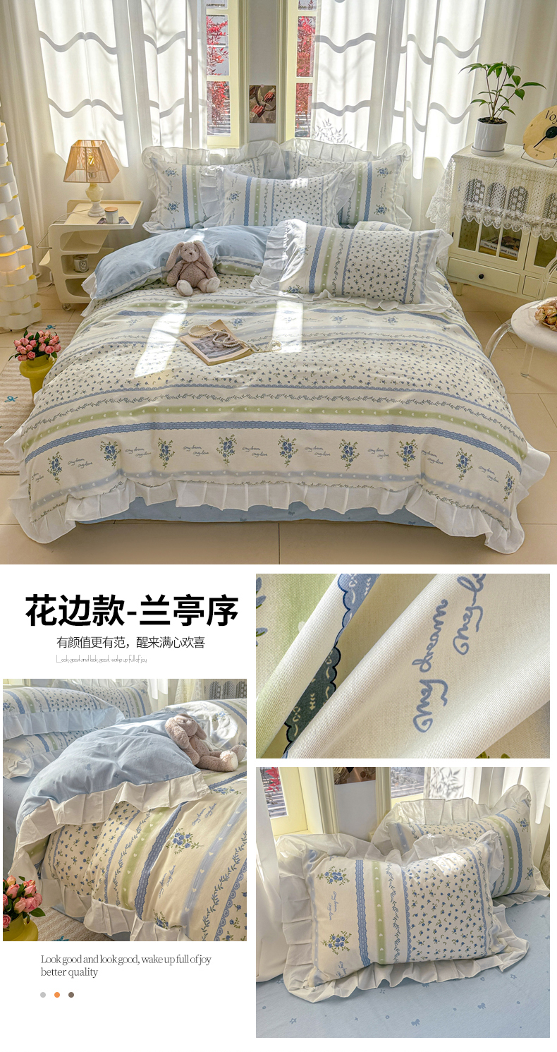 2025沐辰家居-新款全棉13070全棉花边款套件 花边款-兰亭序