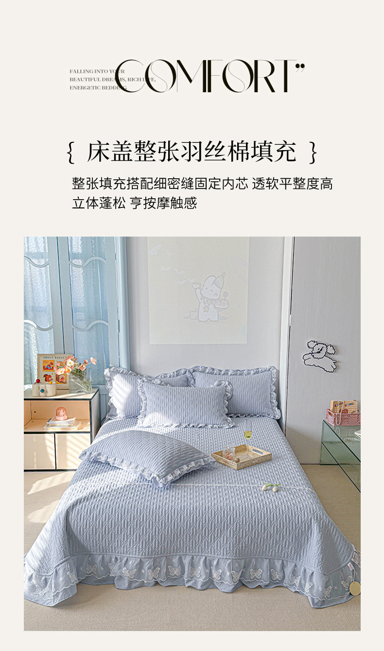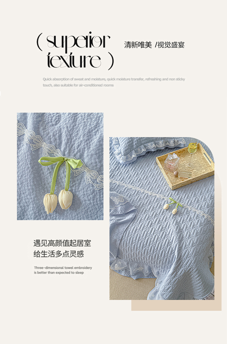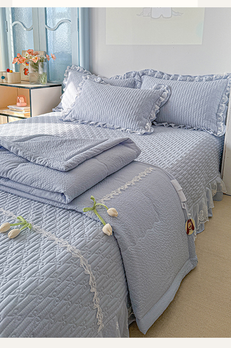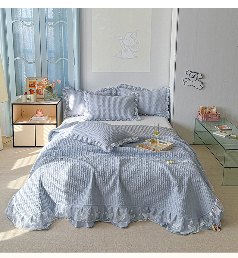 源舜家纺 2025新款郁金蝶香皱皱纱床盖夏被四件套 蓝色