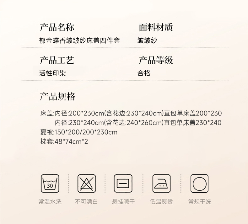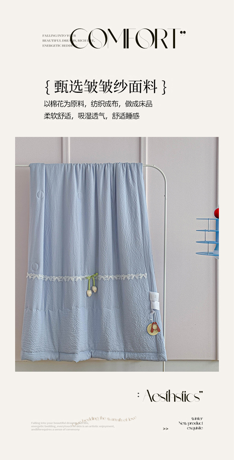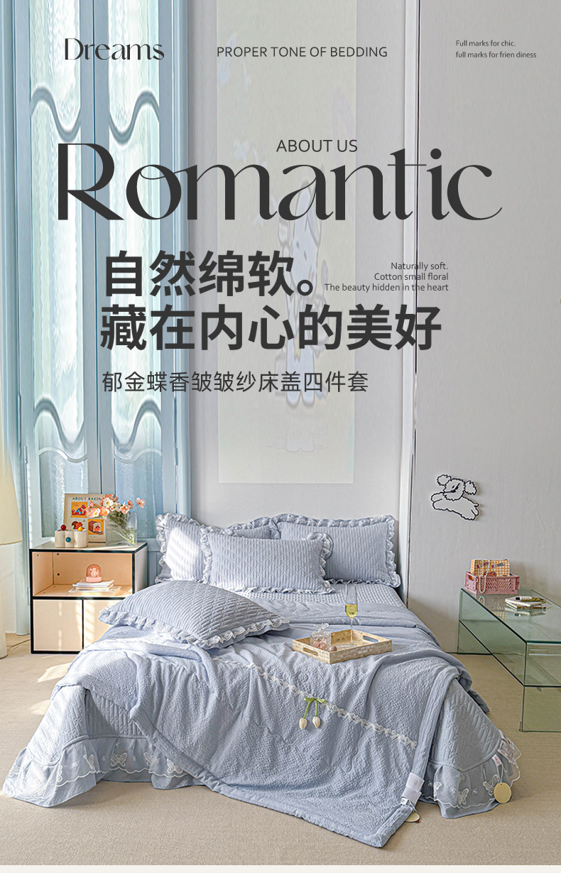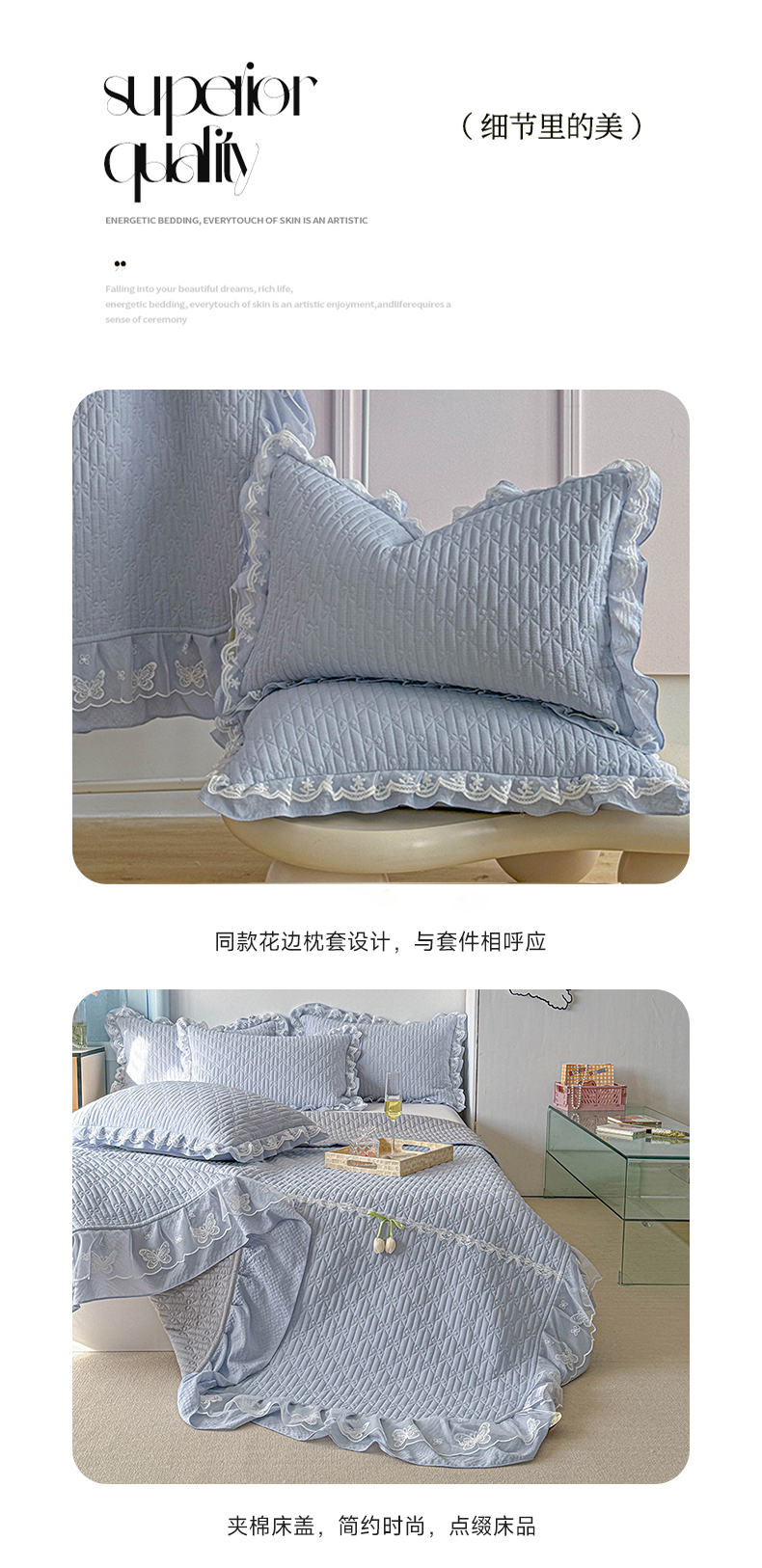 商品名称:源舜家纺 2025新款郁金蝶香皱皱纱床盖夏被四件套 蓝色