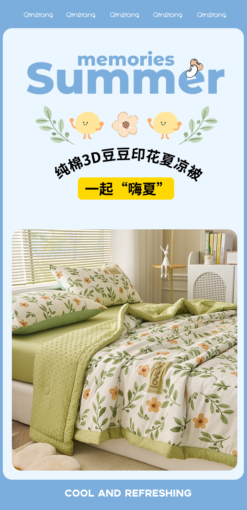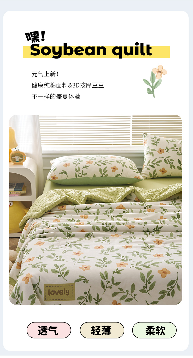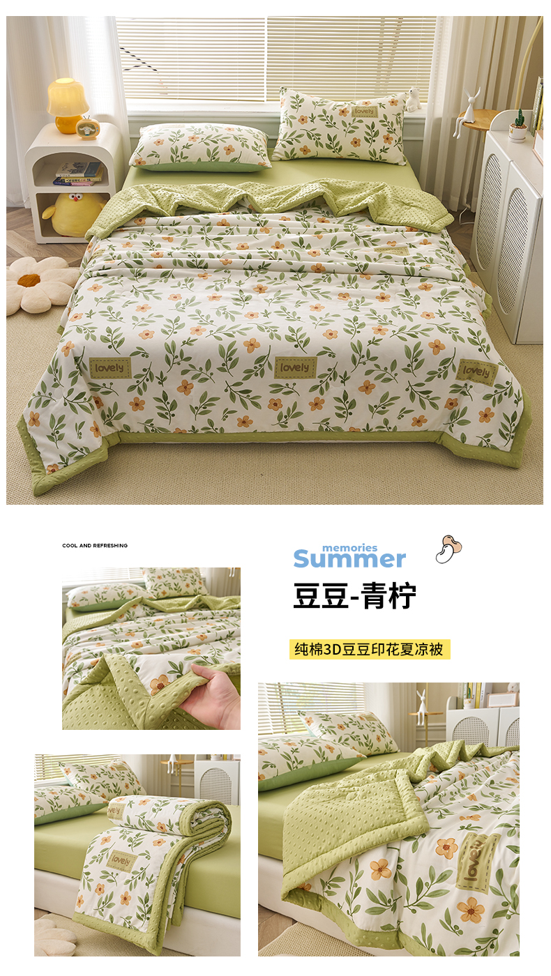 商品名称:暖阳 2025年新款纯棉豆豆夏被夏凉被被子被芯 豆豆-青柠