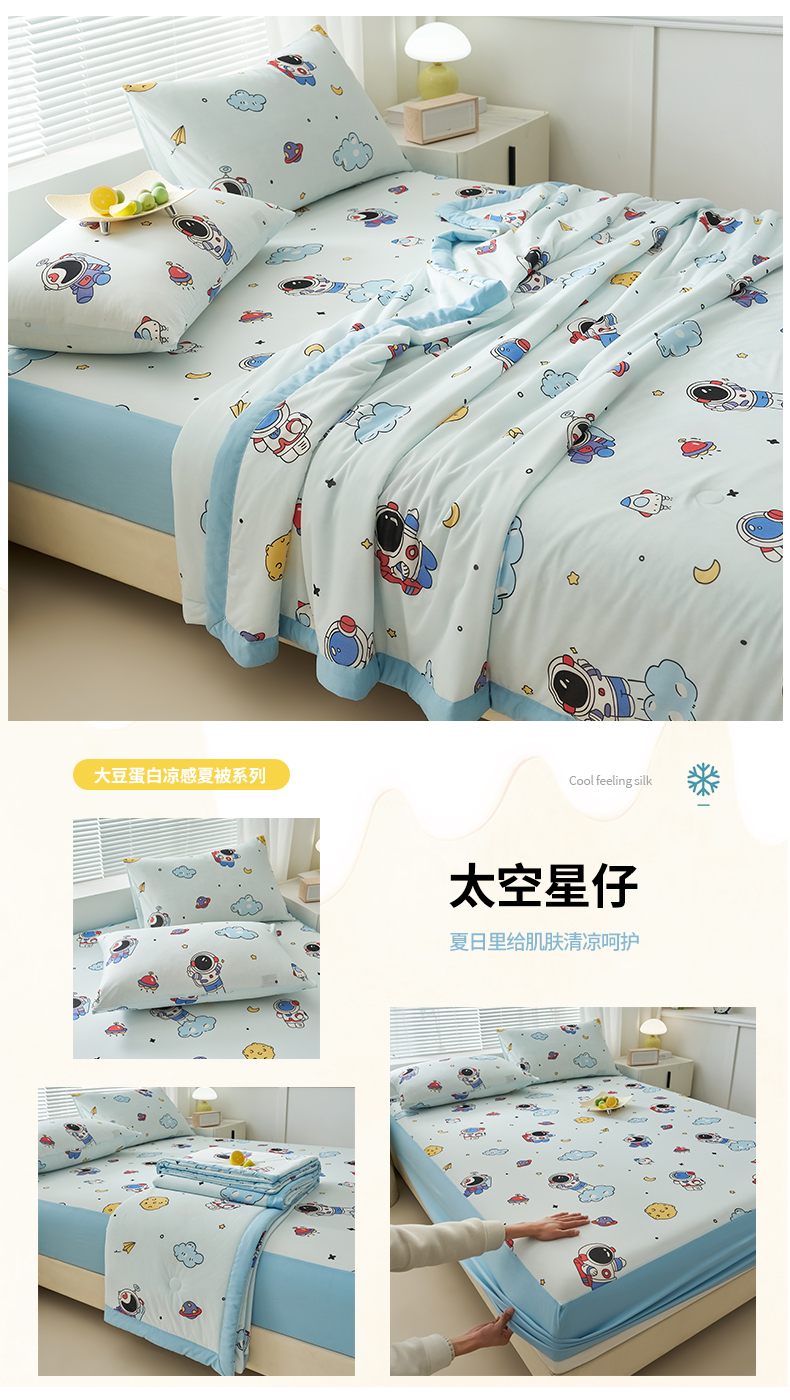 暖阳 2025年新款大豆凉感丝夏被四件套 太空星仔