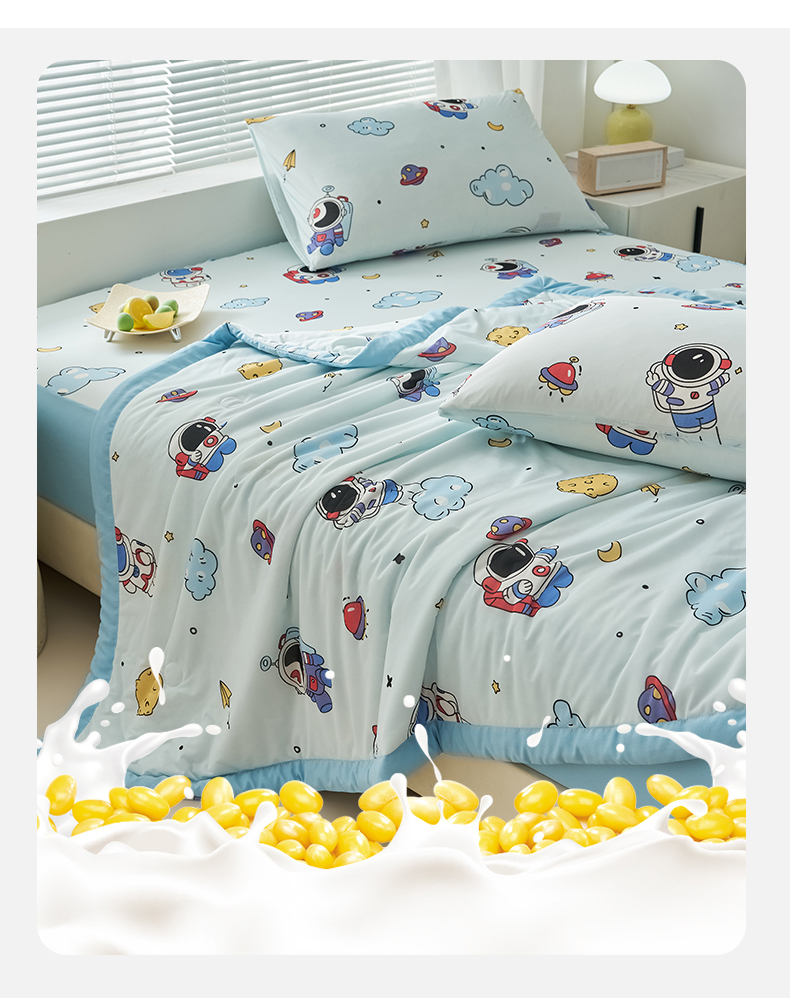 • 91家纺网 家纺一手货源 找家纺 暖阳 2025年新款大豆凉感丝夏被四件套 太空星仔