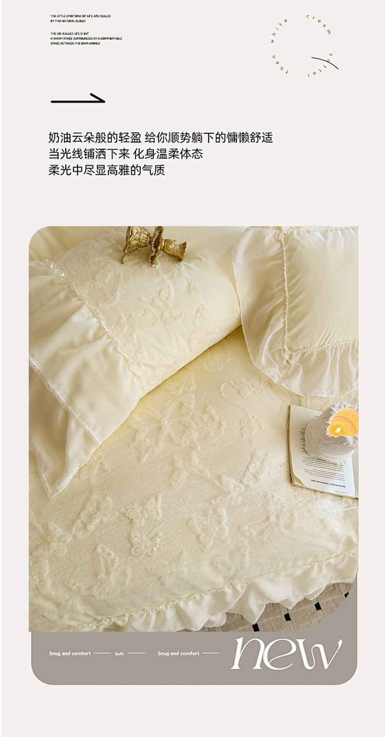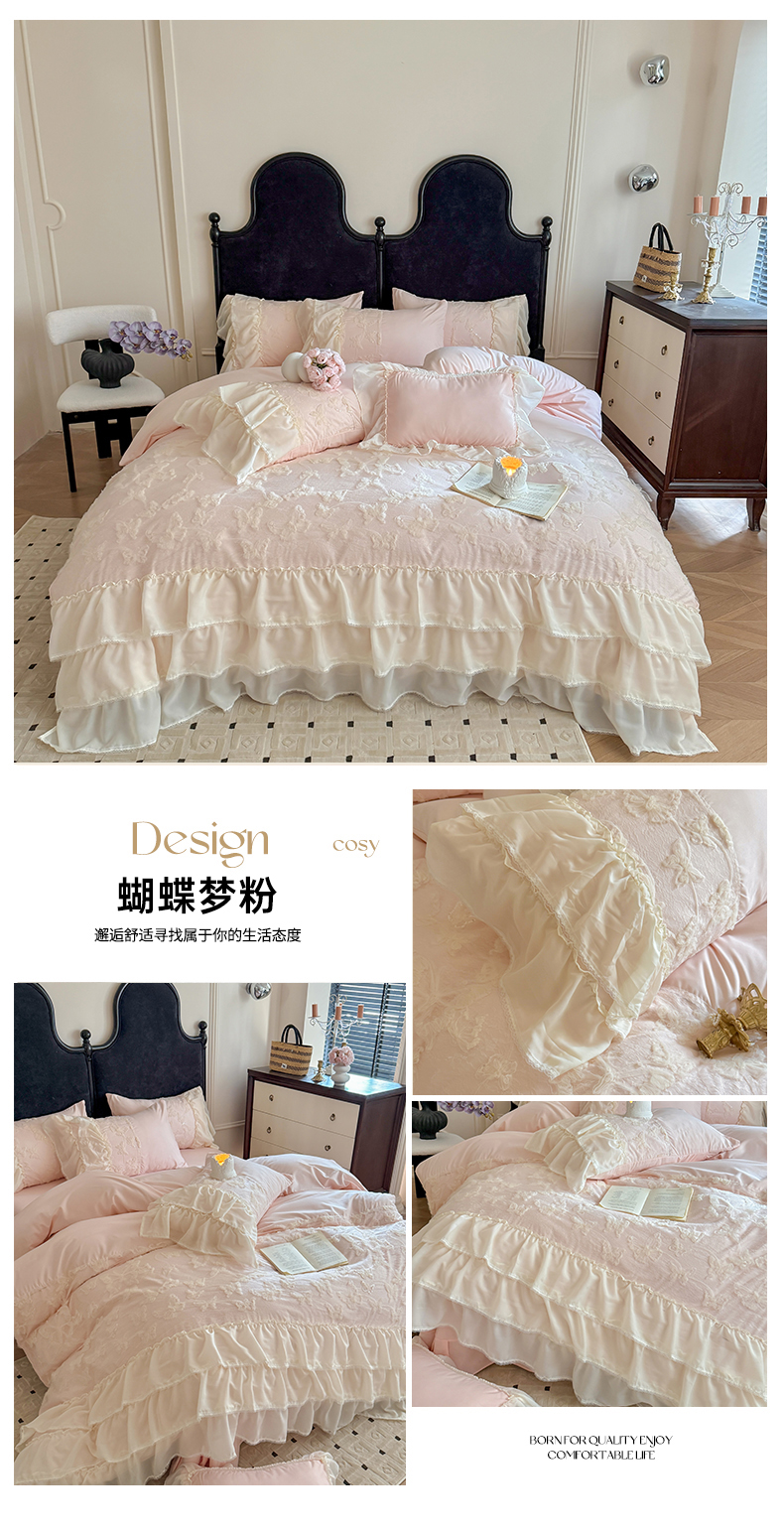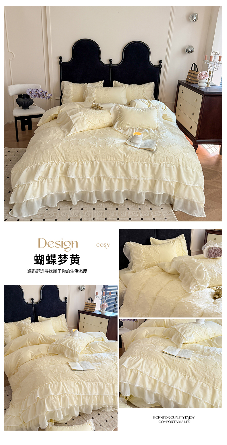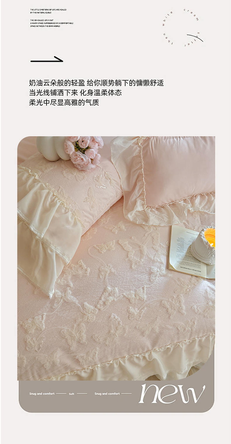 (总)吾欢心 2025新款糯小棉立体蝴蝶花边四件套-蝶恋花系列,蝶恋花白,蝶恋花粉,蝶恋花黄,蝶恋花咖,蝶恋花蓝,蝶恋花绿,蝶恋花紫
