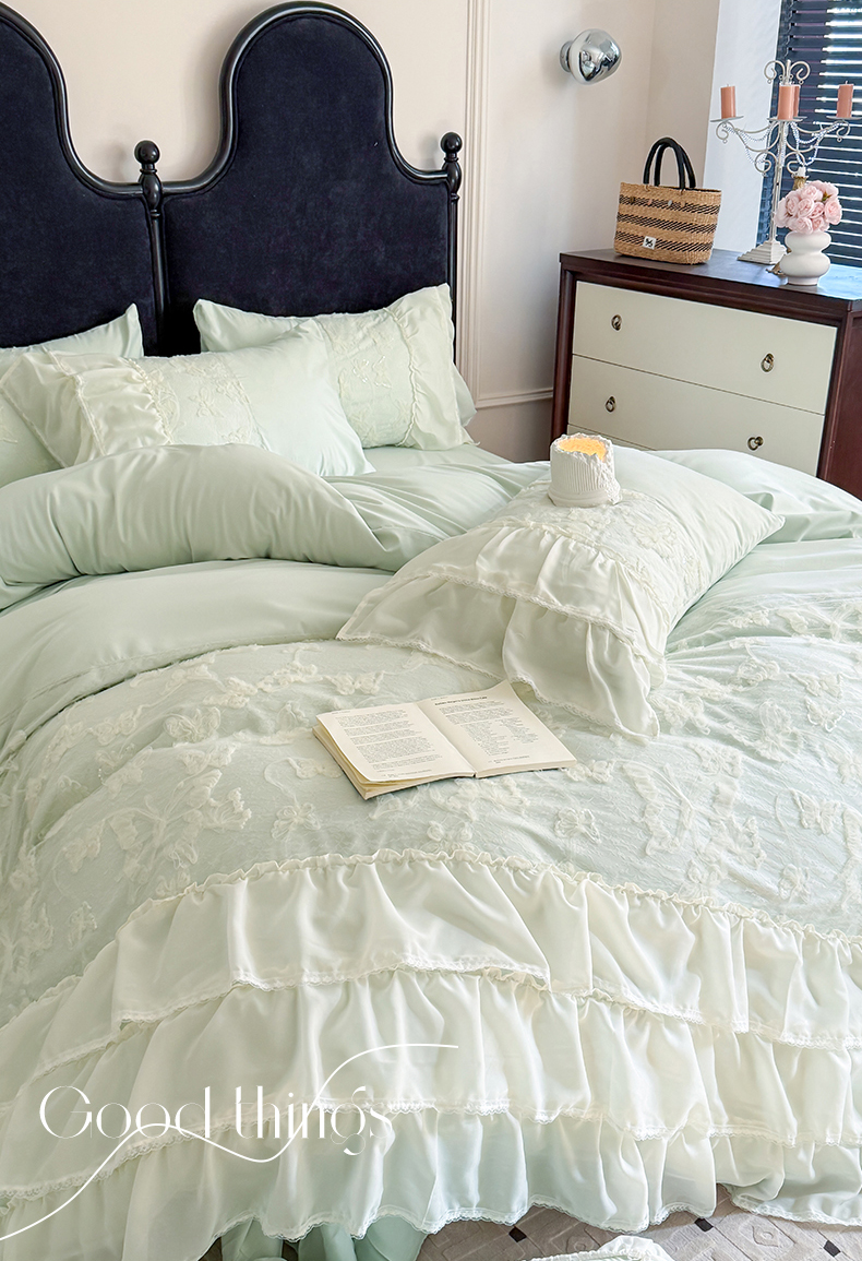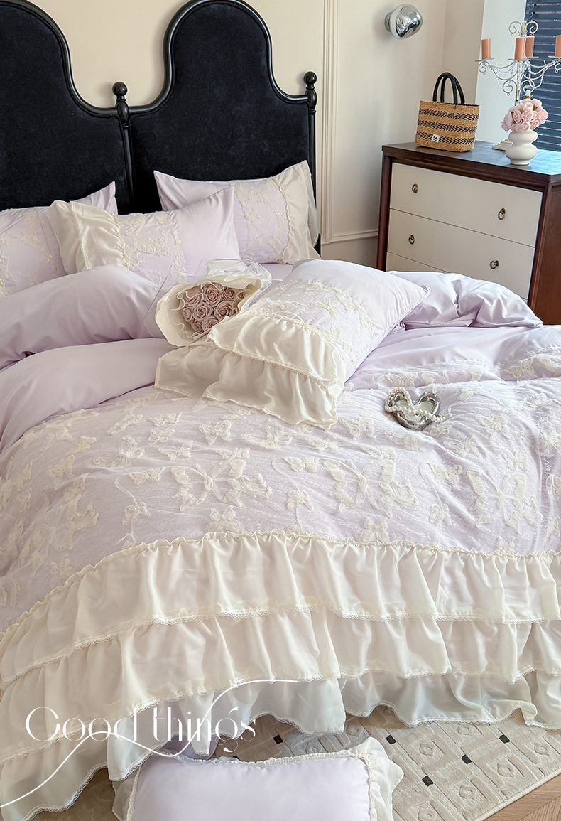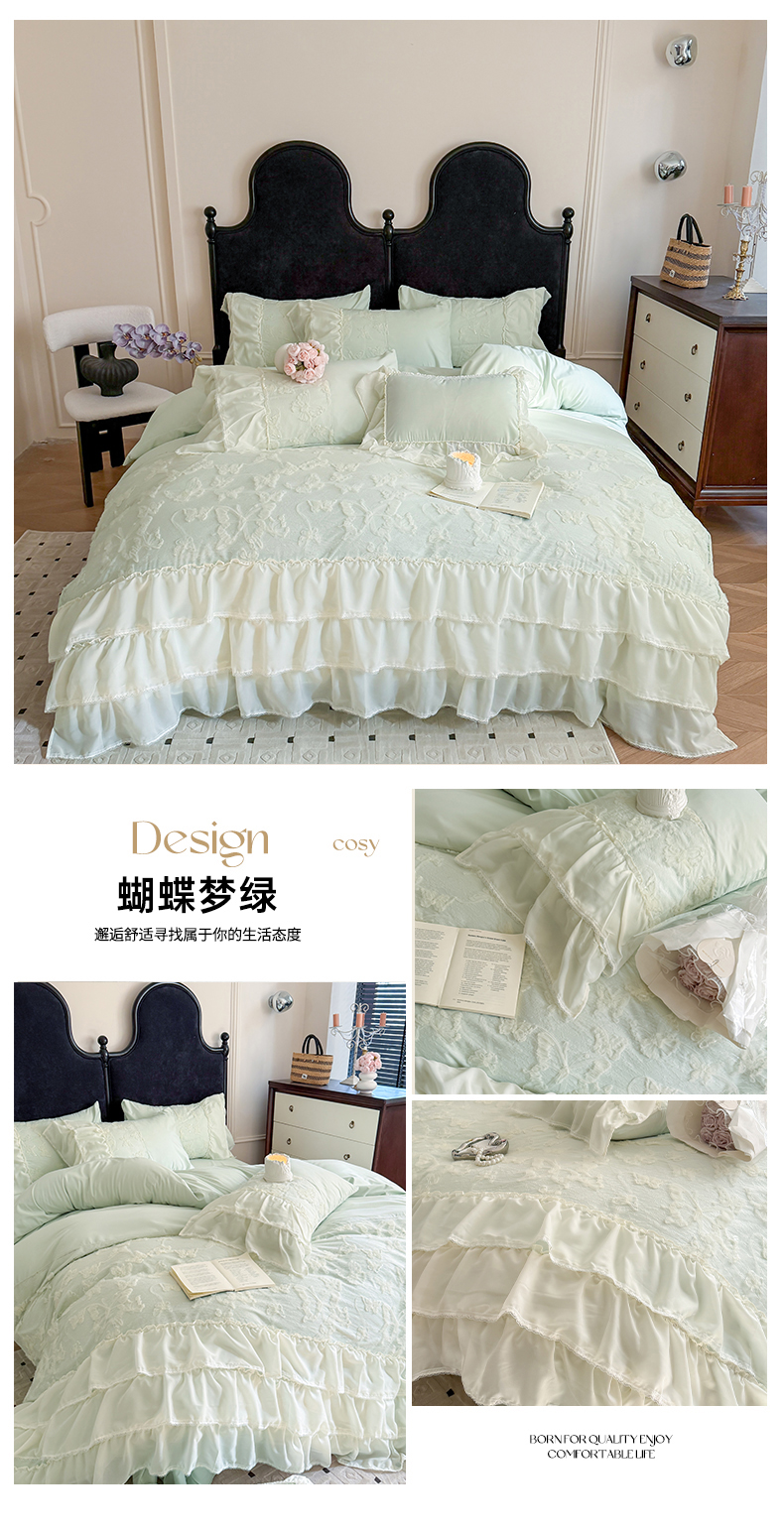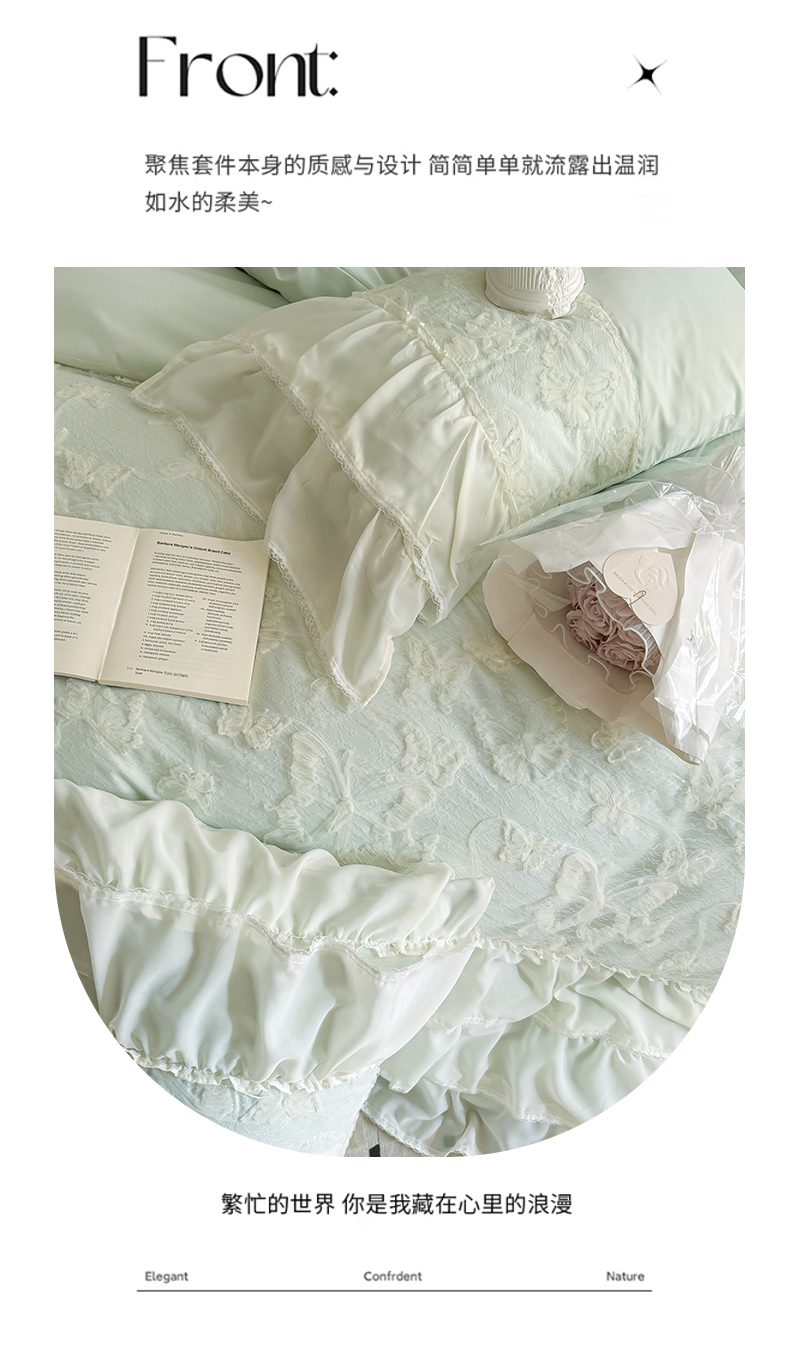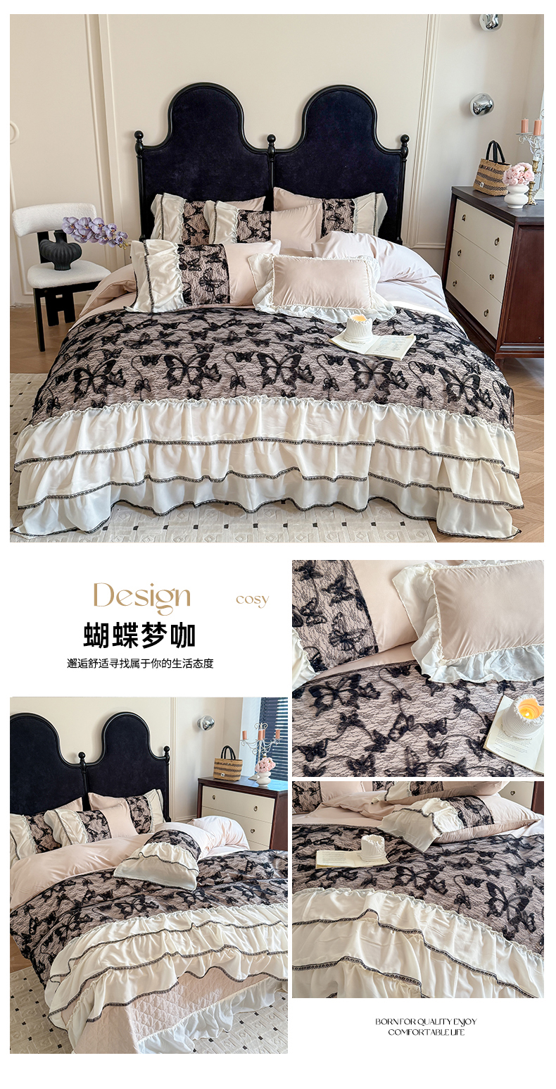 (总)吾欢心 2025新款糯小棉立体蝴蝶花边四件套-蝶恋花系列,蝶恋花白,蝶恋花粉,蝶恋花黄,蝶恋花咖,蝶恋花蓝,蝶恋花绿,蝶恋花紫